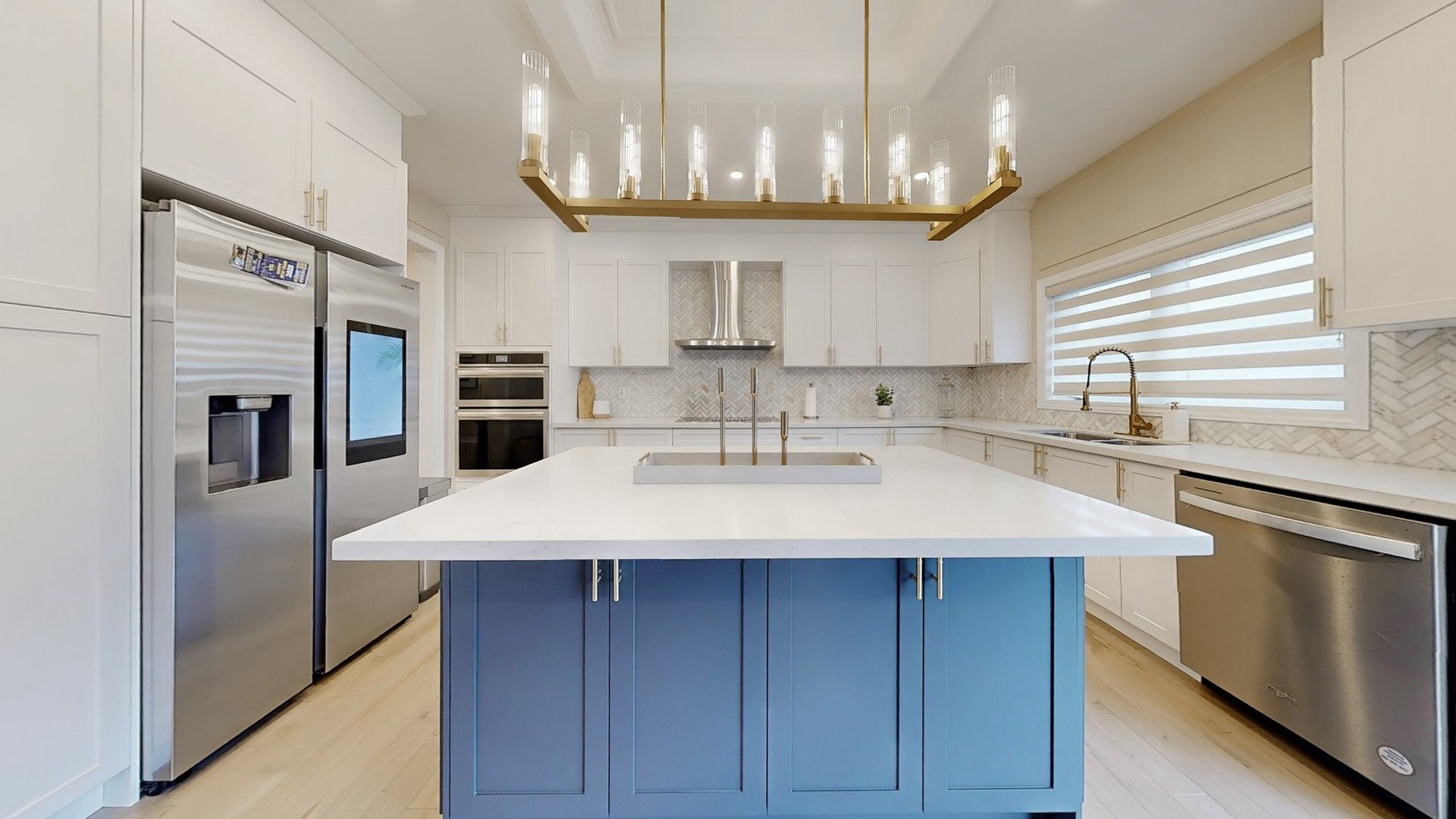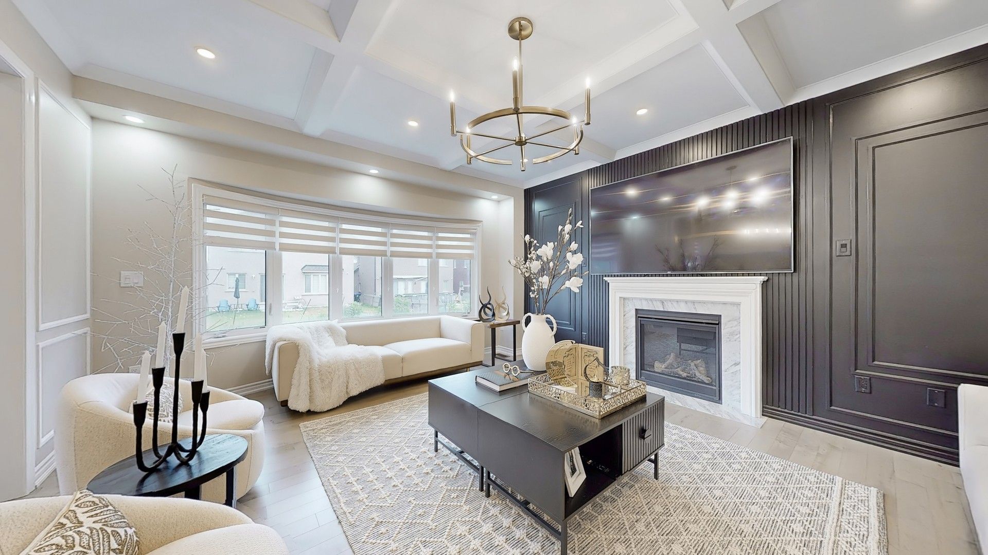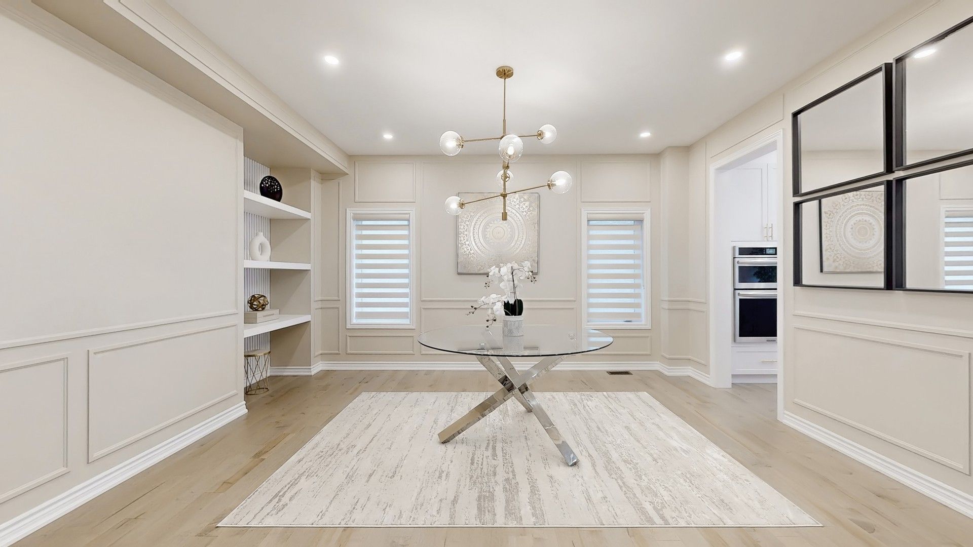 • Large windows flooding the home with natural light and highlighting finishes.