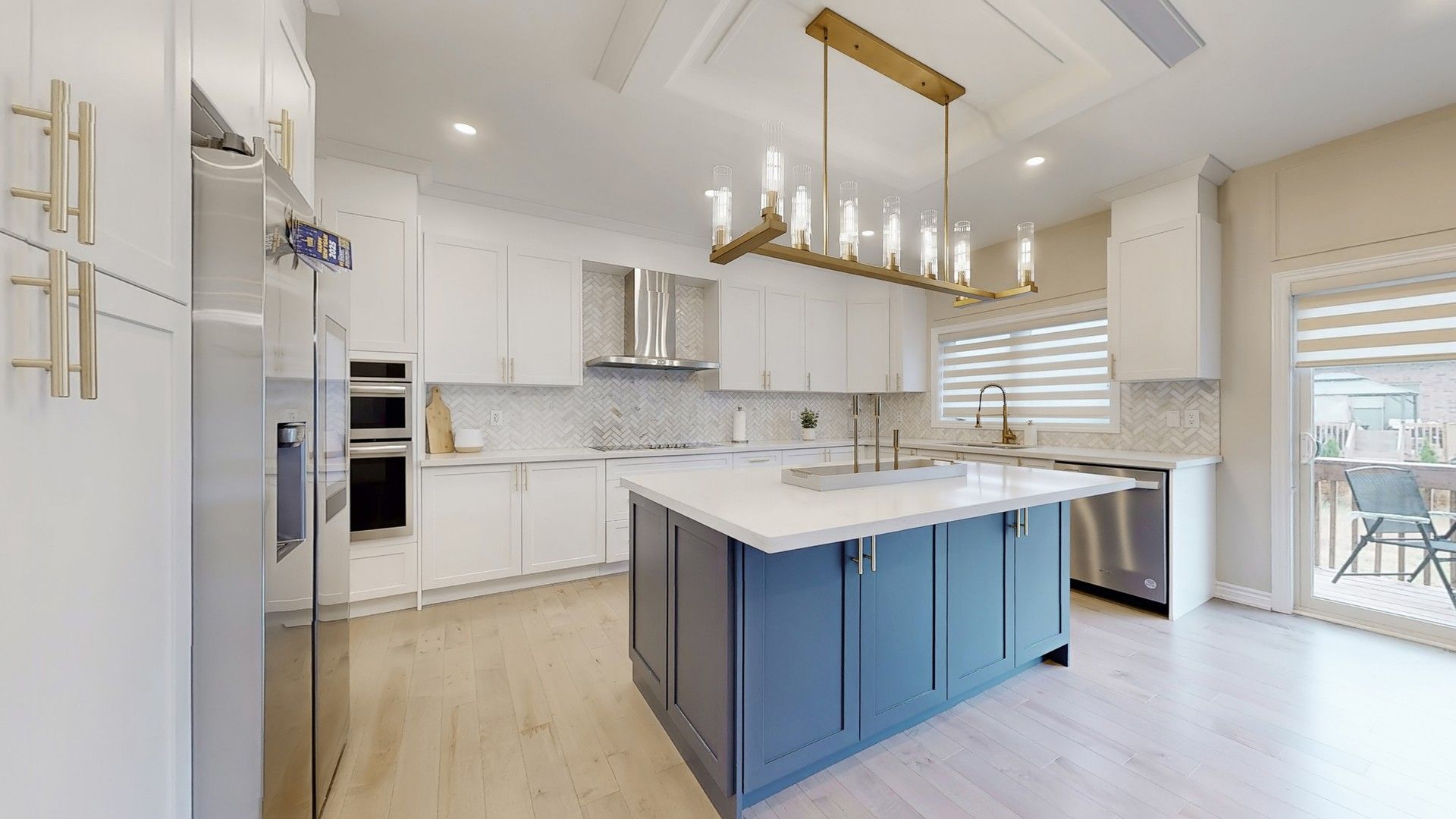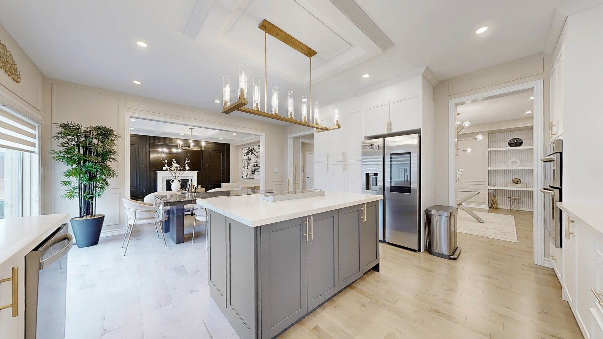 • Gourmet chef's kitchen featuring stainless steel appliances and upgraded lighting.