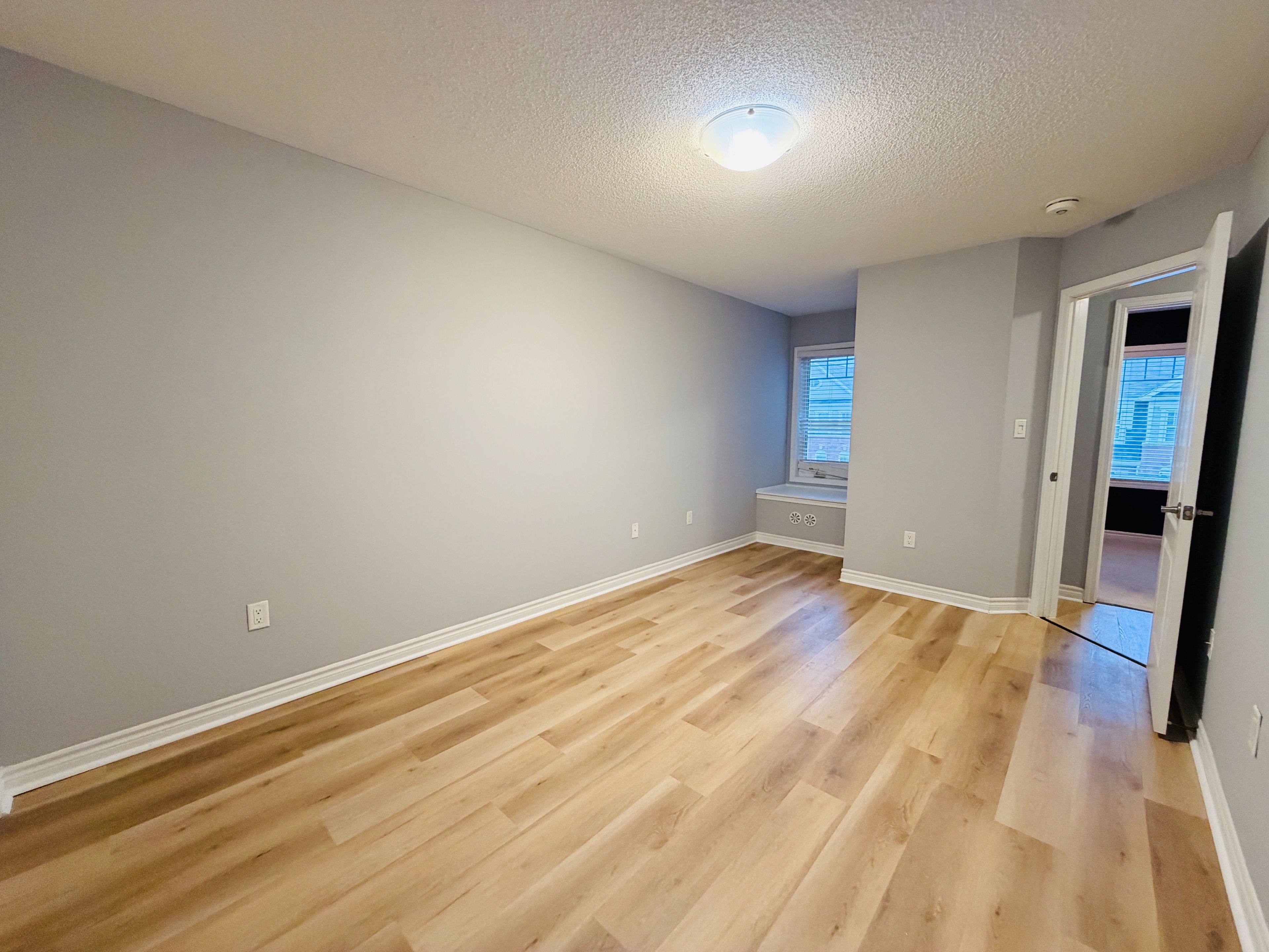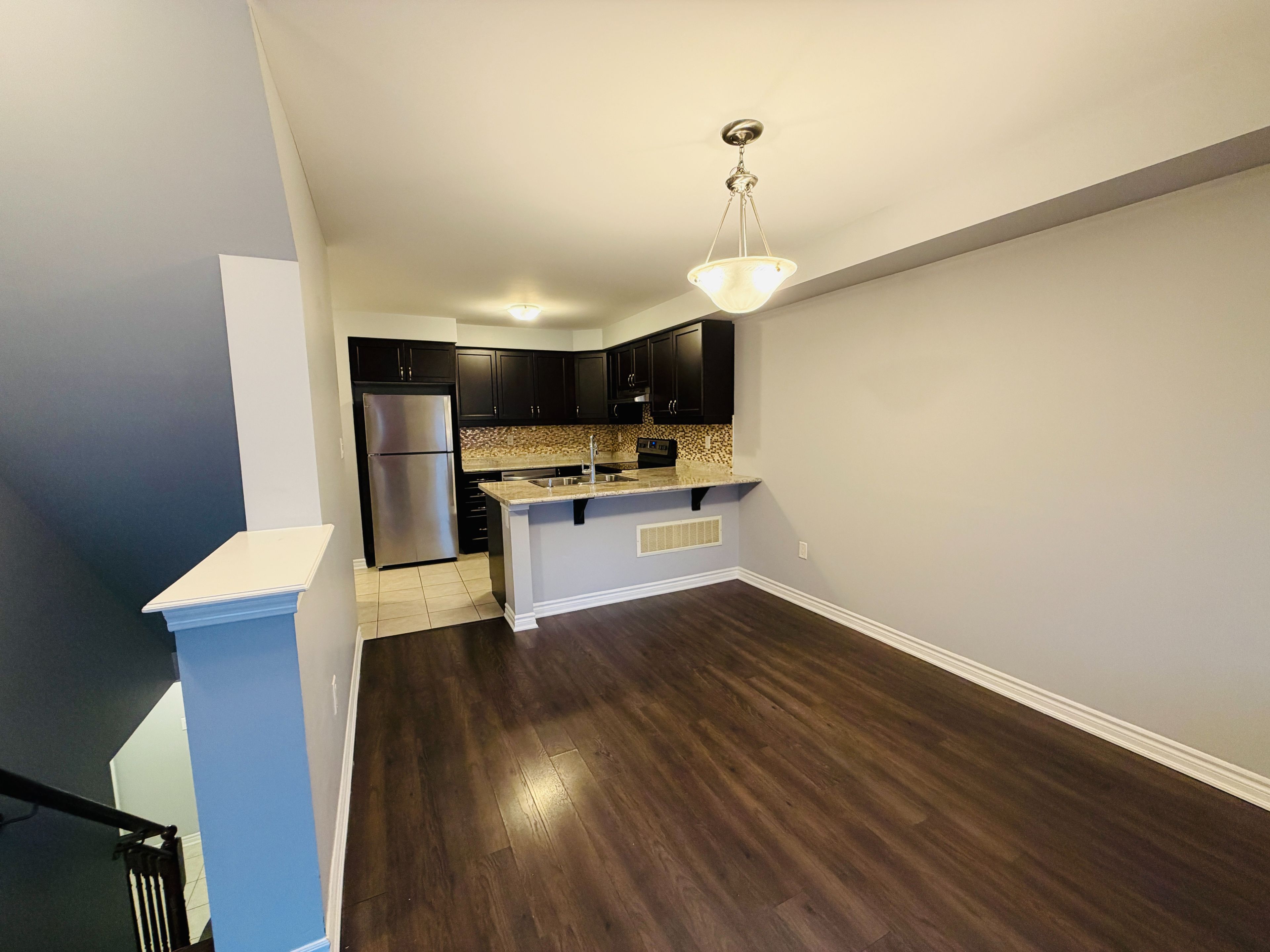 Beautiful 3-storey townhouse in a desirable milton neighborhood! Freshly painted and move-in ready, this bright and spacious home features 3 bedrooms + a den and 2. 5 washrooms. Enjoy an open-concept second floor layout that seamlessly connects the living and dining areas. The modern kitchen is equipped with stainless steel appliances and overlooks the main dining space-perfect for entertaining. Bright and inviting balcony offering the perfect outdoor retreat. Large windows brings in plenty of natural light, creating a warm and inviting atmosphere throughout the home. Located on a no-sidewalk lot, offering extra driveway for small car parking and added convenience.