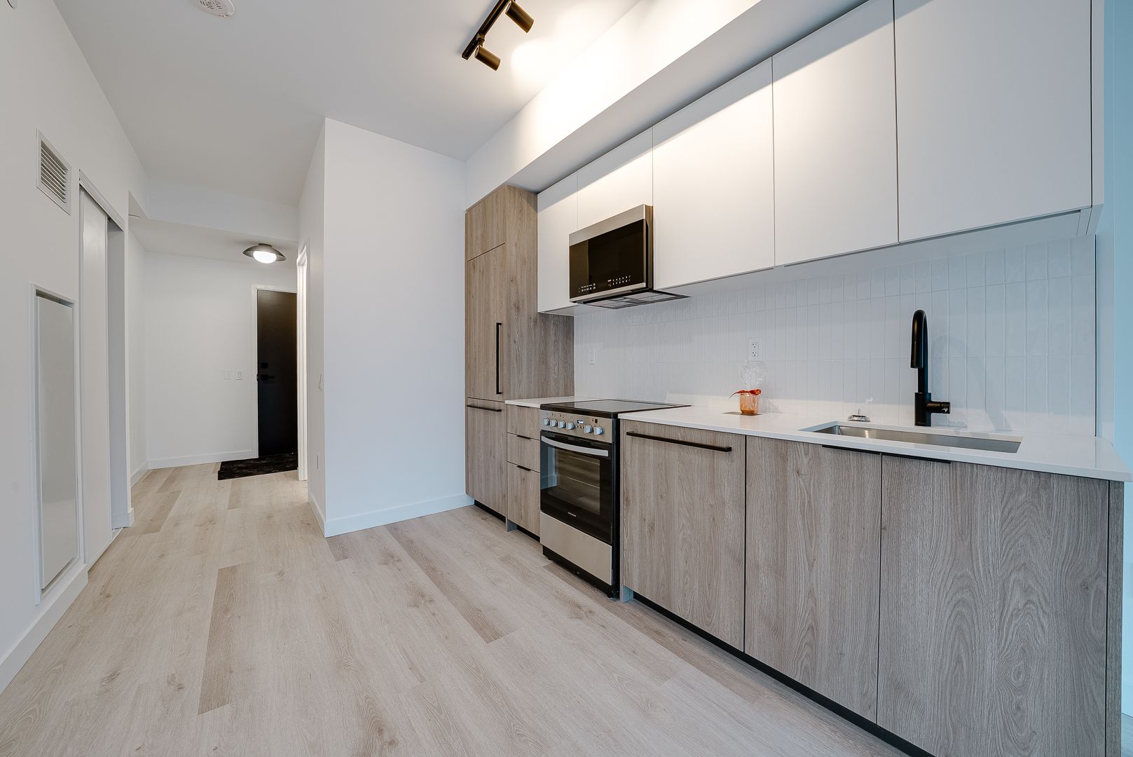 • Open concept layout with a bright living area and kitchen.