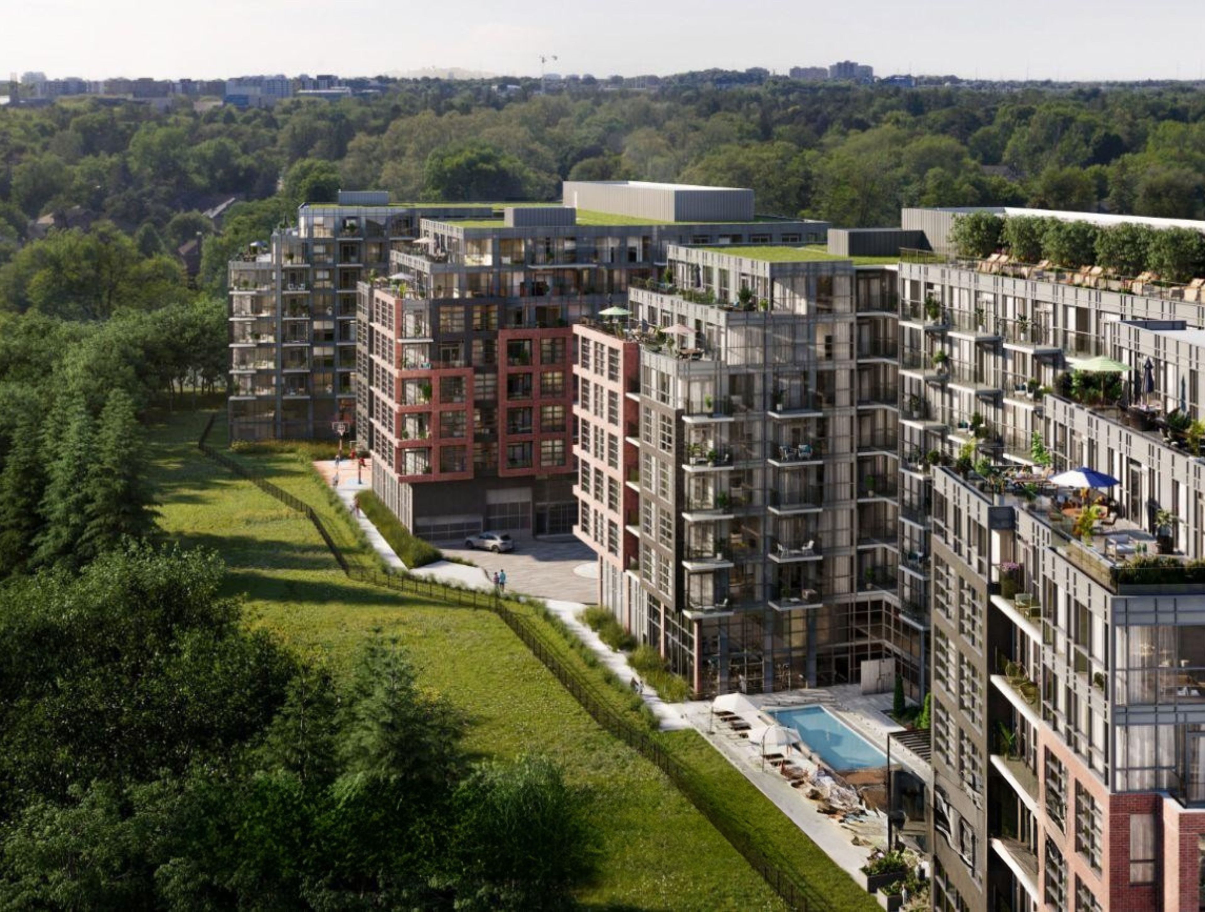 • Residents can enjoy a pool, fitness centre, and co-working spaces.