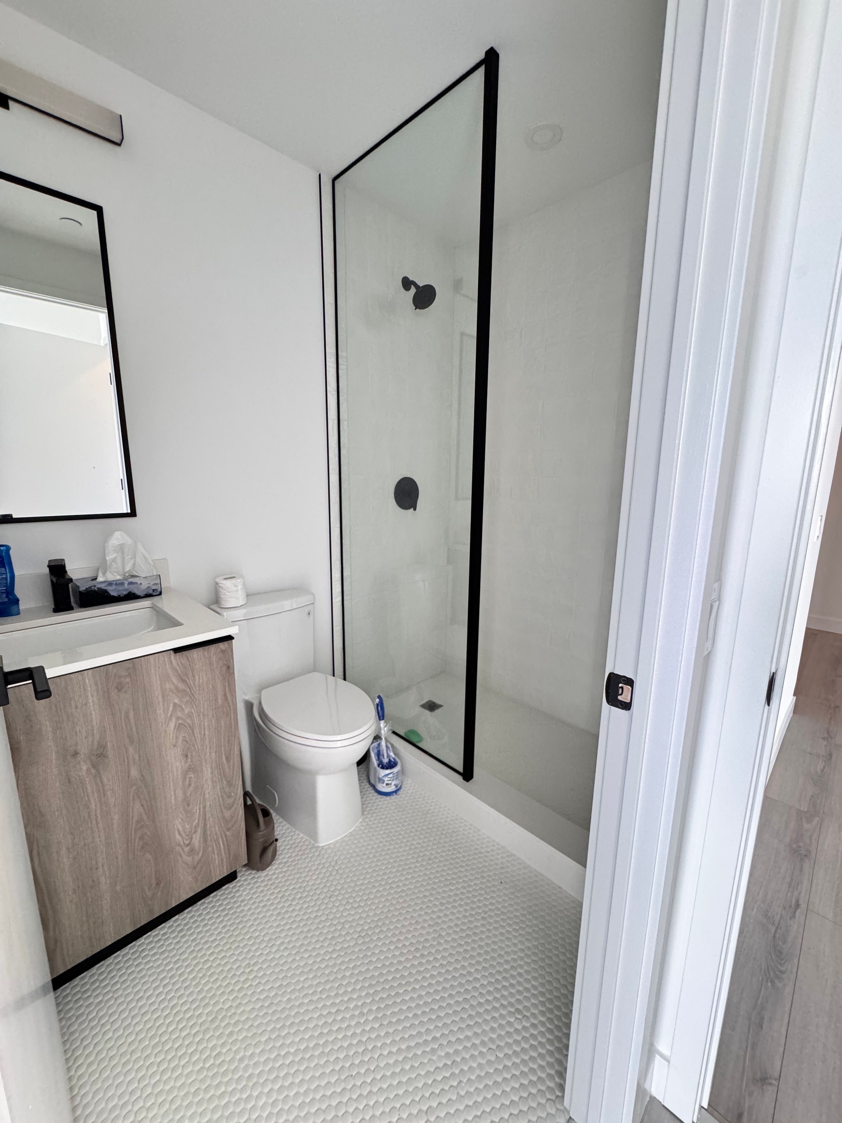 Now available for lease at highland commons, 1635 military trail, this spacious and thoughtfully designed 3 bedroom suite offers an exceptional layout ideal for families or shared living. The expansive open concept living, dining, and kitchen area creates a bright central gathering space, seamlessly connected to a private balcony for outdoor enjoyment. The primary bedroom is tucked away for added privacy and features its own ensuite bath, while the second and third bedrooms are well sized and positioned near a full main bathroom. A dedicated media station provides the perfect work from home setup or study area, adding valuable flexibility to the layout. Contemporary finishes and large windows throughout enhance both comfort and functionality. Residents enjoy access to premium amenities including an outdoor pool, fitness centre, co working space, squash court, games room, party room, guest suites, and more. Steps to u of t scarborough, close to centennial college, scenic walking trails, transit, shopping, and highway 401, this is an outstanding leasing opportunity in a highly connected community.