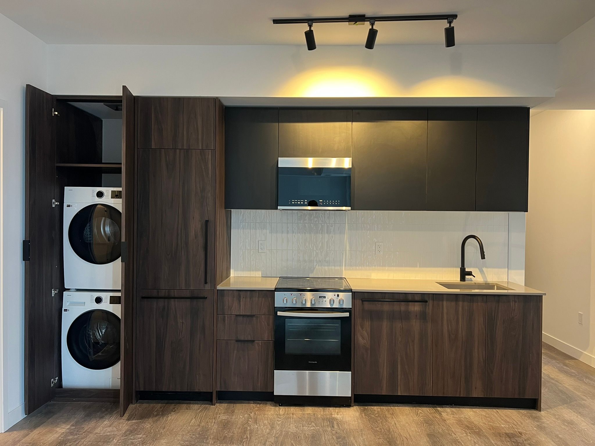 1635 military trail, unit 732. Spacious 2-bedroom + den (can be used as a 3rd bedroom) featuring 2 full bathrooms and a thoughtfully designed layout with separate living and dining areas. The modern kitchen is equipped with high-end kitchenaid appliances, sleek cabinetry, and a quartz countertop-perfect for both everyday living and entertaining. Enjoy a huge private balcony with beautiful views, along with the convenience of ensuite laundry and a private ensuite bathroom. Located in the sought-after highland creek neighbourhood, this unit is part of highland commons condos, surrounded by lush green spaces and overlooking the scenic highland creek river. Residents can enjoy nearby parks, nature trails, and easy access to lake ontario. This family-friendly community offers excellent schools and is within walking distance to uoft scarborough and centennial college, making it ideal for families and students alike. Close to a wide range of shopping, dining, and entertainment options, including scarborough town centre just a short drive away. A must-see to truly appreciate!