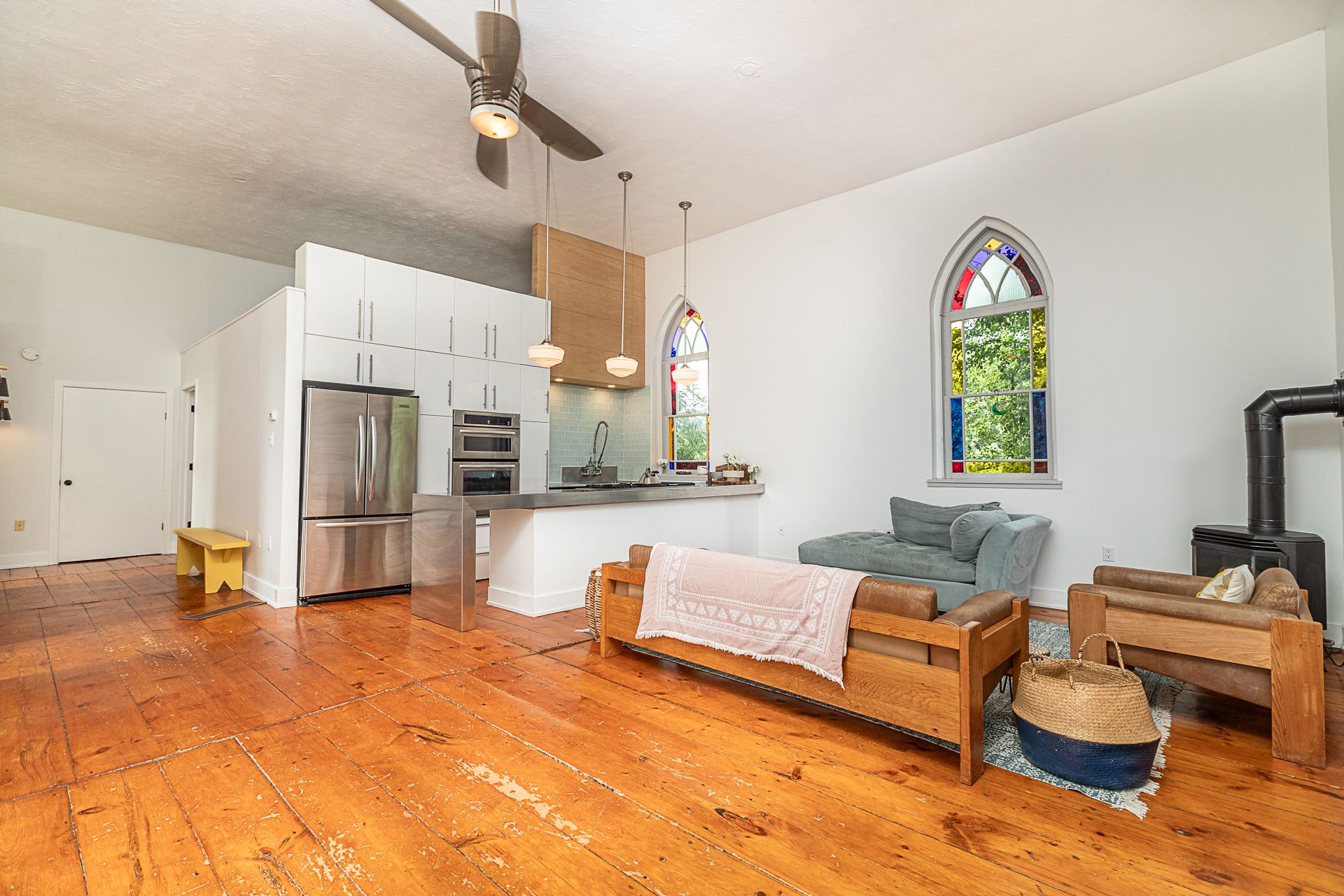 If you've been dreaming of something truly unique in prince edward county, this beautifully renovated former church might be exactly what you're looking for. Full of character and charm, it features soaring ceilings, original hardwood floors, and stunning stained glass windows that flood the space with natural light. The open-concept layout makes it feel bright and welcoming, with a cozy gas fireplace at the heart of the home-perfect for quiet nights in or hosting friends. There's one spacious bedroom, two stylish bathrooms, and even a dedicated doggy bath for your four-legged family members. Set on two peaceful acres surrounded by fragrant lilac trees, the property feels private and serene. There's also a separate bunkie with heat and power, making it a great spot for guests, a studio, or a home office. As an added bonus, there's potential to build another home on the property (with approvals), giving you flexibility for the future-whether that's extra space for family or an income opportunity. Located right next to huff estates winery and just a short drive to beaches, great restaurants, and everything else the county has to offer, this is a special place you'll want to see for yourself. So come for a visit, stay for a while and you too can call the county home.