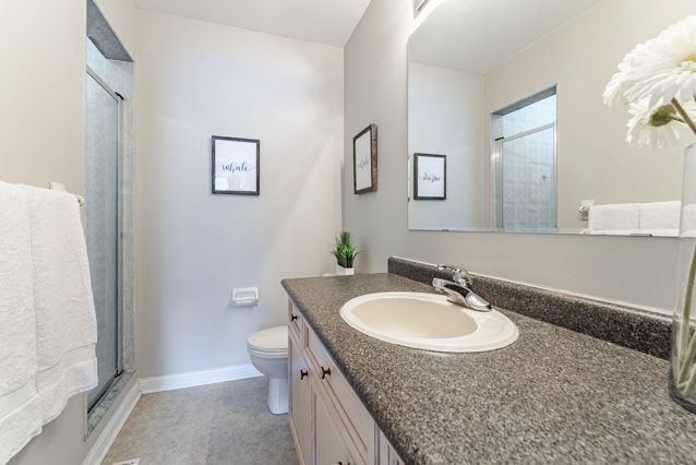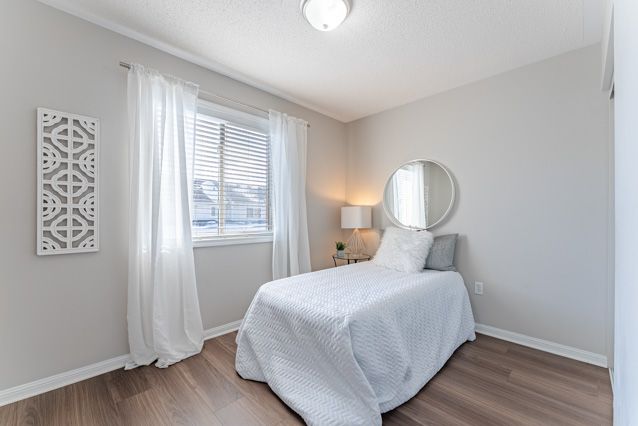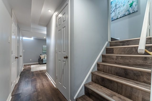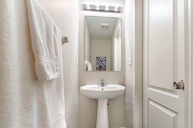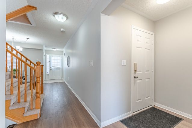 One of the first things you'll love in this freehold townhouse is the parking - with space for two cars in the driveway, plus a single-car garage. A covered front porch adds extra charm, with a tucked away nook that's perfect for a small table or outdoor storage. Step inside and you'll immediately feel the freedom this home offers with a great layout, a real backyard, and no condo fees. The dining room is thoughtfully positioned to keep everyday mess out of sight. As you move through the main floor, you'll pass a convenient powder room and inside entry from the garage before arriving in the inviting family room, ideal for entertaining, game nights, or cozy evenings. Overlooking the family room is the spacious kitchen, offering plenty of prep space, storage and room to add an island or breakfast table. Slide open the patio doors and the backyard becomes an extension of your living space, perfect for summer bbqs or easy outdoor time. Upstairs, you'll find three bedrooms and a full four piece main bath. The front bedroom features a study nook and a large window with a built in reading bench. The second bedroom overlooks the backyard and benefits from south facing windows that fill the room with natural light. Completing the level is the spacious primary retreat, with a walk-in closet and a private three piece ensuite. The finished basement is tailor made for a teen hangout, games zone or gym, featuring pot lights and a wet bar for gaming snacks, workout fuel, or late-night movie treats. A powder room is already in place, along with a cleverly tucked away shower closet - quirky in the best way and incredibly practical for guests, teens, or post-workout showers. With 3 showers in the house, nobody's waiting in line! Set in milton's clarke neighbourhood, this home is just a short walk to the redeveloped trudeau park. Commuters will appreciate the quick access to james snow parkway and hwy 401, making daily travel a breeze plus the added convenience of nearby amenities.