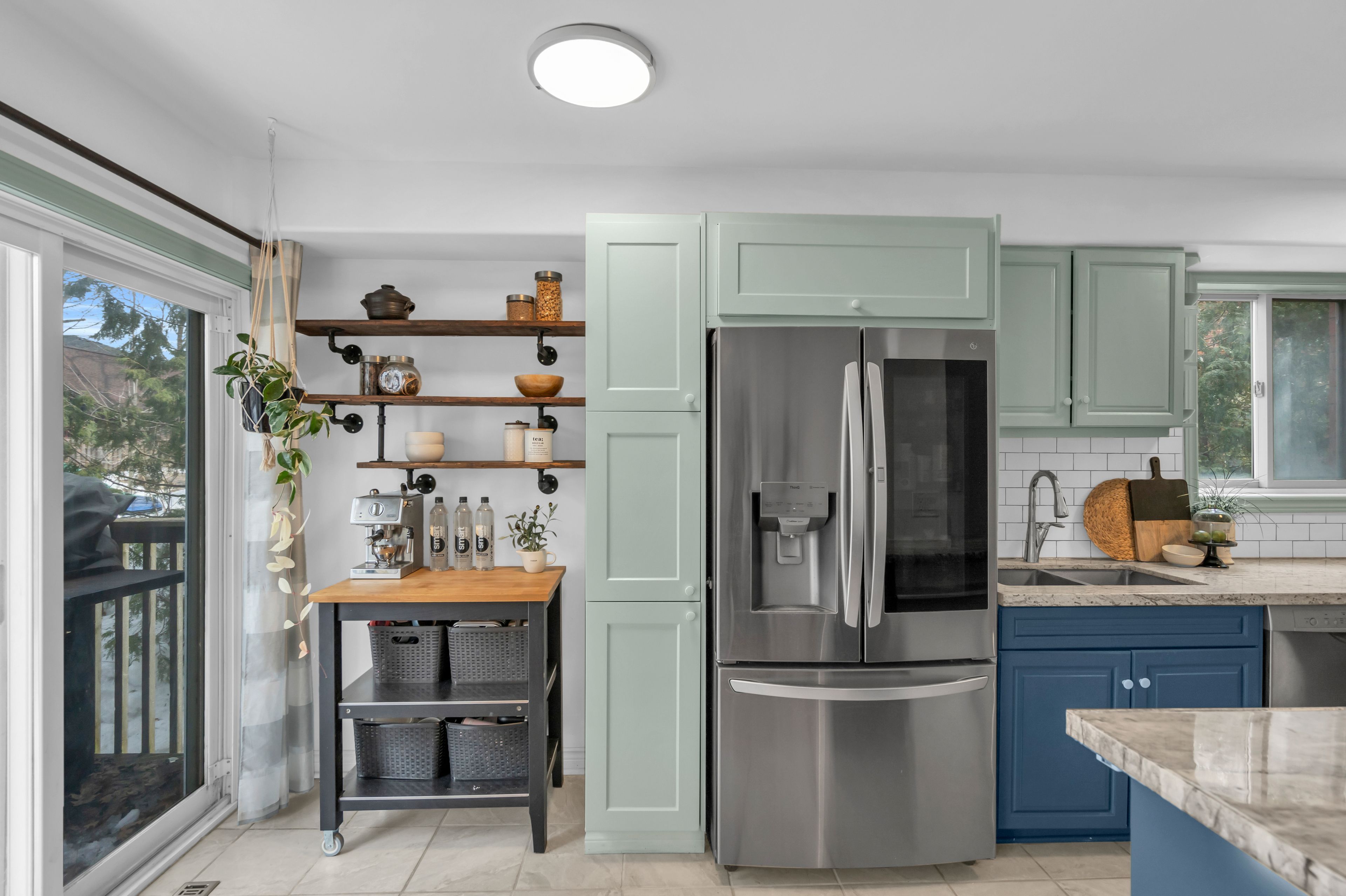 End-unit freehold brick townhouse with an extended 3-car driveway, 1-car garage, and a deep 157 ft lot. The main floor features a bright open-concept kitchen and dining area with an island and breakfast bar, stylish backsplash, stainless steel appliances, a newer see-through french door fridge, built-in microwave, and dishwasher. Sliding doors from the main floor lead to a large backyard perfect for entertaining, featuring a deck, garden area, shed, mature trees, and a fully fenced yard offering great privacy. Just a few steps up, you'll find a spacious and cozy living room with large windows, 9-foot ceilings, and a gas fireplace that was recently serviced and cleaned, creating a warm and inviting space filled with natural light. On the second floor, the home offers a spacious primary bedroom with a walk-in closet and convenient semi-ensuite access to the bathroom, which connects to both the bedroom and the hallway. The finished basement adds valuable living space with new flooring completed in 2026 and a full 4-piece bathroom. The garage also provides direct access to the basement, offering added convenience and privacy. Located in a fantastic area within walking distance to the waterfront, trendy restaurants, and local shops, while still being close to parks, schools, and everyday amenities.