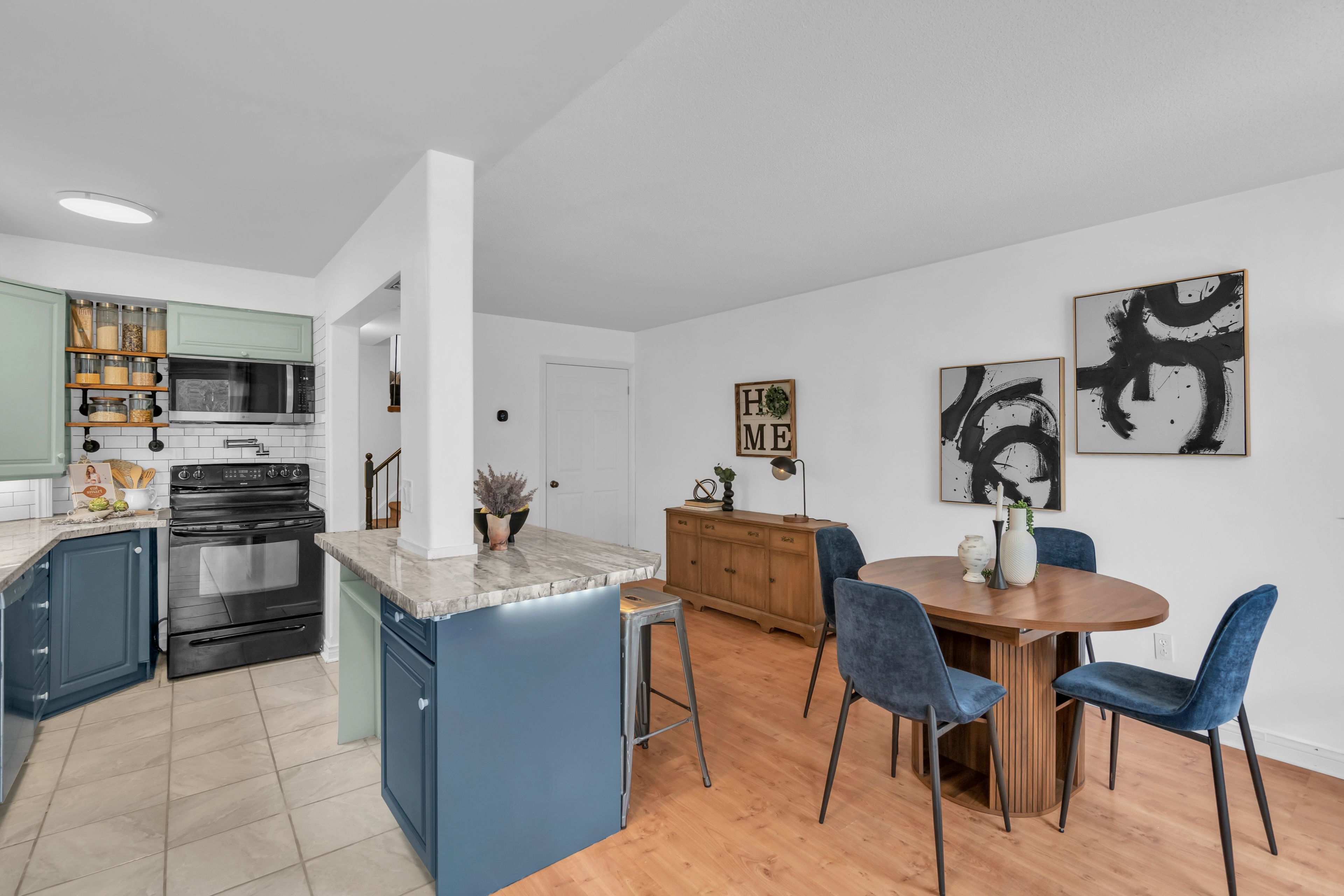 • Bright open-concept kitchen and dining area with modern appliances.