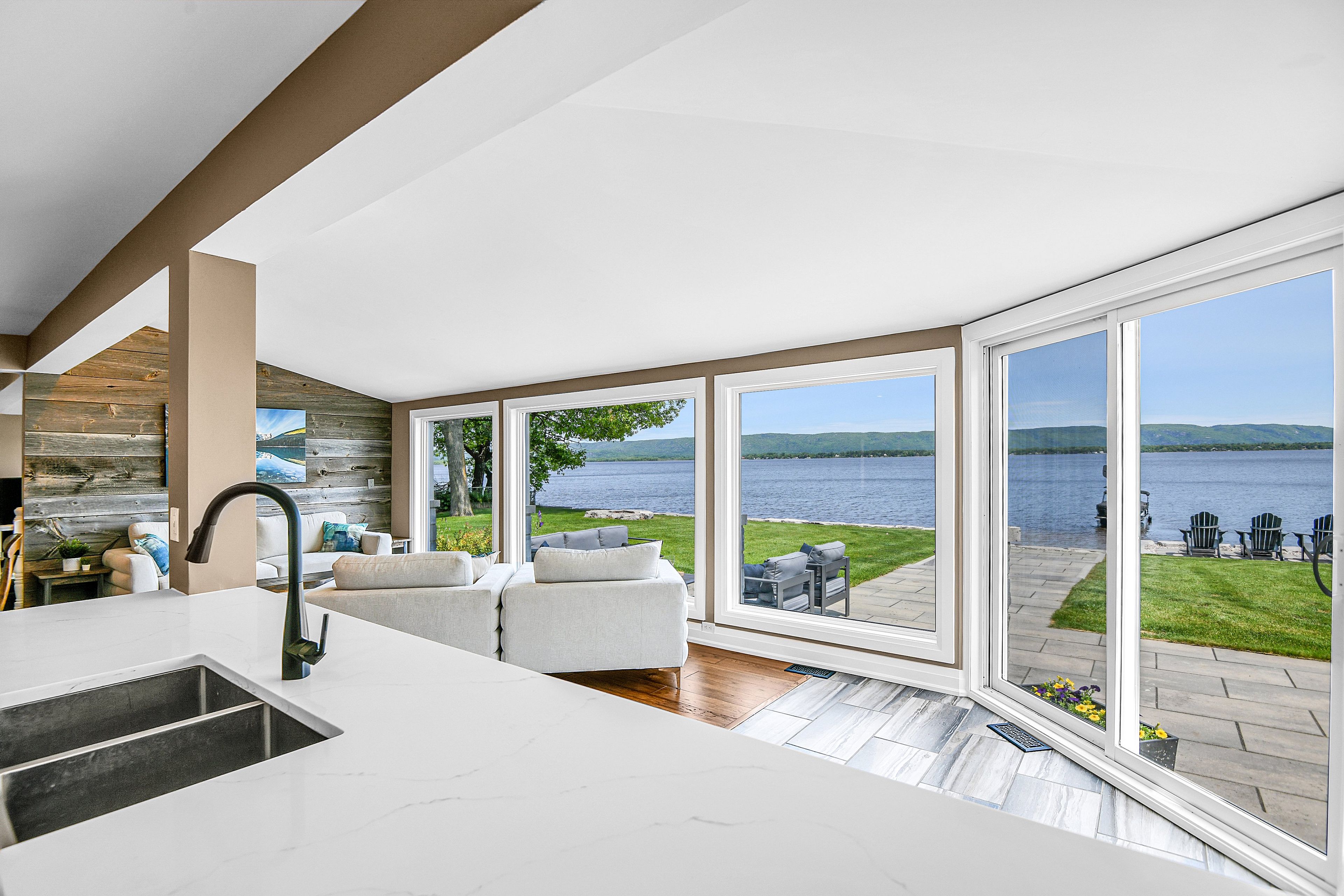 • Spacious living areas with large windows that showcase beautiful water and hill views.