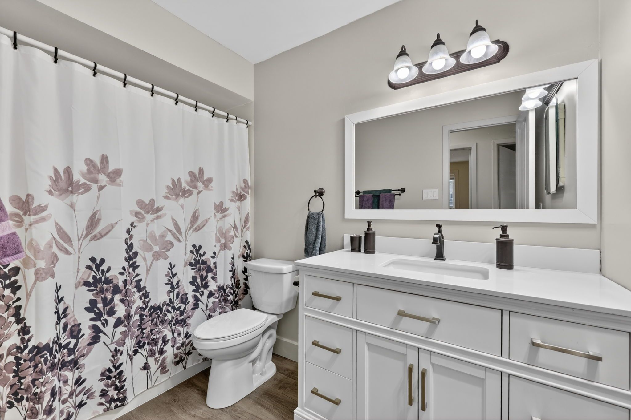 • Updated facade with modern stone and vinyl siding for great curb appeal.