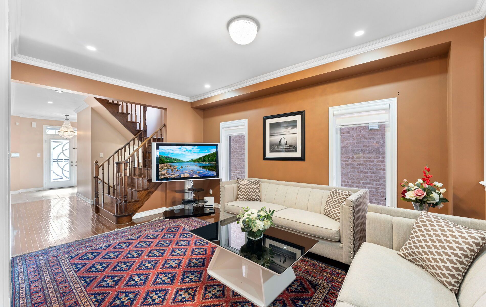 • Spacious layout with 3000+ sq ft of living space and 9 ft ceilings.