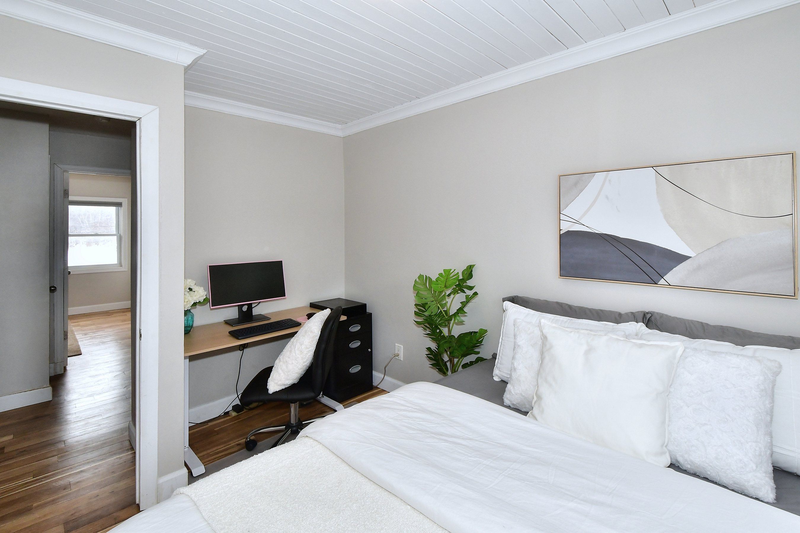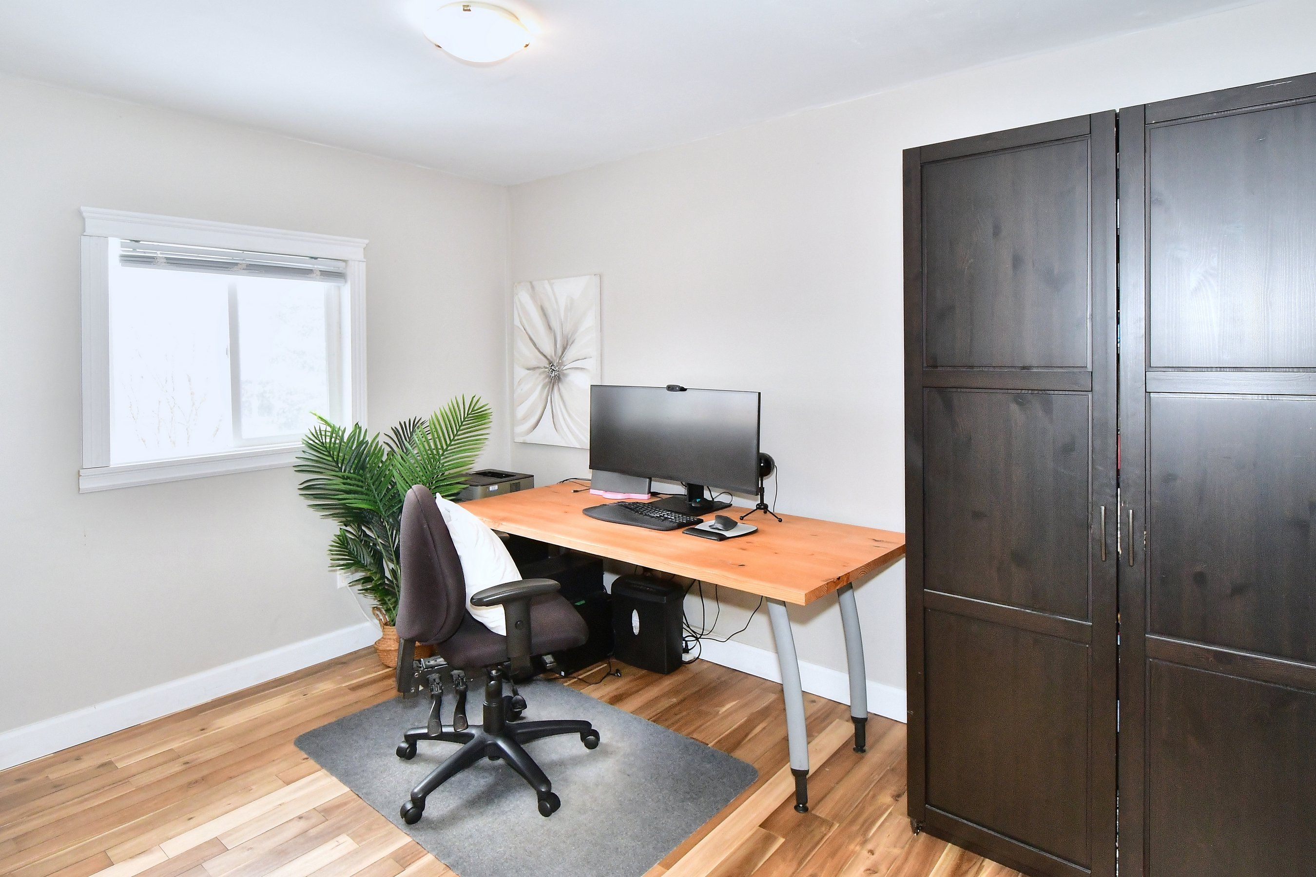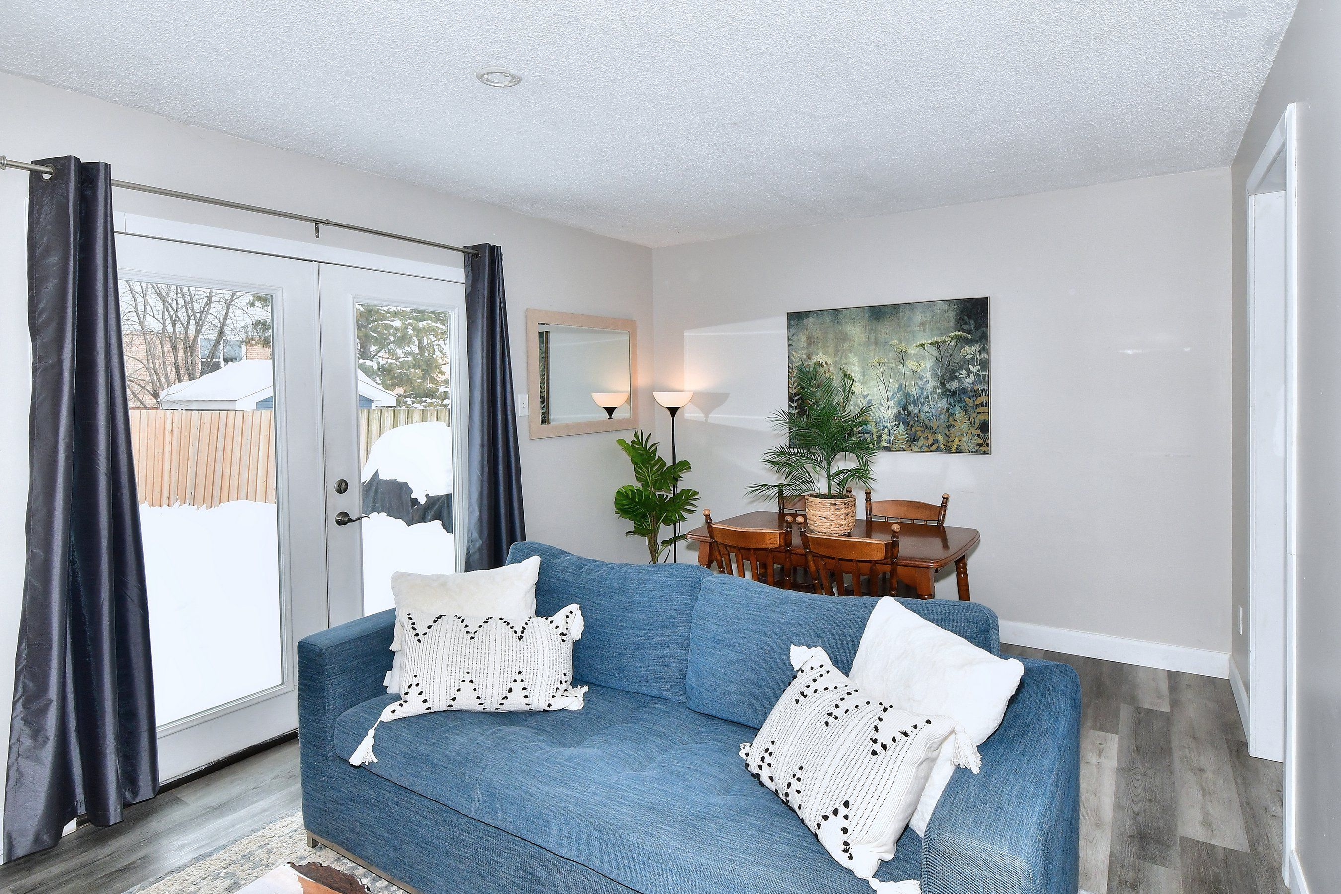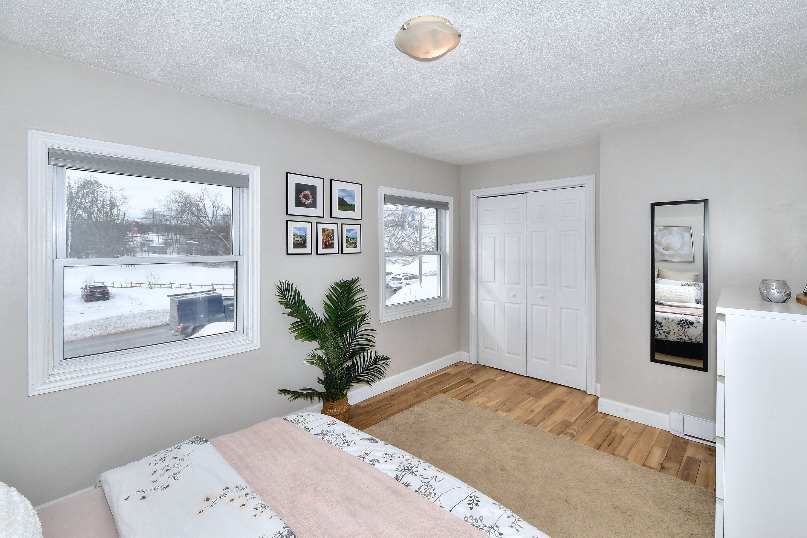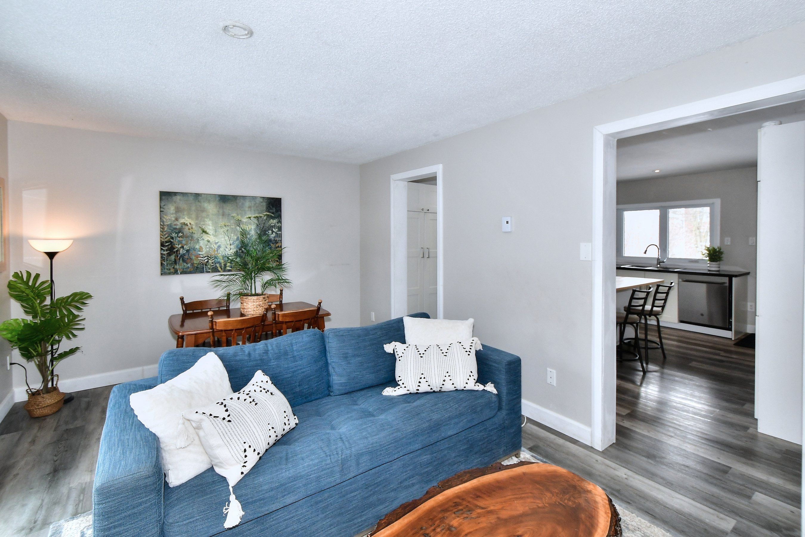 Exceptionally well maintained 3-bedroom freehold townhouse, no condo fees, perfect for first-time buyers looking to enter the market. This bright and spacious home features a large eat-in kitchen with ample cupboards and counter space, updated in 2022 along with new lvp flooring on the main-floor, refurbished hardwood on the second level, and new fridge and dishwasher. Hardwood floors run throughout the main and upper levels, and the living room offers a walk-out to a deck and privacy-fenced yard. The lower level includes a mostly finished rec room and utility room. Recent 2025 updates include new rear yard window and door trim and new eaves troughs. Many additional extras-don't miss this opportunity.