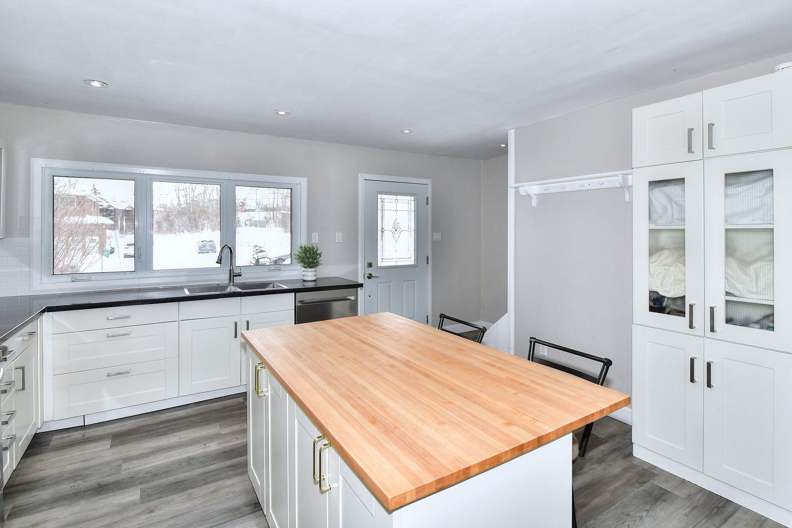 • Bright eat-in kitchen equipped with ample cupboard and counter space.