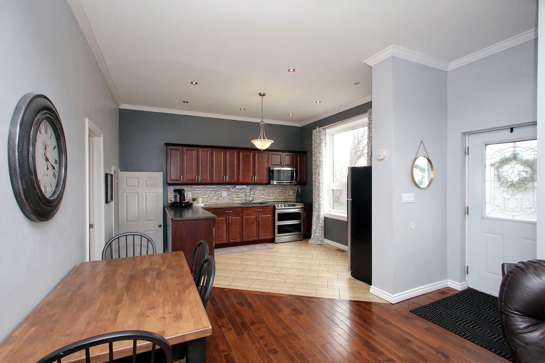 Beautiful bungalow (starter/down sizing home) located in the heart of bowmanville. Walk away from historic downtown bowmanville, with easy access to restaurants and shops. This open concept home features hardwood and ceramic flooring on the main floor, with large windows, allowing natural light to flow throughout the main floor. Main floor 10' ceilings w/ crown molding, maple kitchen cabinets, pot lights and ss appliances. The lower level has a walk out to the backyard and deck. Basement has a rec room, laundry/utility room, 2nd bedroom and a 2 pc bathroom.
