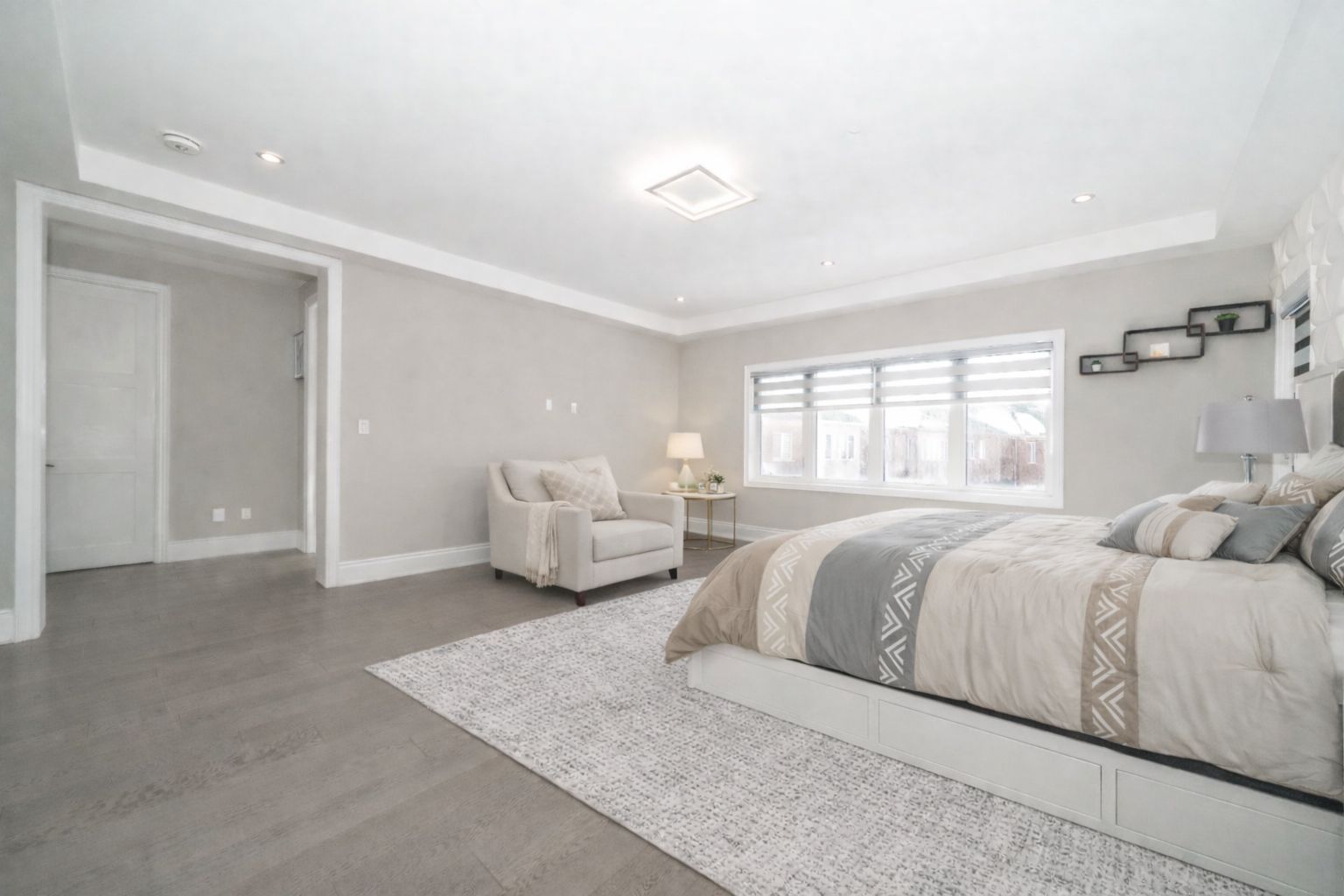 Welcome to 164 milky way drive, an exceptional three-storey detached home offering 4,545 square feet of luxurious above-grade living space (as per mpac), ideally situated in one of richmond hill's most sought-after communities. Complete with a 3-car tandem garage. Set on a premium south facing lot with no sidewalk, this remarkable home blends architectural presence with impeccable craftsmanship and tons of custom upgrades. A grand double door entry introduces soaring 10 foot ceilings on the main level and 9 foot ceilings on the upper and lower levels. Rich hardwood flooring flows throughout, complemented by coffered and waffle ceilings, pot lights with dimmers. Designed for both grand entertaining and everyday living, the open concept layout features a formal dining area, a private main floor office, and an inviting family room with a statement waffle ceiling and gas fireplace. The chef inspired kitchen is a showcase of luxury with custom cabinetry, soft closing drawers, and an expansive center island, while a bright breakfast area walks out to the beautifully interlocked backyard. All four bedrooms are generously proportioned, each with its own private ensuite, every room comfortably accommodating a king size bed. The primary retreat offers a spa inspired five piece ensuite and walk in closet. The expansive third floor loft with balcony access provides exceptional flexibility ideal as a guest suite, nanny quarters, executive office, or additional entertainment space. The open basement offers further customization potential. Perfectly positioned minutes to go transit, highways 404 and 407, david dunlap observatory park, fine shopping, dining, and everyday conveniences.