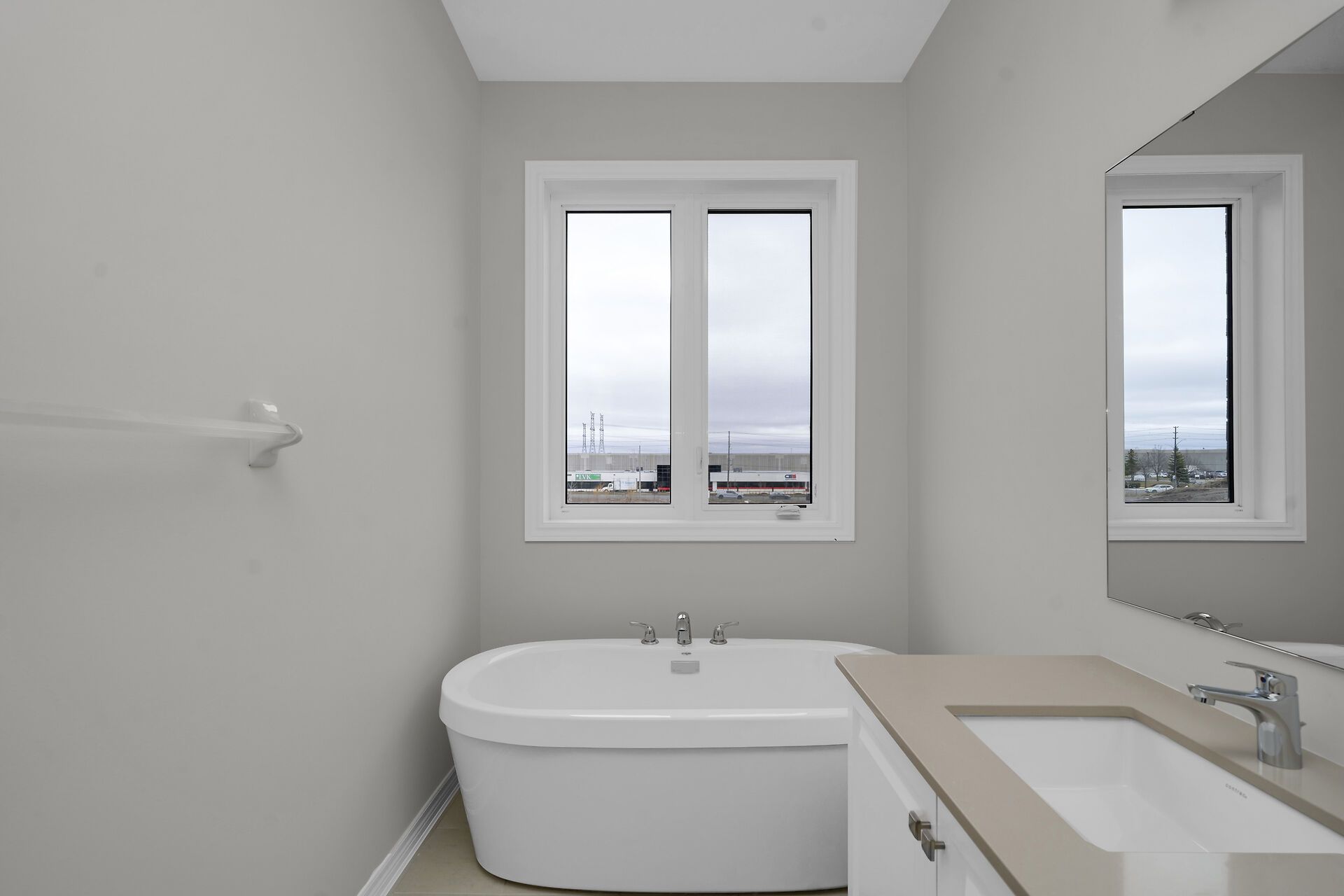 Welcome to brand-new freehold luxury traditional 2-storey townhome. Built by a reputable builder remington homes. Superior architecturally designed elevation with brick, stucco, stone and stone accents. Well designed interior unit "the buttercup" features 1604 sq. Ft. As per builder's plans plus partially finished basement (rec room and 3 piece washroom). 9' ceilings on ground and second floors. Quality custom crafted kitchen cabinets. Extra height kitchen cabinets plus kitchen island granite counters in kitchen and washrooms. Hardwood on ground floor. Freestanding tub in primary ensuite. Concrete block party wall above grade separating living units. Smart future ready home wiring package. This subdivision is close to aaniin. Community centre, schools, major highways, transit routes, 2,000km nature trails, golf clubs. Flexible closing available (30, 60, 90 days). High-efficiency furnace and central air conditioning are included.