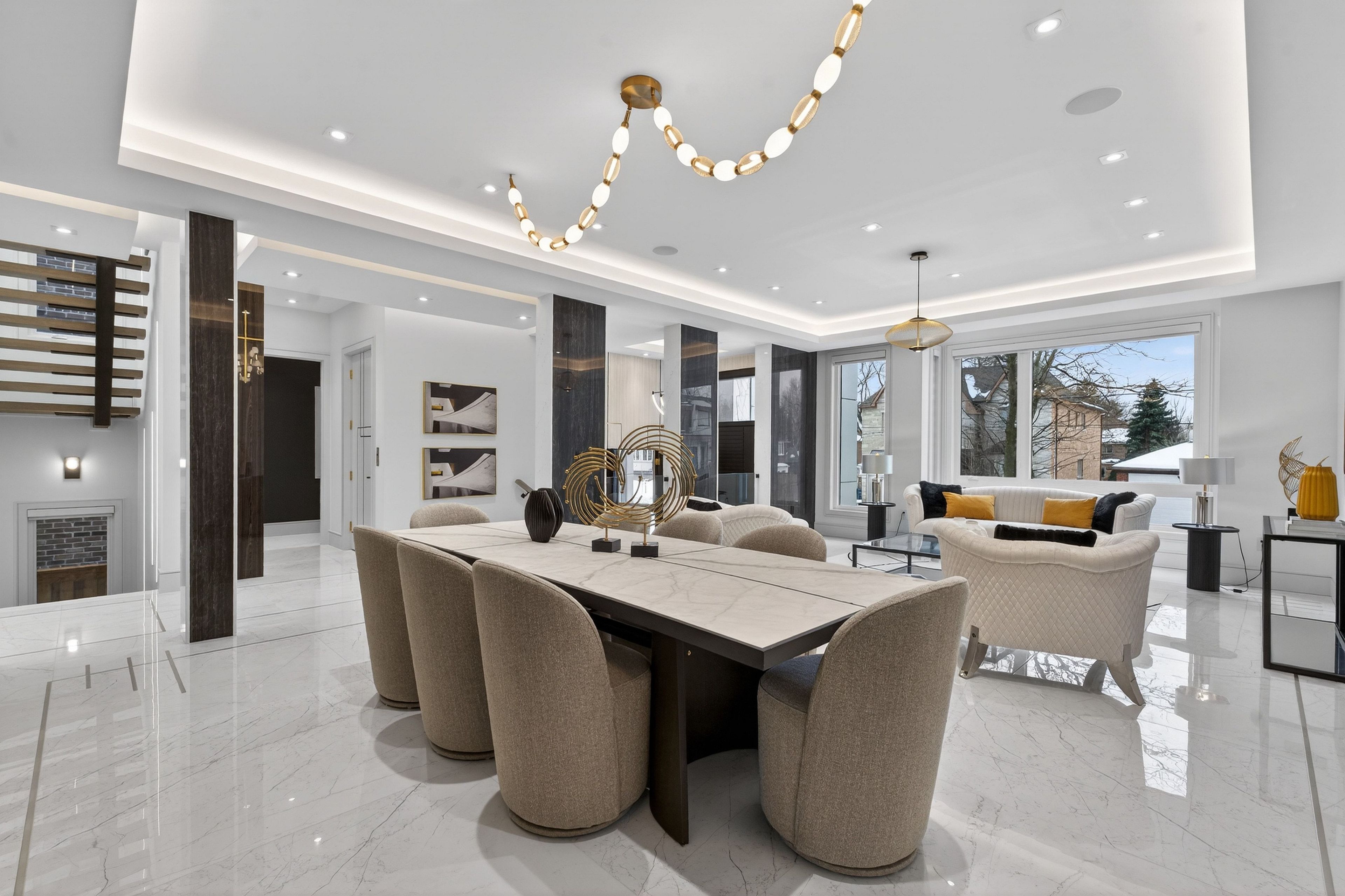 This stylish modern custom home, boasting a perfect blend of advanced architectural design, the latest tech&comfort (control-4 home automation), premium craftsmanship with approx. 5,700 sq. Ft of elegant living space(~3,900 s. F in main& 2nd flr +~1,800 s. F in professional finished basement). It feels magically like a 50 feet lot inside, much bigger than the real size based on maximum possible lot coverage(only 4 ft in side)! This beauty features: meticulous modern facade combination of acm (aluminium composite panel/ material)& imported brick + brick in the sides&back! Large size windows, providing ample natural light! Porcelain slab flooring with heated underneath in main flr,office,foyer, basement,all washroom floors,porch,front steps & driveway!! 9. 5" wide engineered hardwood thru-out 2nd floor! Led potlights, designer accent walls, inlay led lights on wall& wall unit! High-end millwork! Remarkable designed washrms! Soaring ceiling height> foyer & office:13',1st flr:10',2nd flr:9 to10',bsmnt rec:10'. Chef inspired kitchen with quality rich modern cabinets, state-of-the-art appliances, breakfast area, w/o to family sized deck&concrete blocks patio with modern turf grid grass& a pool! Exciting living/dining rm with cof cling&ambient lights, gorgeous designed wall unit includes drink centre! Family rm with unique modern designer b/i shelves and fireplace. Master bedroom includes 9-pc spa-like ensuite with auto toilet&steam sauna& a boudoir walk-in closet with island&window! Open rising main staircase with 3" run's thickness, and tempered glass railing! Finished heated floor w/o basement, rec rm with a wet bar includes b/i shelves, s/s beverage cooler, s/s sink, s/s dishwasher, gas fireplace, nanny rm,3pc bath, 2nd laundry, media room. Convenient & coveted location >> norton ave! Steps away from yonge st, north york centre, best schools(earl haig s. S & hollywood p. S), mitchell field community centre with indoor&outdoor amenities! *pool&media room are virtually staged*