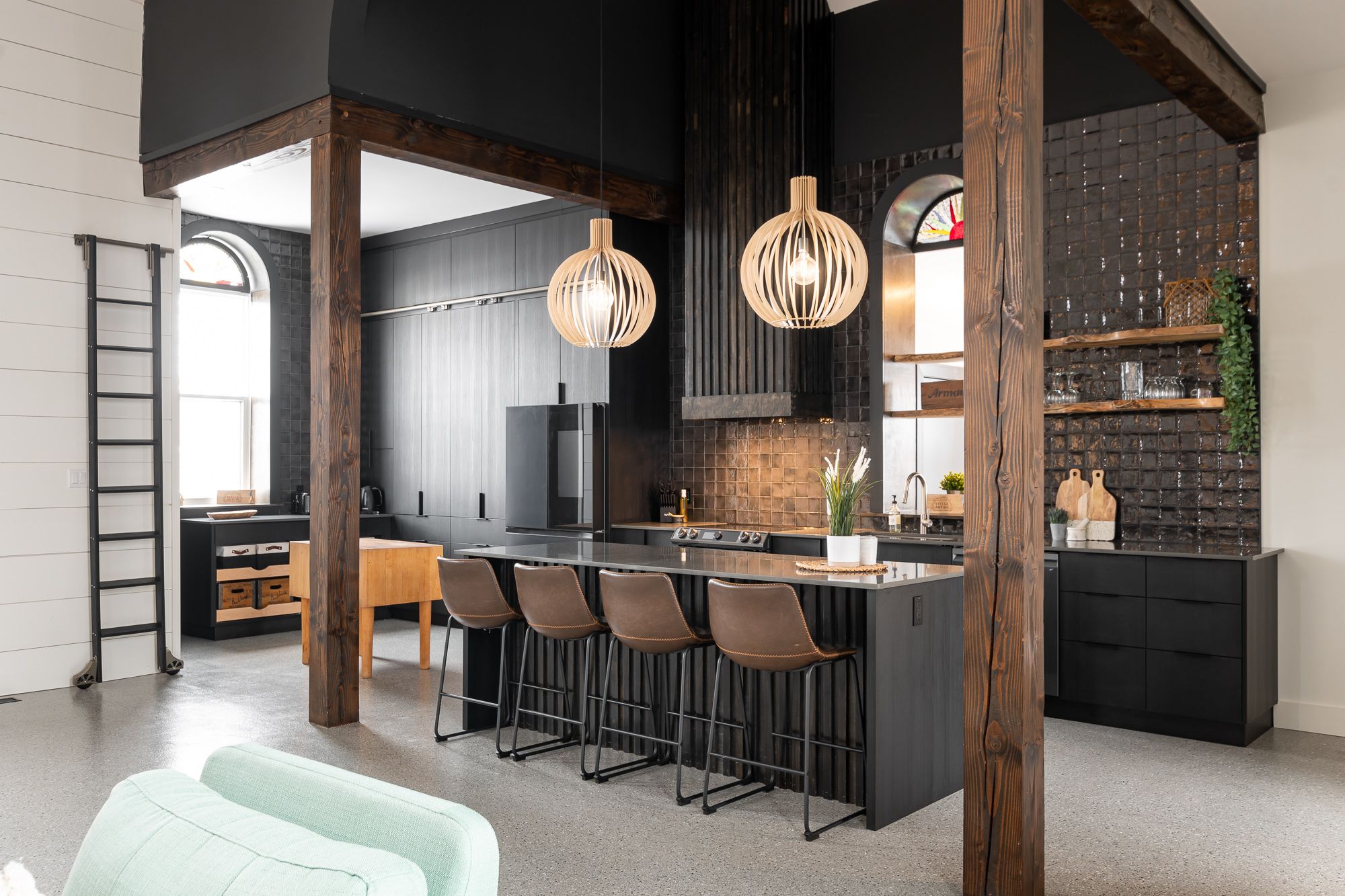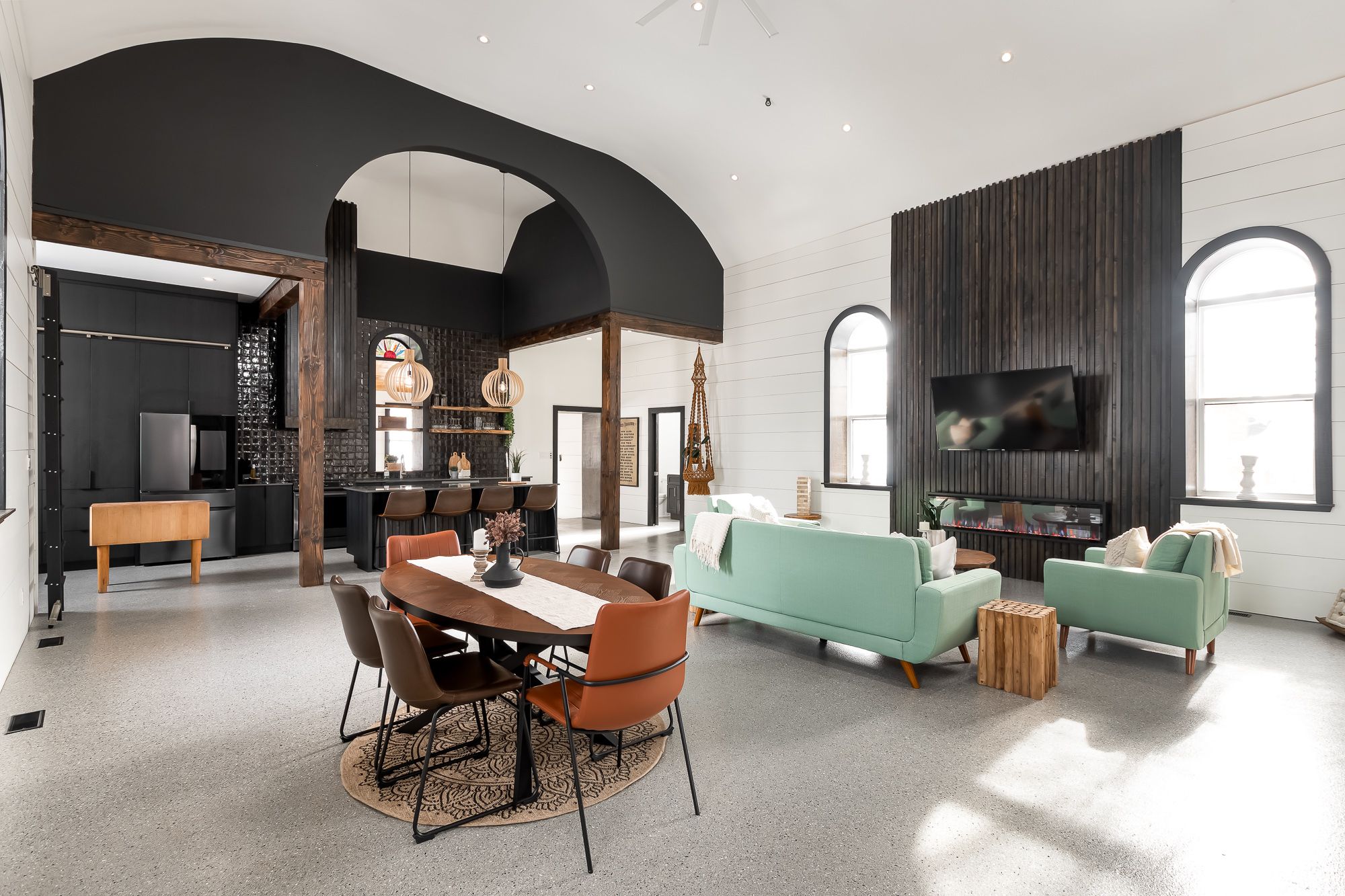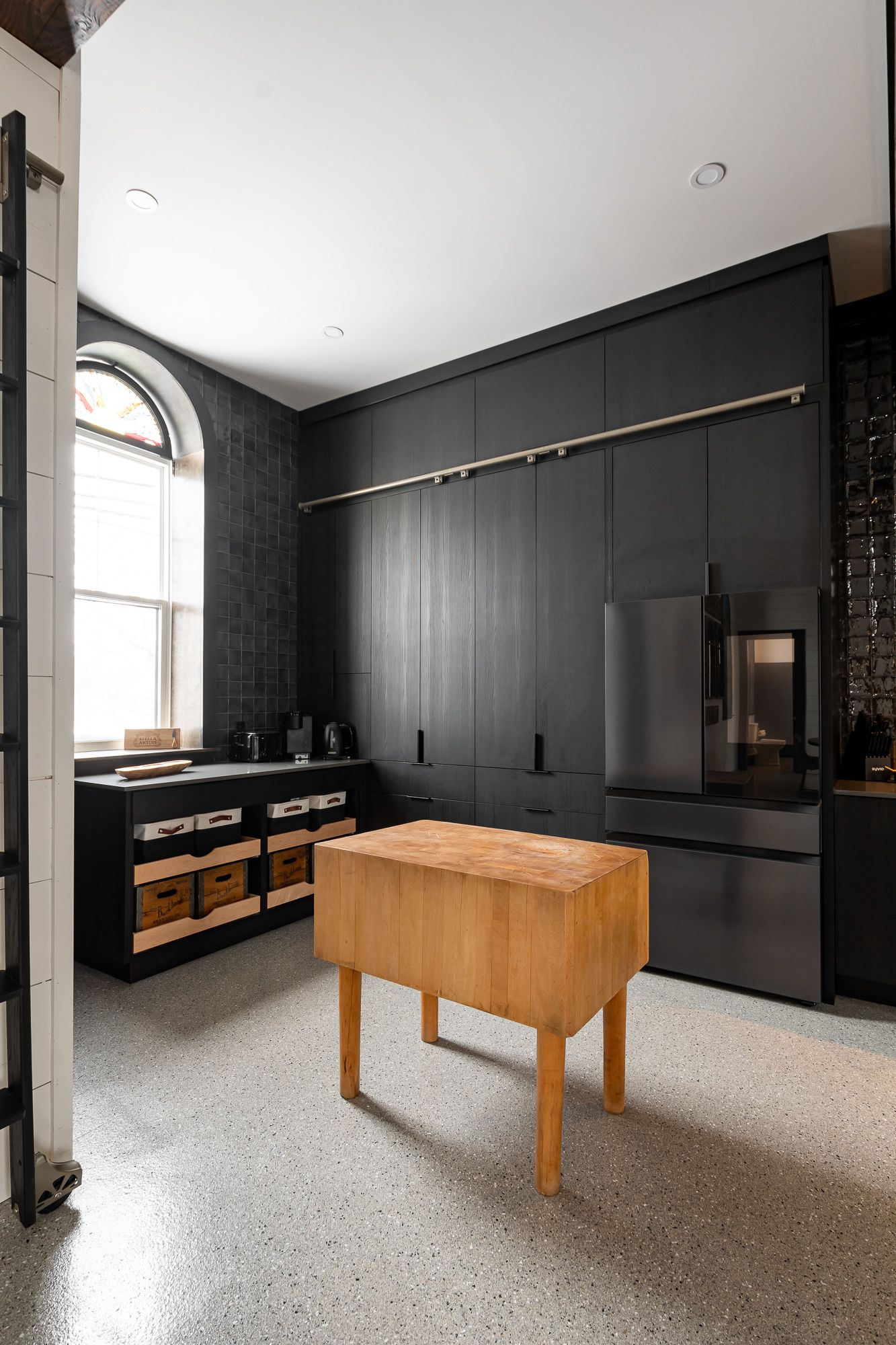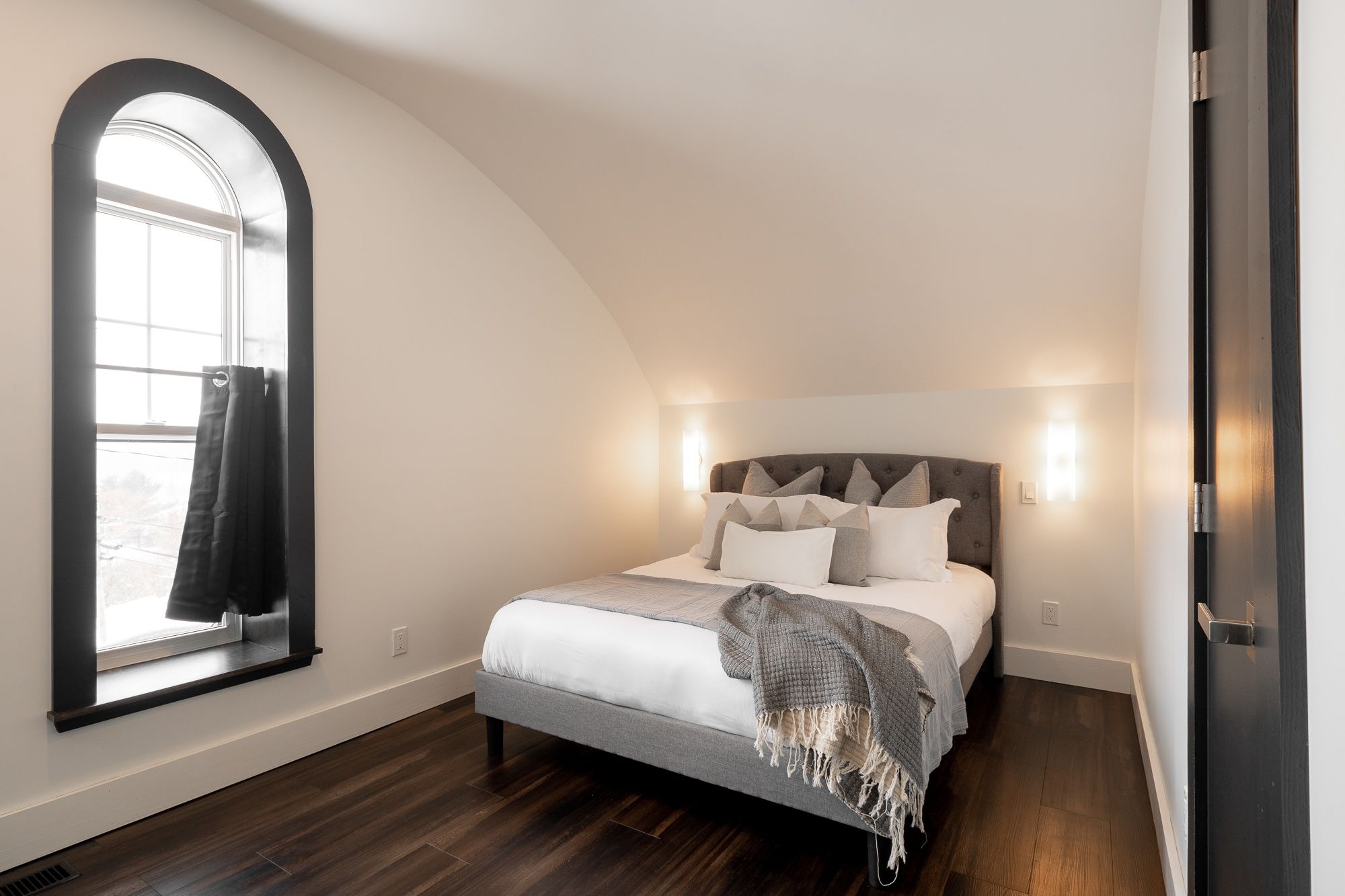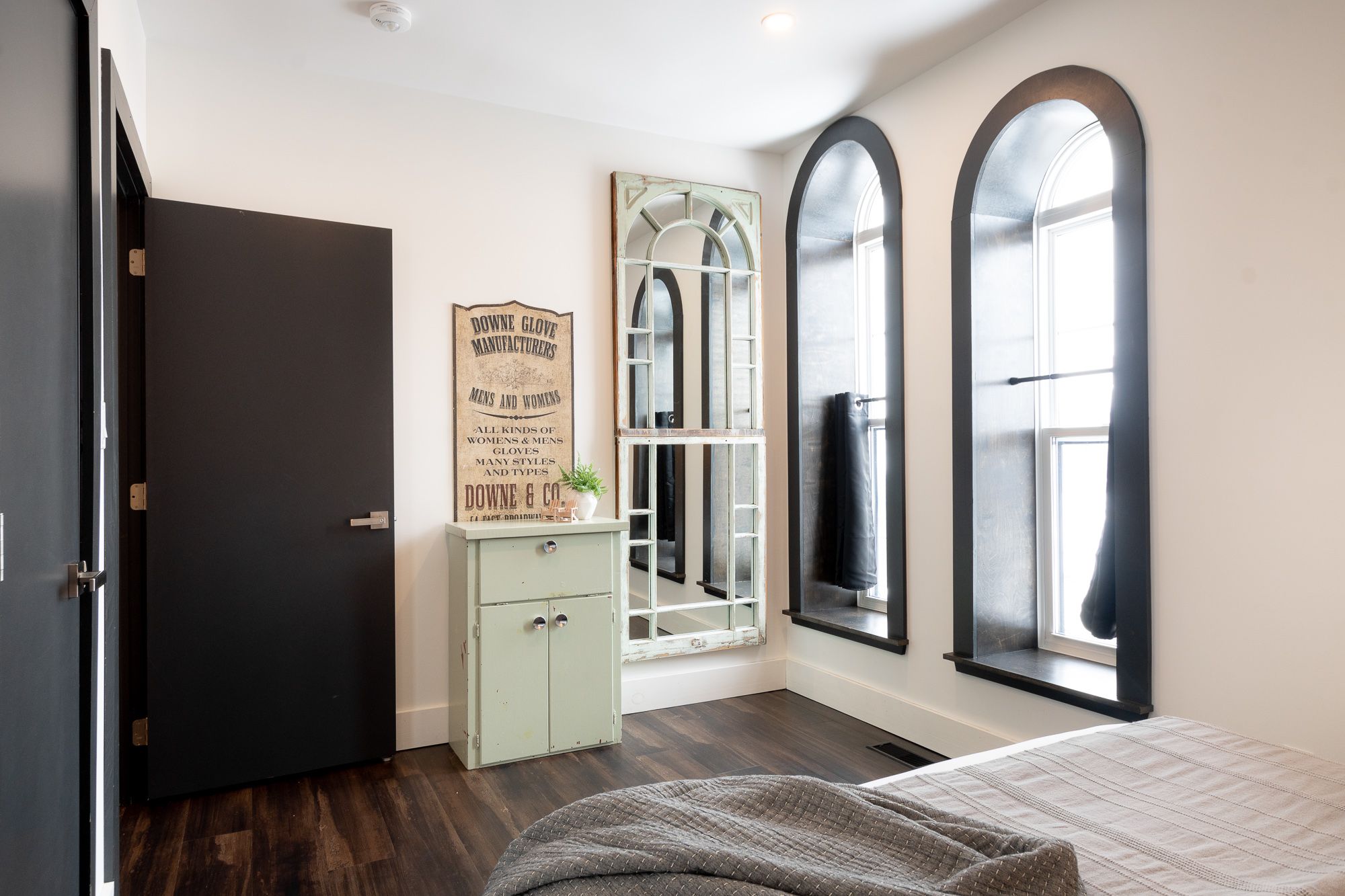 Soaring ceilings, rich architectural detail & a bold, design-forward aesthetic define this extraordinary converted church, thoughtfully transformed into a one-of-a-kind residence. Offering 5 beds & 3. 5 baths, the interior blends historic character & striking modern finishes. A dramatic black kitchen anchors the main living space with floor-to-ceiling cabinetry, quartz counters, modern tilework, & a rolling library ladder. Warm white walls contrast beautifully with ebony-stained fluted beams & accents, while shiplap in the grand room & foyer enhances the scale of the space. Fluted detailing carries through the fireplace, kitchen island & hood vent, complemented by custom fluted pocket doors in the primary bedroom, main bath & powder room. Two natural wicker swings hang gracefully from the high ceilings, creating an unforgettable focal point. A wood-clad feature wall & modern electric fireplace add warmth, while reclaimed original church flooring has been repurposed as ceiling accents in the foyer & mudroom. The original hardwood on the main level has been refinished, & select areas feature durable epoxy flooring. Behind the beauty lies a comprehensive rebuild. The property was fully gutted to the studs, including removal of lath, plaster & old insulation, then completely reframed. Blown-in insulation was added through the balloon framing, the stone foundation was spray-foamed, & a fireproof membrane was installed between floors. All plumbing, electrical & hvac systems have been replaced, including two separate furnaces for upper & lower levels plus air conditioning on the upper floor. The brick & stone exterior has been carefully restored, all windows & doors replaced, & the home has been rezoned as a duplex with full kitchen hookups added to the street-level floor. The lower level requires double drywall to complete full legal duplex conversion. An exceptional opportunity to own a meticulously restored architectural landmark, reimagined for modern living.