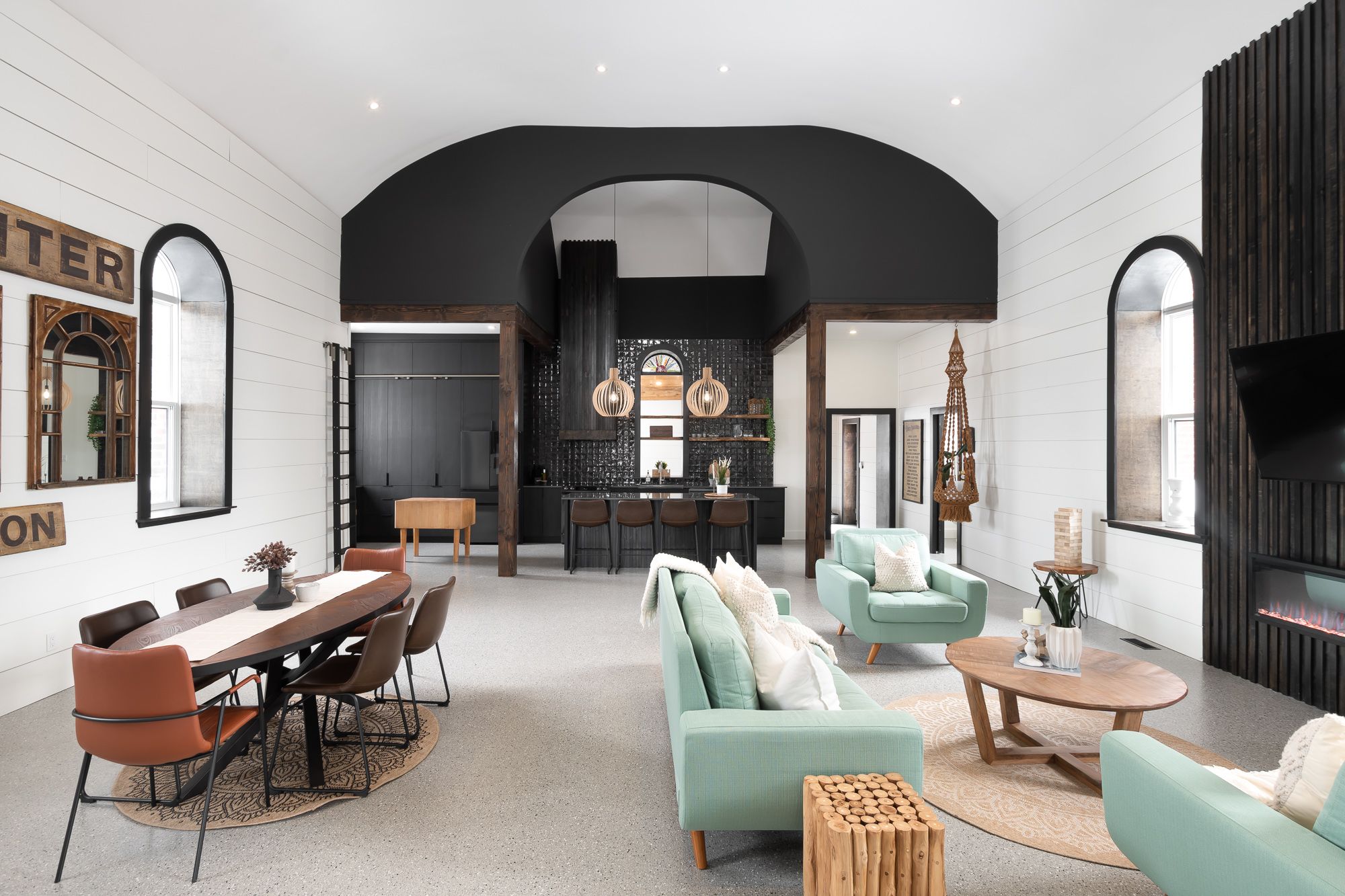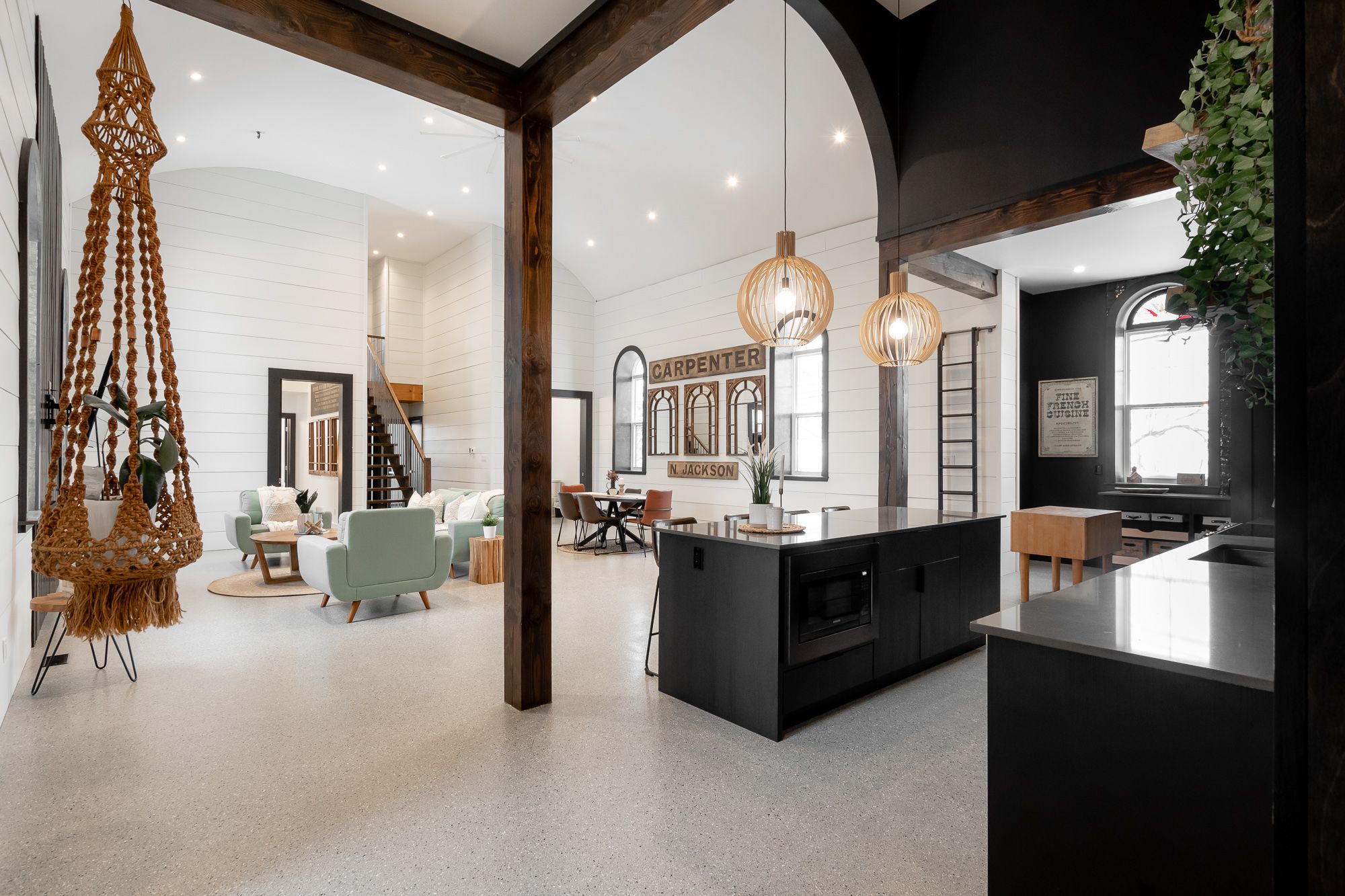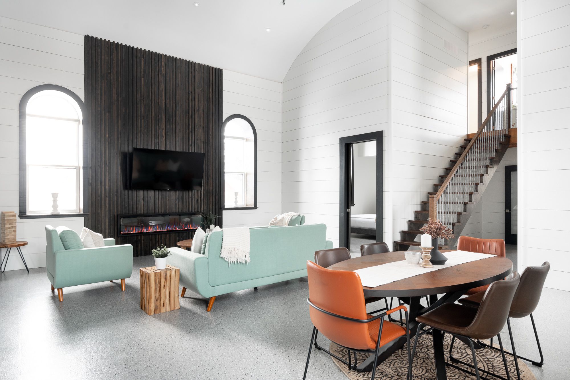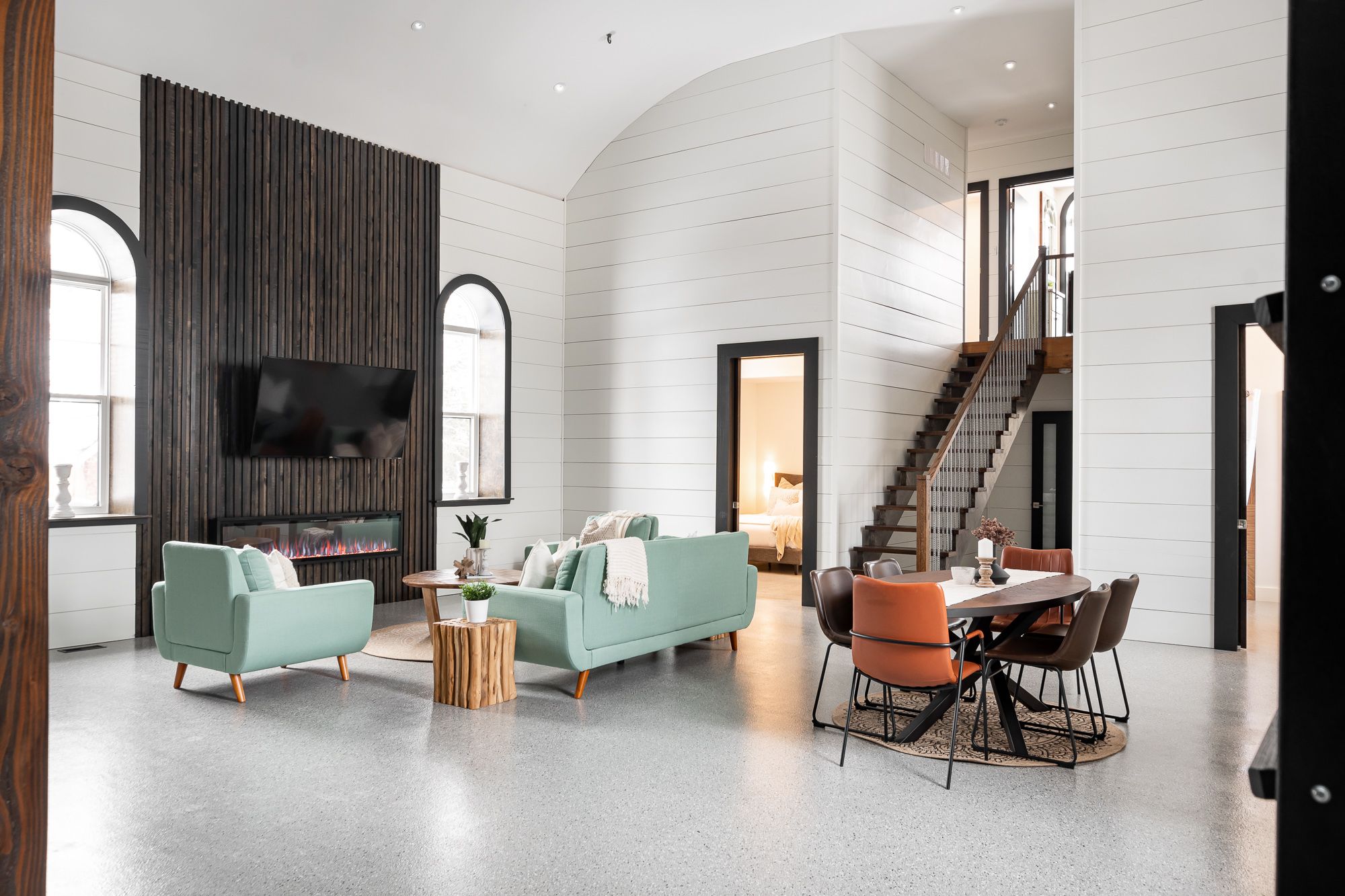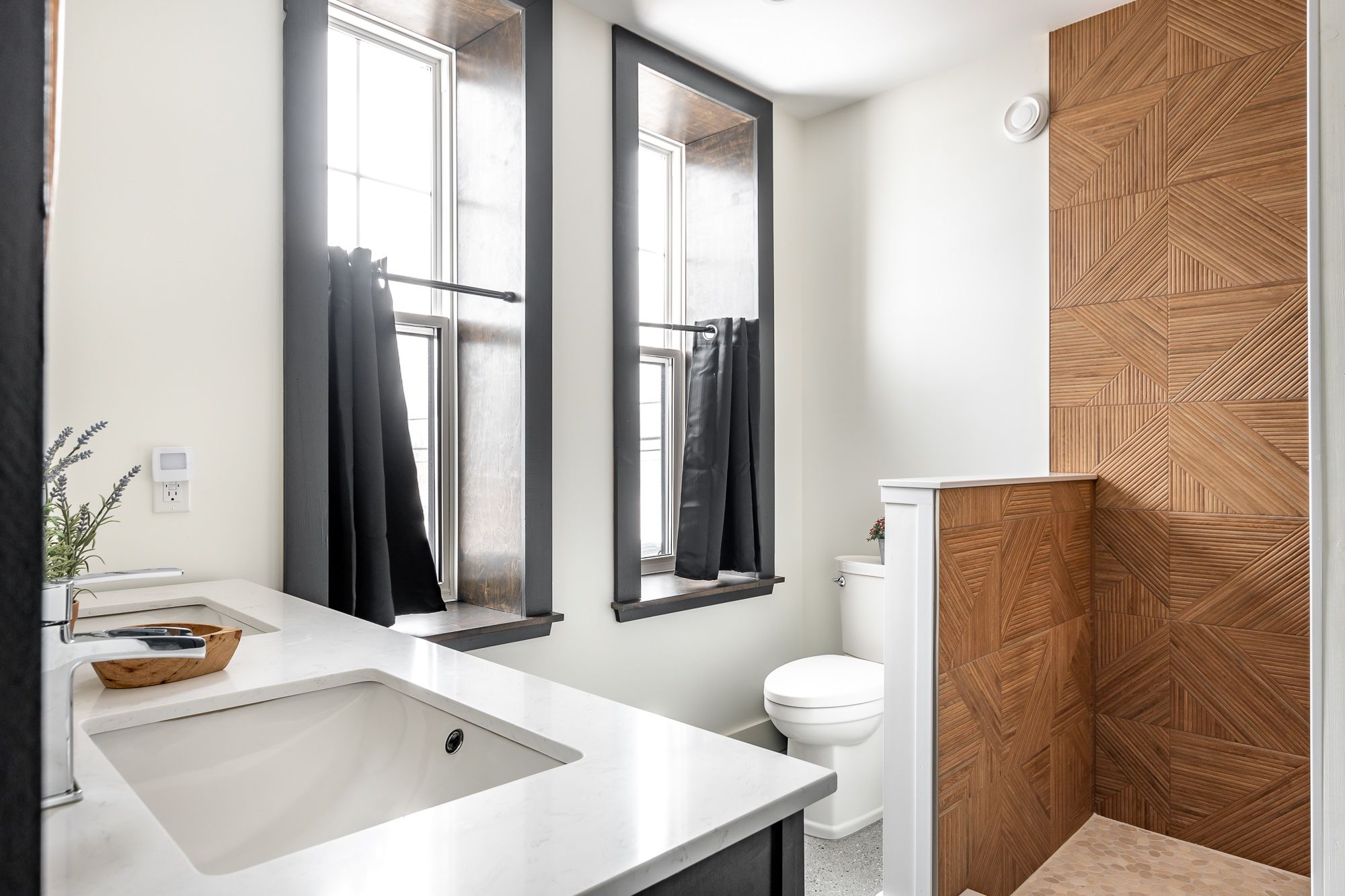Soaring ceilings, rich architectural detail & a bold, design-forward aesthetic define this extraordinary converted church, thoughtfully transformed into a one-of-a-kind residence. Offering 5 beds & 3. 5 baths, the interior blends historic character & striking modern finishes. A dramatic black kitchen anchors the main living space with floor-to-ceiling cabinetry, quartz counters, modern tilework, & a rolling library ladder. Warm white walls contrast beautifully with ebony-stained fluted beams & accents, while shiplap in the grand room & foyer enhances the scale of the space. Fluted detailing carries through the fireplace, kitchen island & hood vent, complemented by custom fluted pocket doors in the primary bedroom, main bath & powder room. Two natural wicker swings hang gracefully from the high ceilings, creating an unforgettable focal point. A wood-clad feature wall & modern electric fireplace add warmth, while reclaimed original church flooring has been repurposed as ceiling accents in the foyer & mudroom. The original hardwood on the main level has been refinished, & select areas feature durable epoxy flooring. Behind the beauty lies a comprehensive rebuild. The property was fully gutted to the studs, including removal of lath, plaster & old insulation, then completely reframed. Blown-in insulation was added through the balloon framing, the stone foundation was spray-foamed, & a fireproof membrane was installed between floors. All plumbing, electrical & hvac systems have been replaced, including two separate furnaces for upper & lower levels plus air conditioning on the upper floor. The brick & stone exterior has been carefully restored, all windows & doors replaced, & the home has been rezoned as a duplex with full kitchen hookups added to the street-level floor. The lower level requires double drywall to complete full legal duplex conversion. An exceptional opportunity to own a meticulously restored architectural landmark, reimagined for modern living.