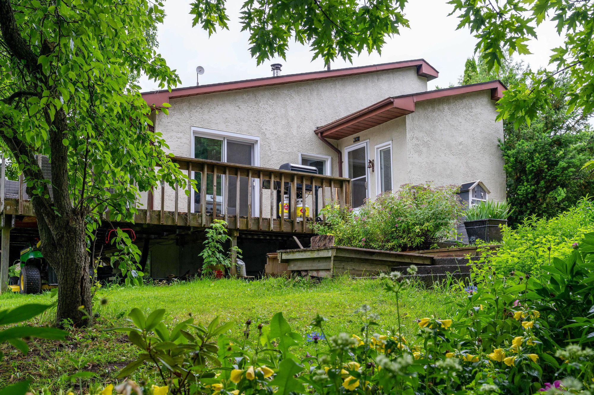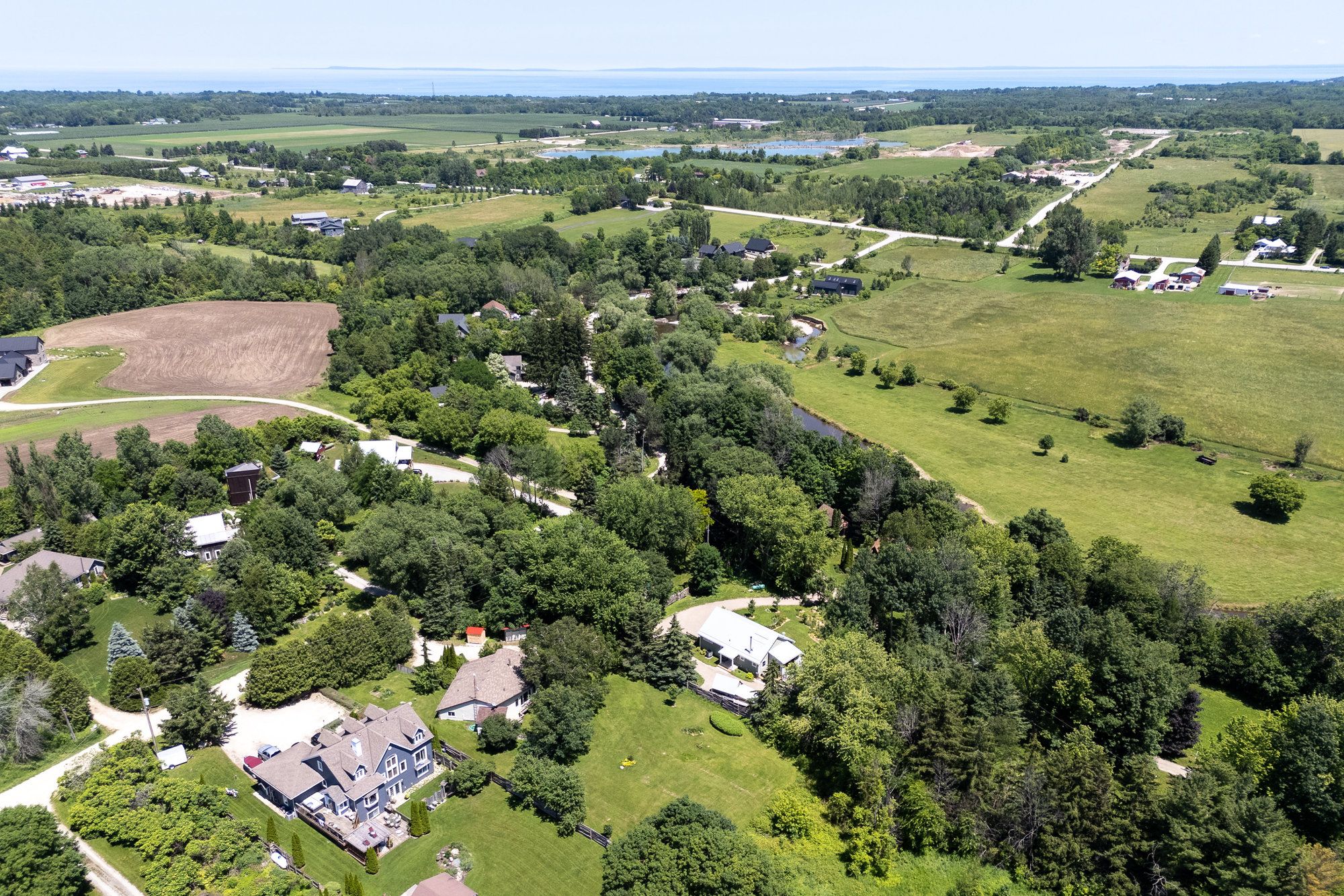 Welcome to life at 164 slabtown rd where peace, privacy, and year-round adventure come together. Just a short stroll from the beaver river, this charming home sits on nearly an acre of land surrounded by mature trees, curated gardens, and a private backyard oasis perfect for outdoor living and children's playground. Inside, over 2,500 sq. Ft. Of finished living space offers room for the whole family with 4 bedrooms and 3 bathrooms. The great room features soaring vaulted ceilings with rustic barn beams, a wood-burning stove for cozy winter nights, and oversized windows that bring the natural surroundings inside. The open-concept living, and dining areas flow seamlessly to an expansive back deck, ideal for al fresco summer entertaining, morning coffee, or quiet evenings listening to the birds and nature. The main floor hosts a peaceful primary suite with 4-pc ensuite, plus two additional bedrooms, a 3-pc bath, and a laundry room for easy one-level living. The lower level, which can be accessed from the main floor, also has its own separate entrance, and includes a second kitchen, living/dining space, bedroom, 3 pc bath and laundry, perfect for extended family, teens, or a private guest or in-law suite. Store your gear and seasonal toys in two spacious sheds, one for bikes, golf clubs and gardening tools, the other is stocked with firewood. Located just minutes from the georgian bay club, the peaks ski club, local wineries/cideries, and downtown thornbury's restaurants, galleries, and boutiques, this property places you at the heart of everything the blue mountains has to offer. Ski, golf, paddle, hike, relax - its all right here. Discover the lifestyle you've been waiting for.