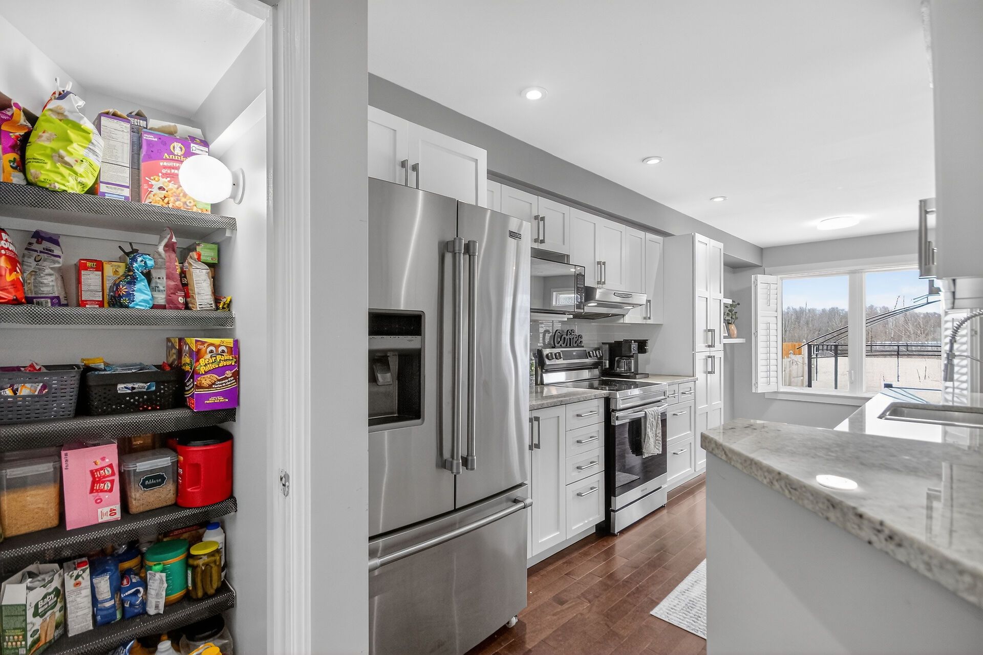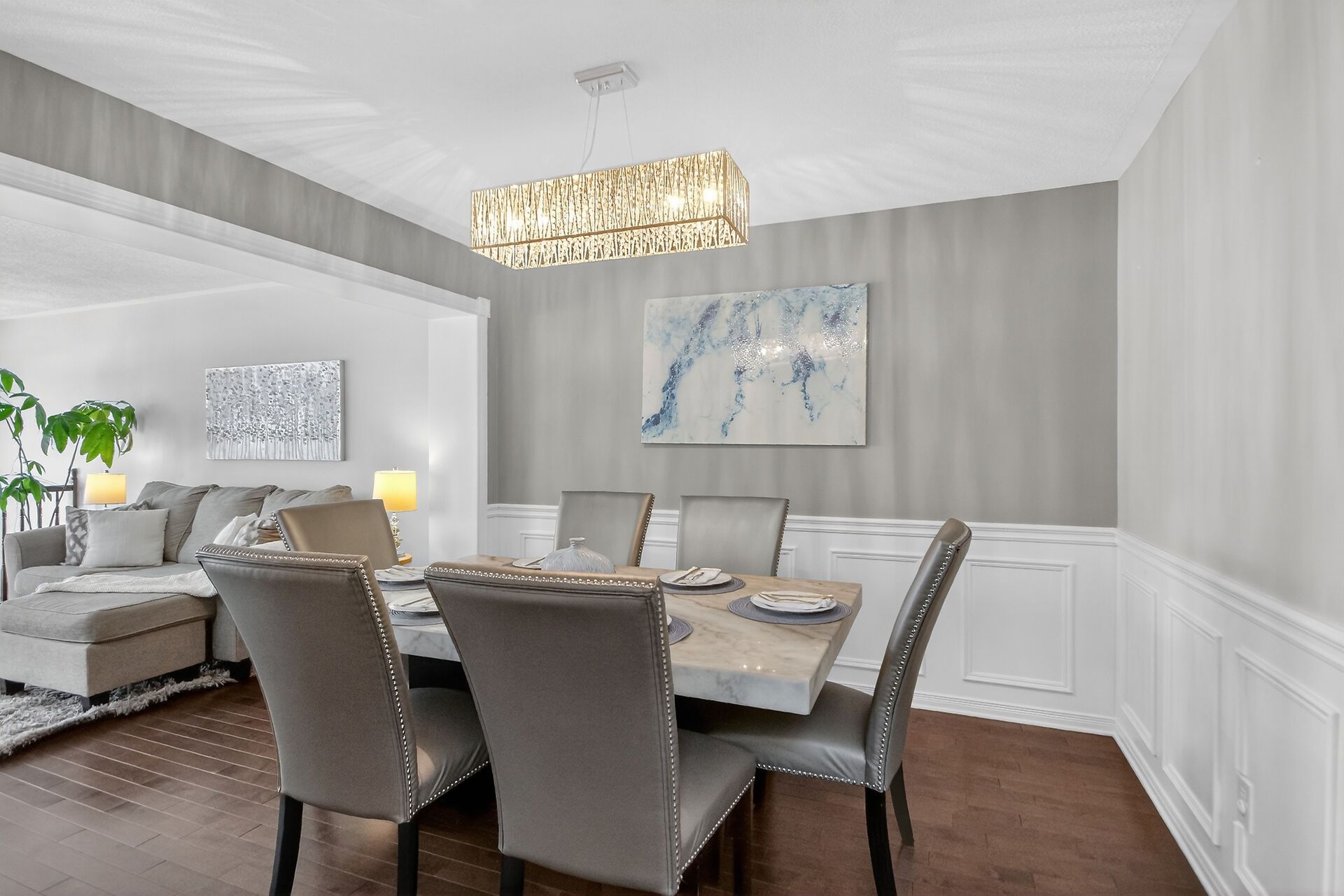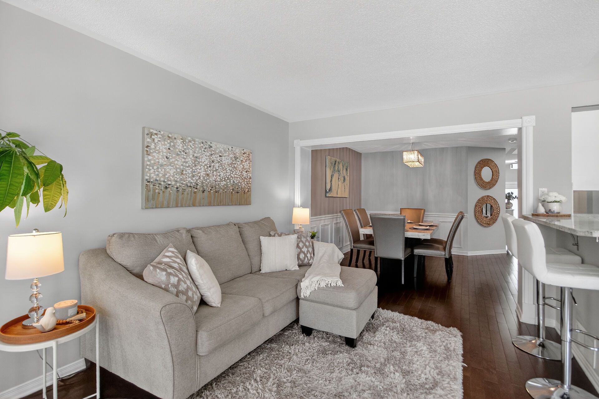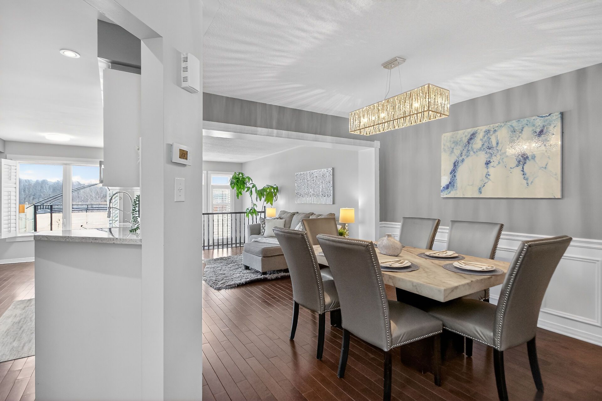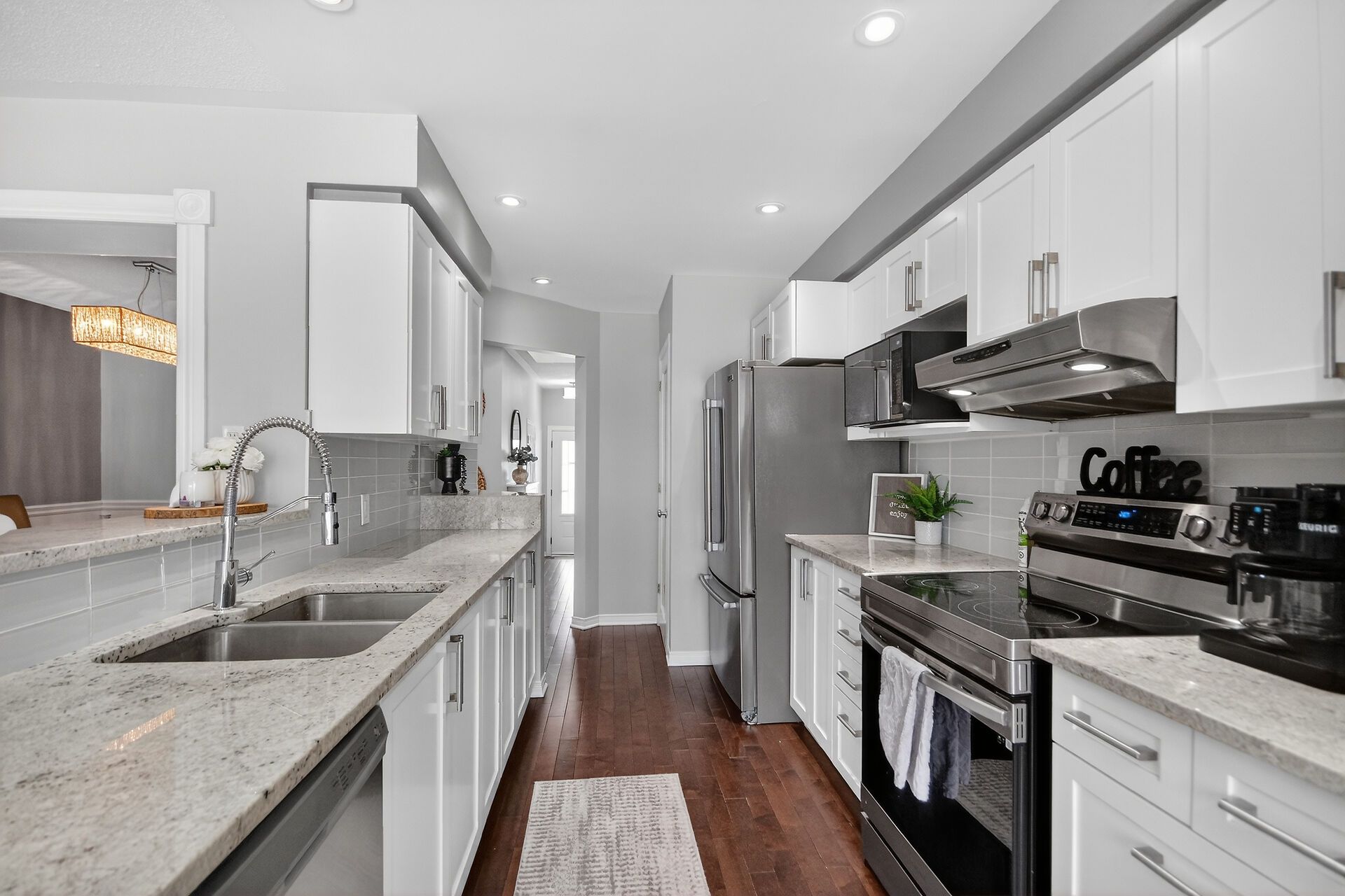 Enjoy inspirational lifestyle living in this luxurious end unit townhome with no rear neighbors nestled in the sought-after community of east village in orleans. Located minutes from high-rated schools, parks, shopping, and the renowned millennium sports park. This luxurious townhome combines comfort, space, and convenience is perfect for families or first-time buyers. No rear neighbors means added privacy and serene views, making this home stand out from the rest. Inside, you'll find luxurious finishes and spacious living spaces that features 3 good size bedrooms, 2 1/2 bathrooms, and a partially finished basement - ideal for modern family living. The main floor showcases hardwood flooring and a bright, inviting living space layout. The luxurious kitchen features a pantry and includes "rich" granite countertops, beautiful glass tile backsplash and a generous breakfast eat-in area to quietly enjoy breakfast while overlooking gorgeous views of the green space behind your backyard - the elegant dining room features beautiful decor and a luxurious modern light fixture - the living room features a large wall of bright windows overlooking the breathtaking green space at the back of the townhome. The second floor features sparkling new laminate/vinyl flooring - a primary bedroom retreat that features a bonus room great as a private office or private study, walk-in closet, and a private ensuite bathroom "oasis" that features a soaker tub & separate stand up shower plus 2 good size bedrooms. The partially finished basement boasts quality laminate flooring and offers ample room for a home theatre, playroom, or another home office. The good size backyard features no rear neighbors and a good size deck. Special highlights include new carpet in both stairways, new laminate/vinyl flooring on the 2nd floor, all windows including the front & back door have been replaced. Don't miss your chance to own this beautifully maintained, move-in ready luxurious townhome/flexible possession