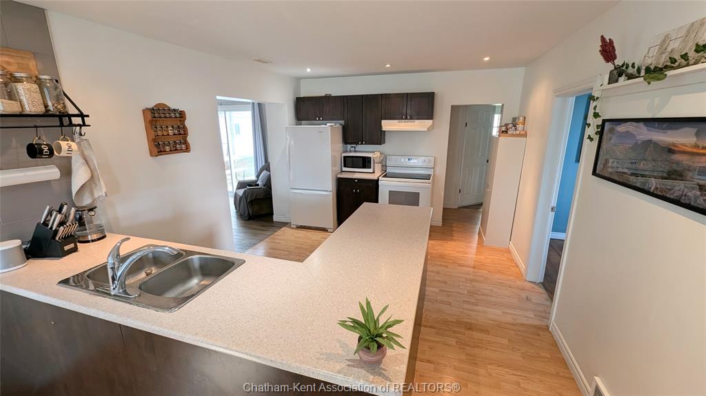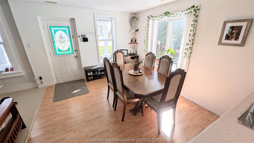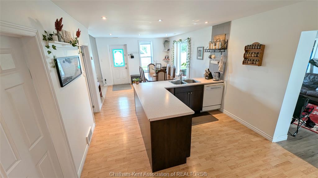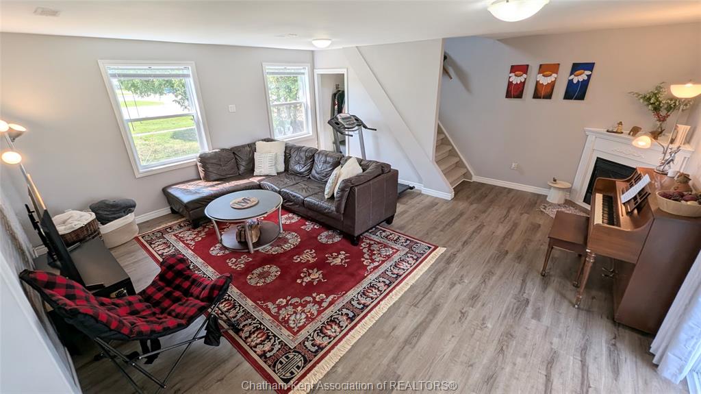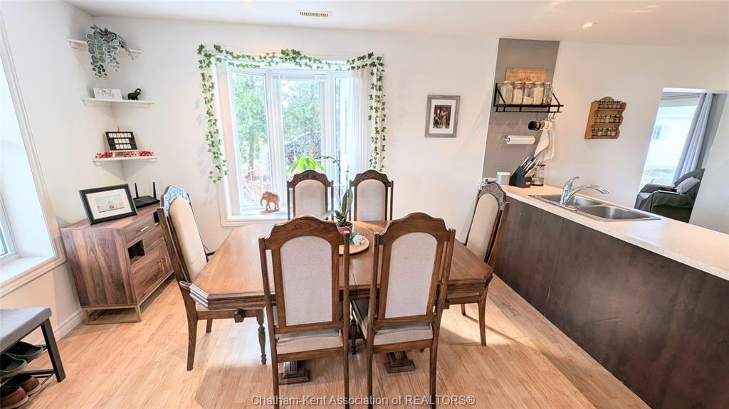 This spacious and updated 3+1 bedroom, 1 bathroom home in the quaint town of dresden offers a perfect blend of comfort and functionality for families of all sizes. The bright, open-concept kitchen, dining, and living areas create a warm, inviting space for everyday living and entertaining. A cozy rear family room features a gas fireplace and patio doors leading to the deck, overlooking a large, fully fenced backyard with pear and mulberry trees, plus cranberry bushes, ideal for kids, pets, and outdoor gatherings. A gas hookup on the deck makes bbq season easy. The main floor includes a bedroom, an additional office or optional fourth bedroom, laundry, and a spacious mudroom/storage area. Upstairs offers two generously sized bedrooms. This turnkey, move-in ready home has been well updated with a/c (2020), furnace (2016), roof on the main portion (2021), along with new flooring and fresh paint throughout. Ideally located within walking distance to dresden high school, burns restaurant, and a nearby bus stop, this home offers both convenience and a fantastic neighbourhood setting. Call today for your private showing.