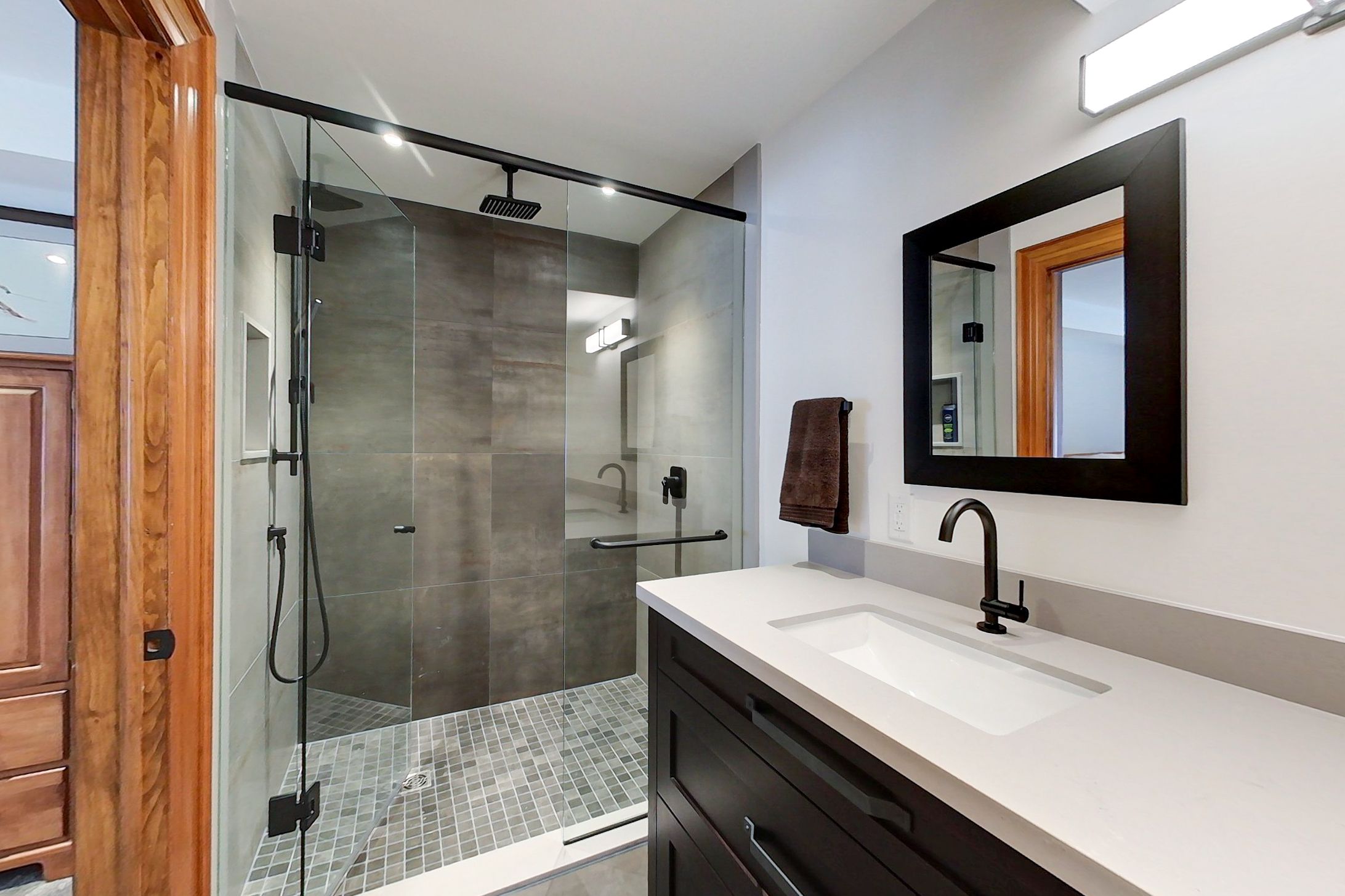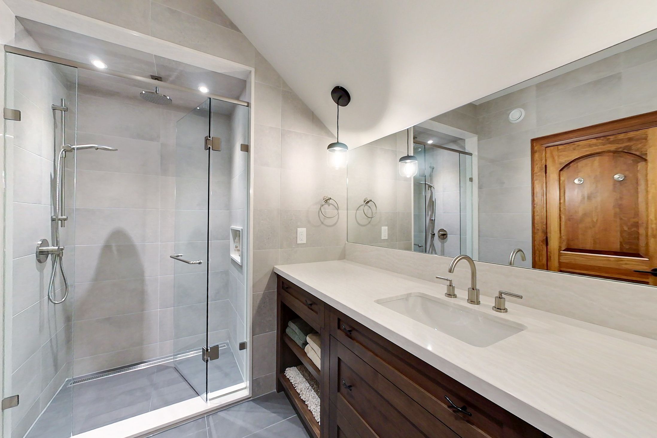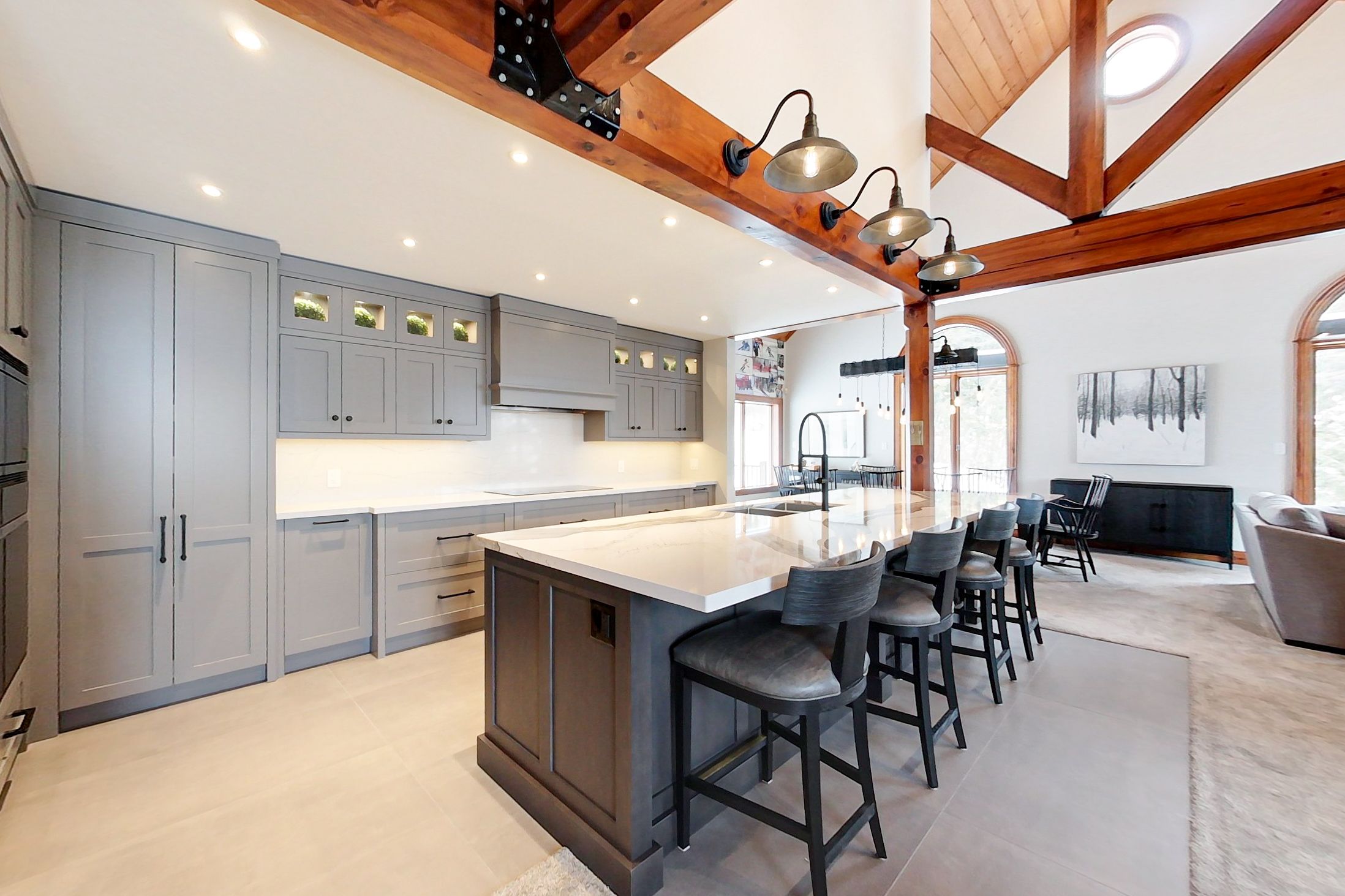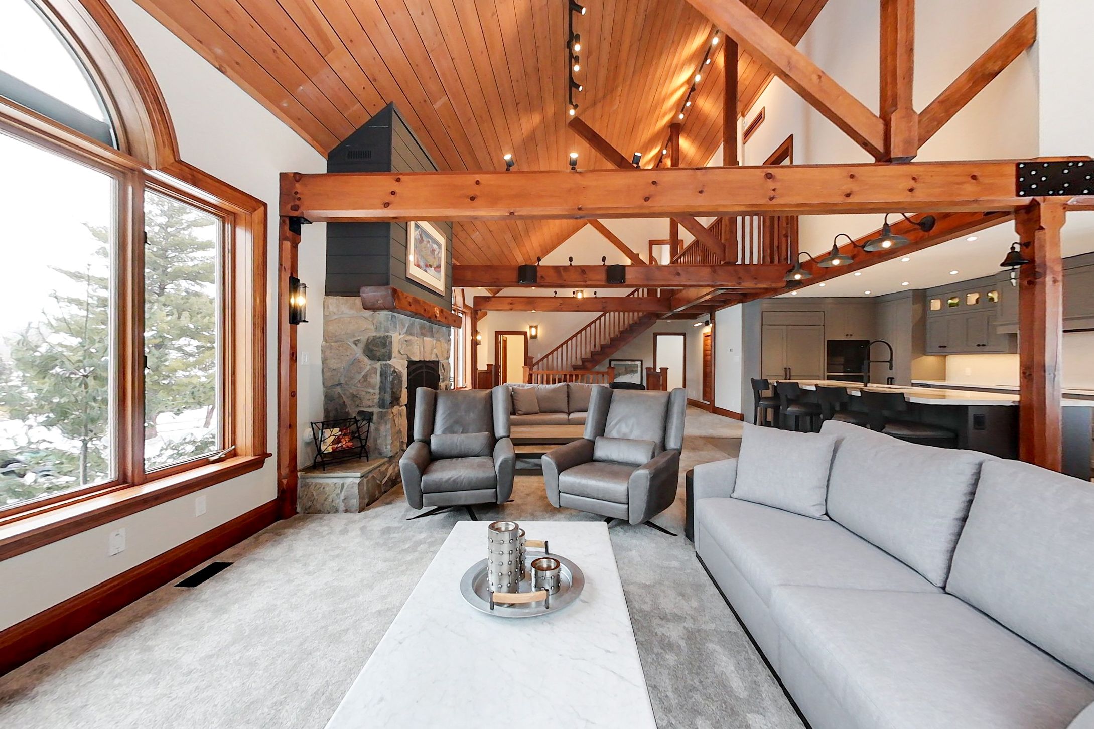 • Open concept living area with high vaulted ceilings for spaciousness.