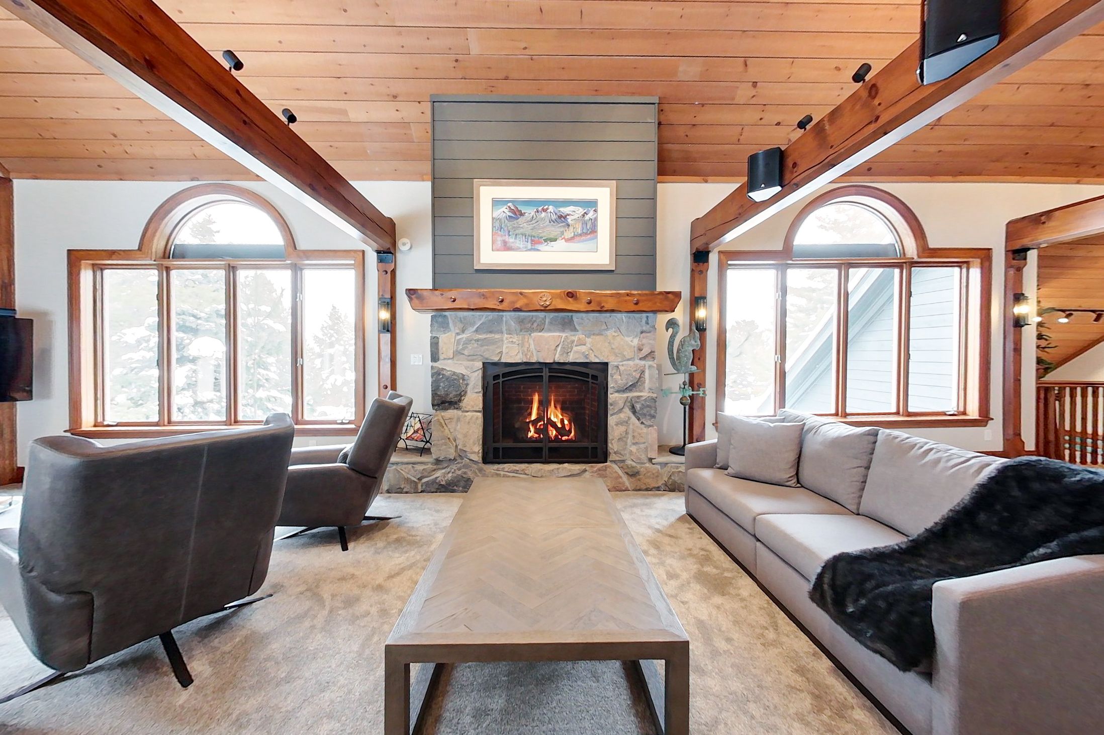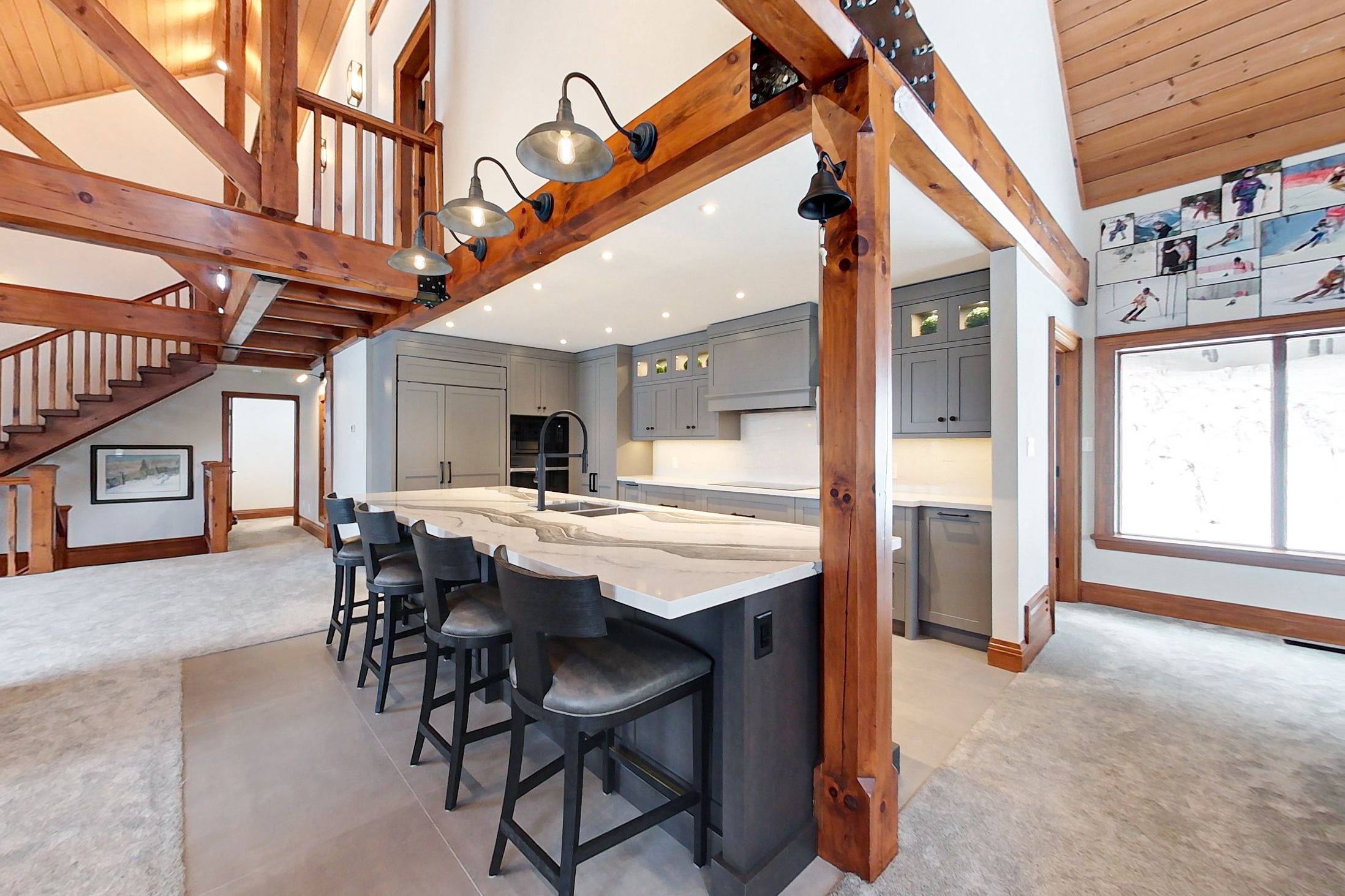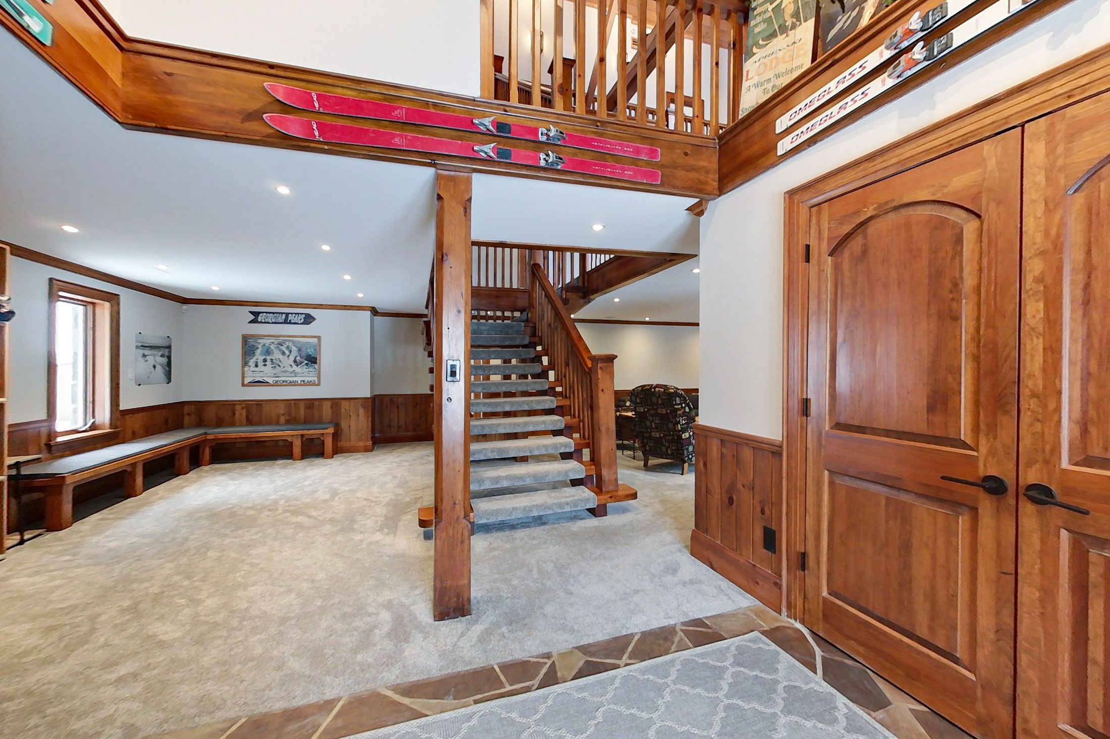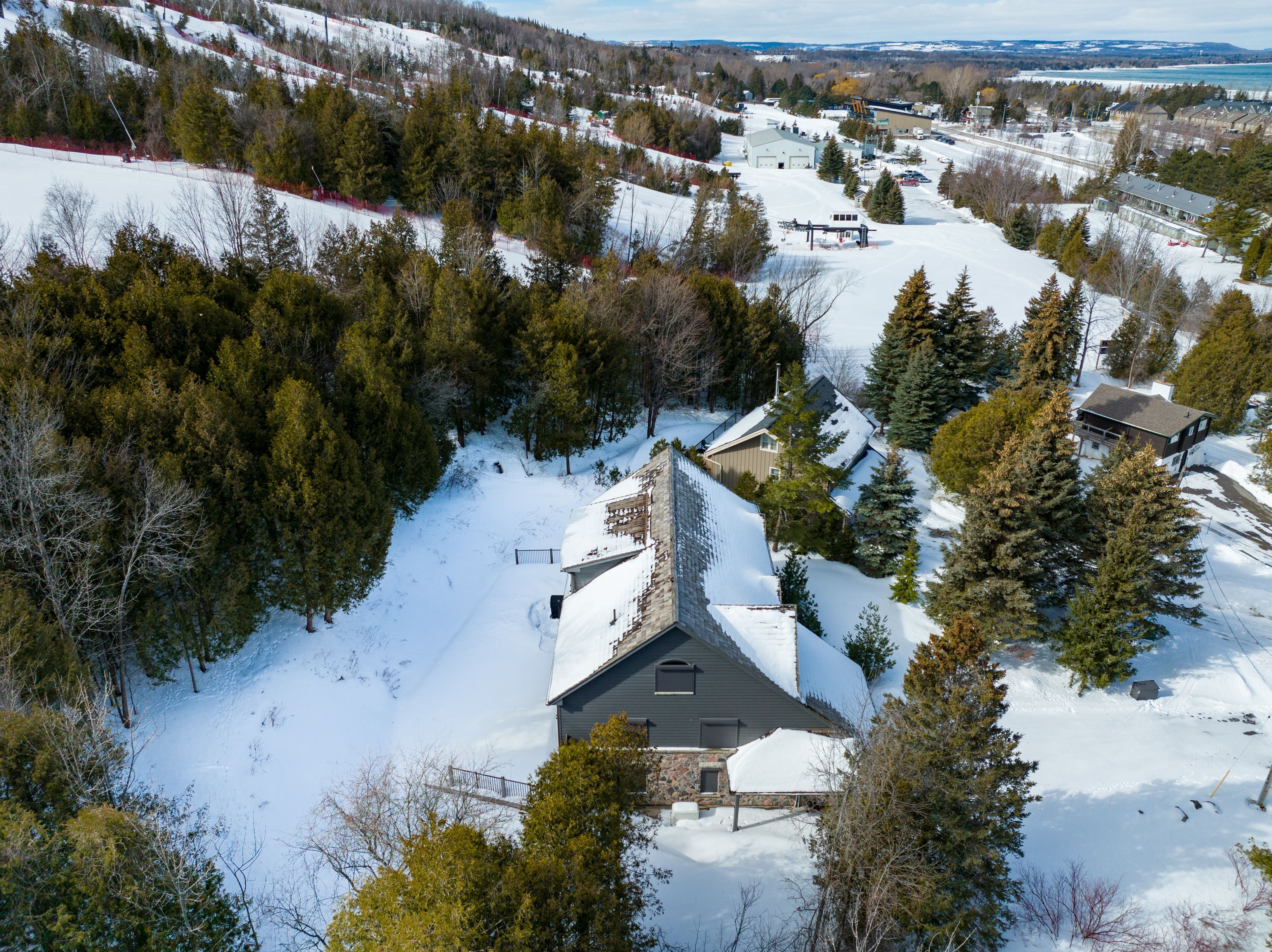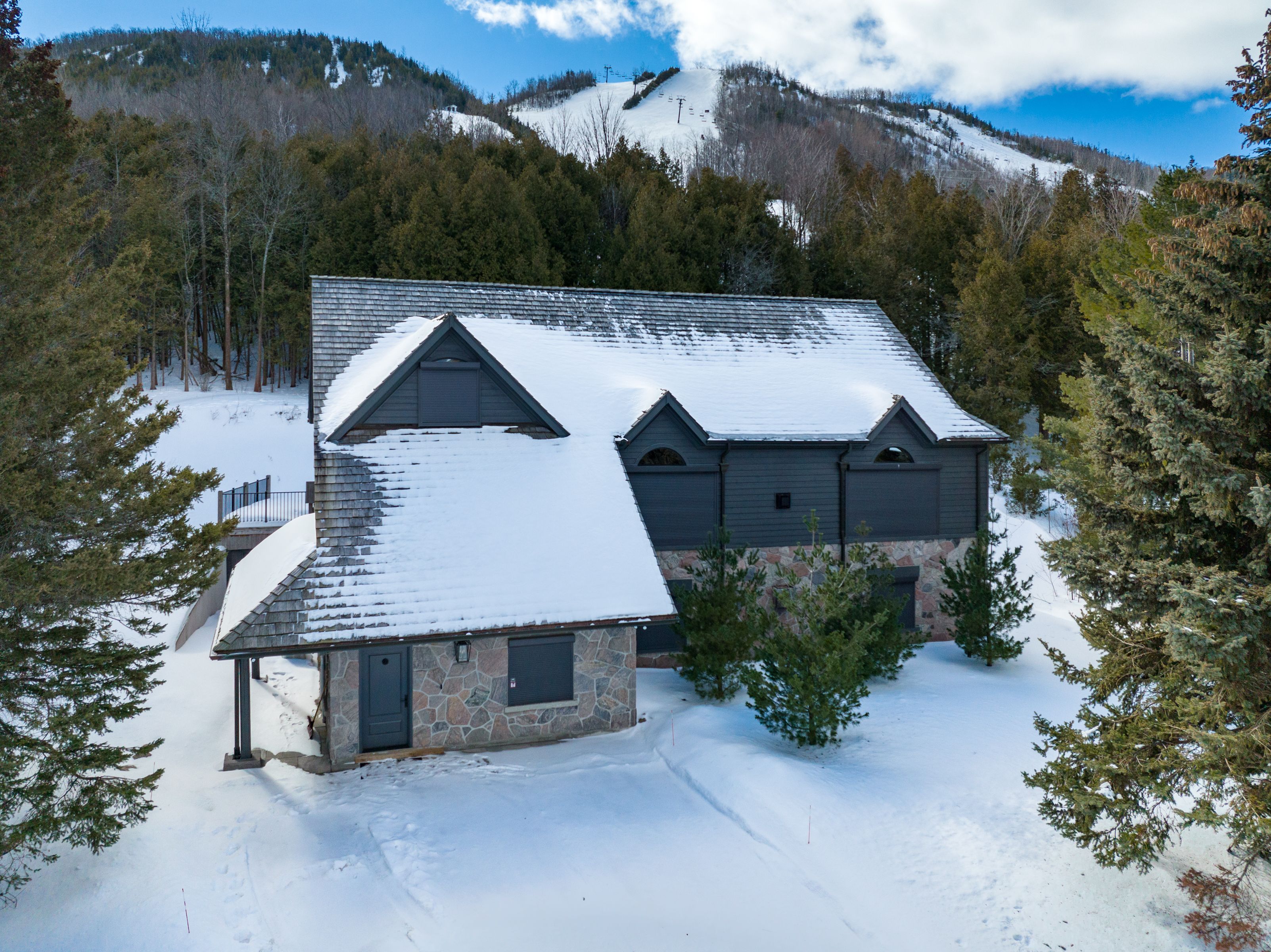 Georgian peaks ski in-ski out - stunning 5 bed 5. 5 bath home backing into the escarpment near the minute mile chair. Shows to perfection. Fully renovated in 2020, boasting a large open concept kitchen/dining/living room with high vaulted ceilings, perfect for entertaining. Everything about this offering is high end, being sold fully furnished, sub-zero, wolf appliances, quartz counters, two gas fireplaces, and four of the five bedrooms have ensuites. Large primary bedroom on the main area, a dedicated ski tuning room and an additional family room on the main floor perfect for kids and separation. Steps to skiing, hiking, biking, the georgian trail and just minutes to golf, georgian bay and all the areas amenities.