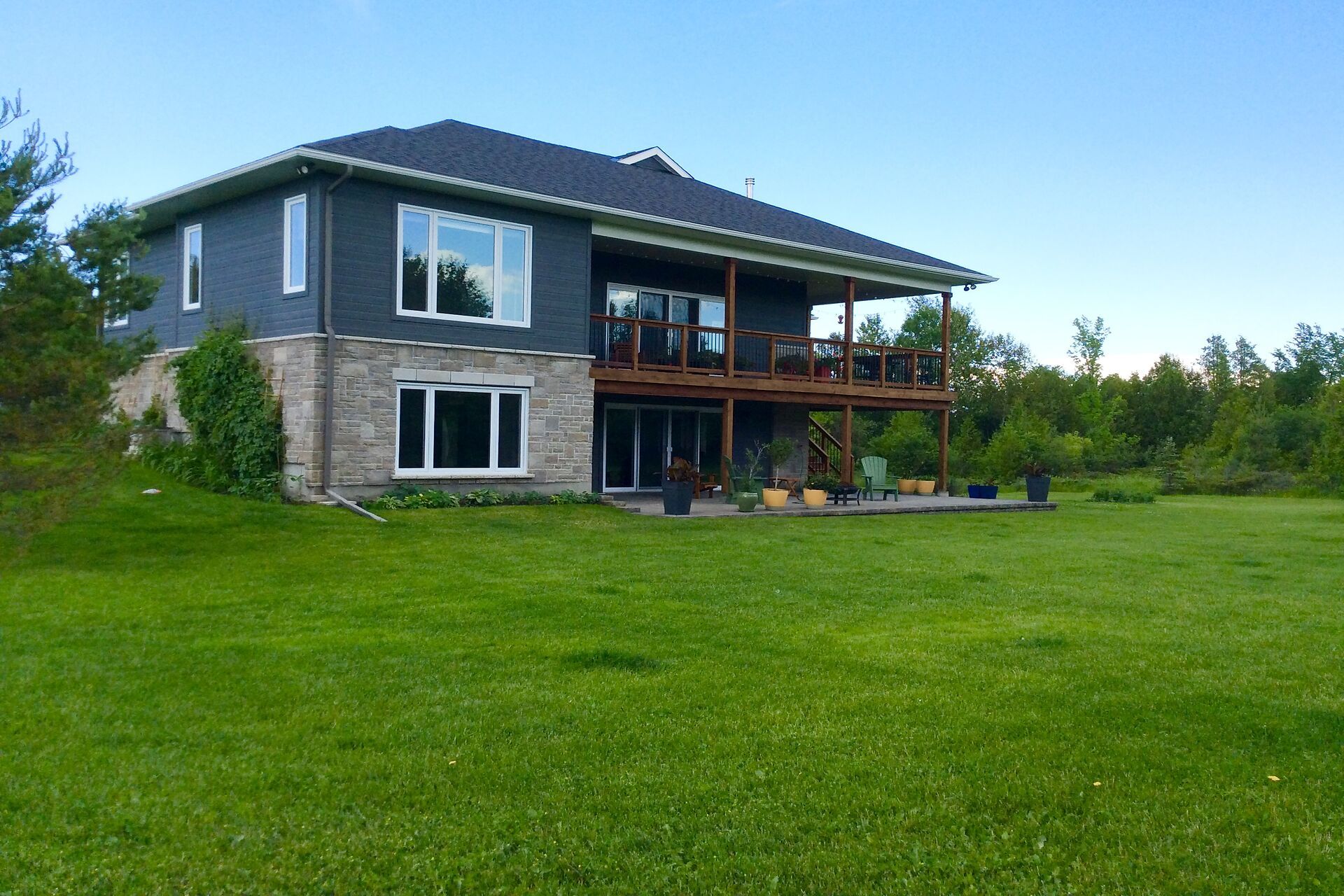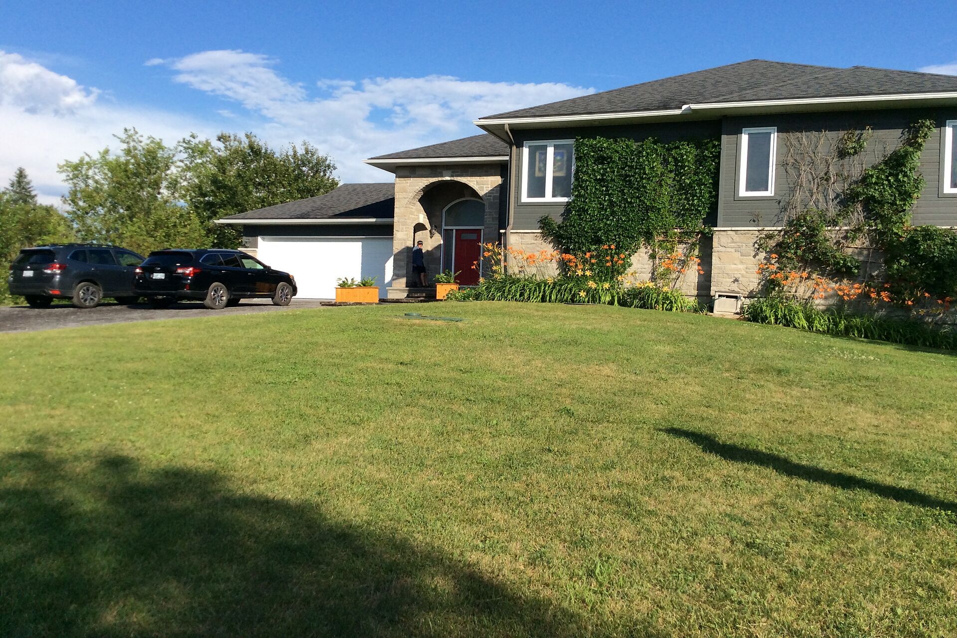 Welcome to an exceptional 2-acre estate backing directly onto greensmere golf club, offering rare privacy and premium outdoor living just minutes from kanata. This bright and beautifully updated and maintained 3-bed, 3 full bath home features a thoughtfully designed open-concept layout ideal for both everyday living and entertaining. The sun-filled main level showcases rich hardwood flooring throughout and a spacious living area anchored by a cozy gas fireplace. The chef inspired kitchen boasts stainless steel appliances, a gas stove, solid surface countertops, and generous prep and storage space. The fully finished walk-out basement expands your living space with direct access to the backyard oasis, perfect for multigenerational living, entertaining, or relaxing. Step outside and experience resort-style living at its finest. The private backyard features a heated in-ground saltwater pool, hot tub, gazebo, and covered porches that invite you to unwind and enjoy the peaceful surroundings. With no rear neighbours, the setting is both tranquil and picturesque. A large shed provides additional storage for tools, toys, and seasonal equipment. Located just 10 minutes from kanata's shopping, schools, dining, and tech corridor, this property offers the perfect balance of rural privacy and urban convenience.