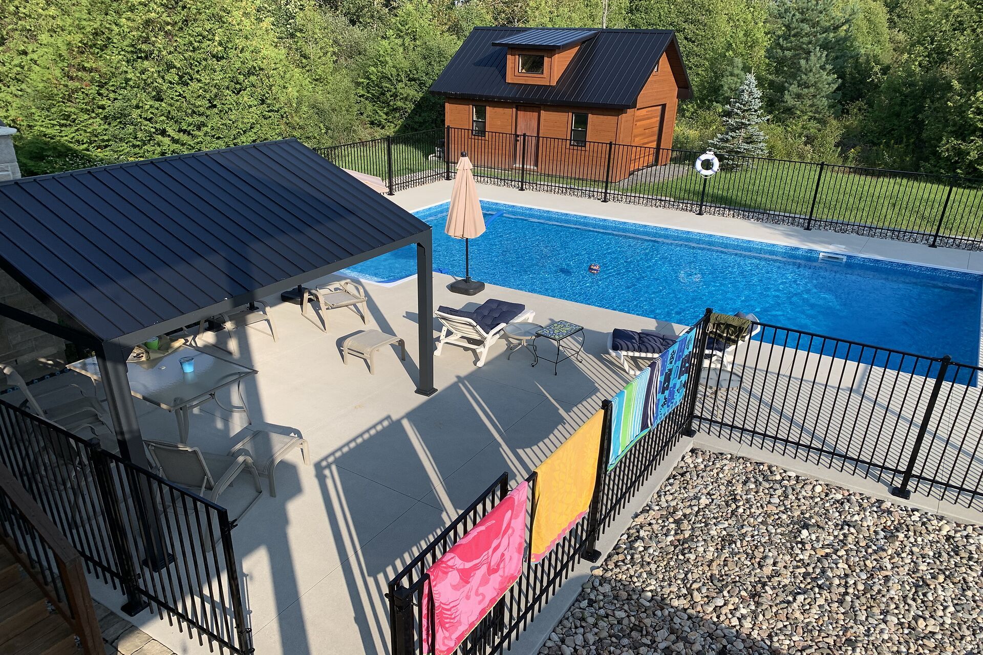 • Outdoor area features a heated saltwater pool, hot tub, and gazebo.