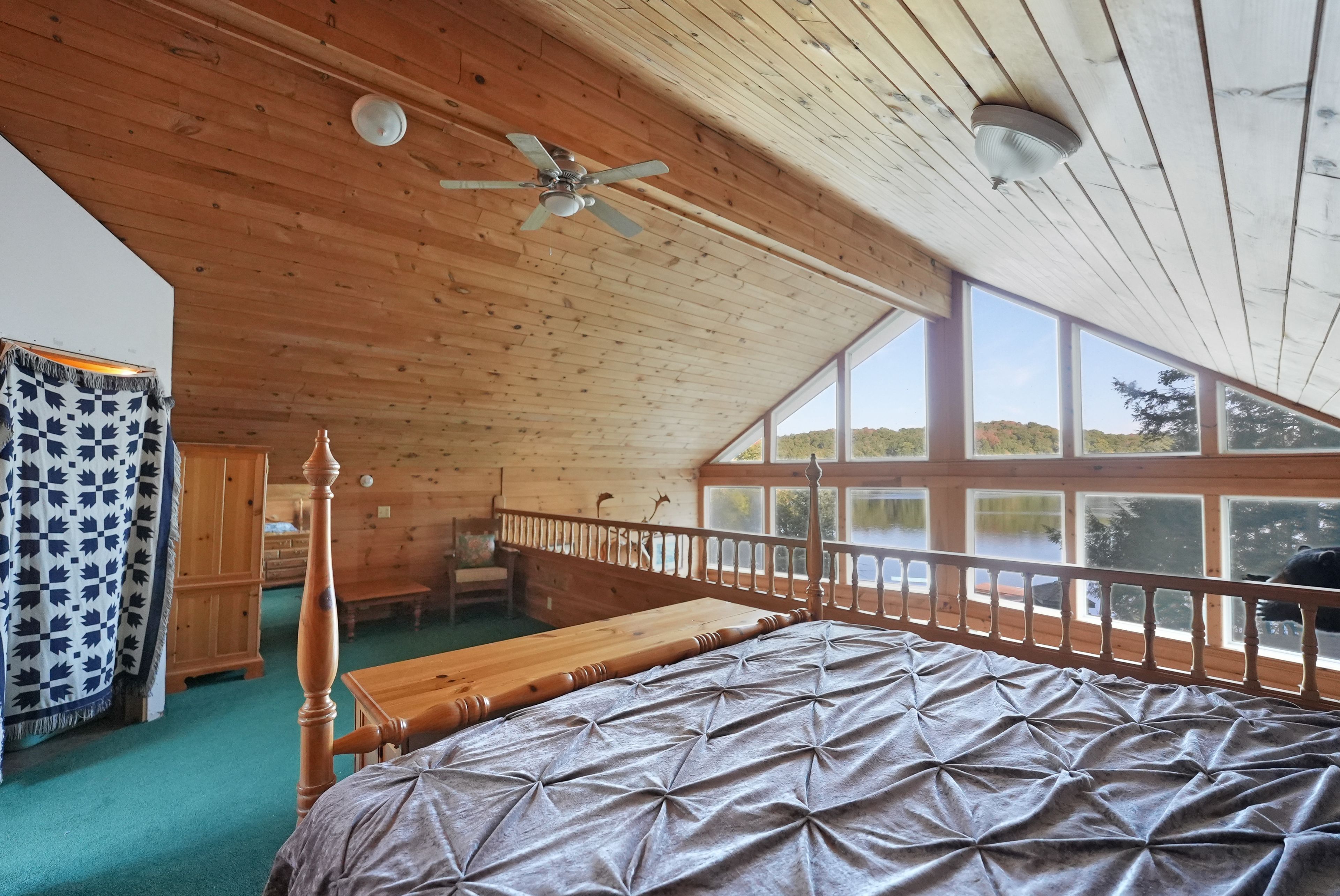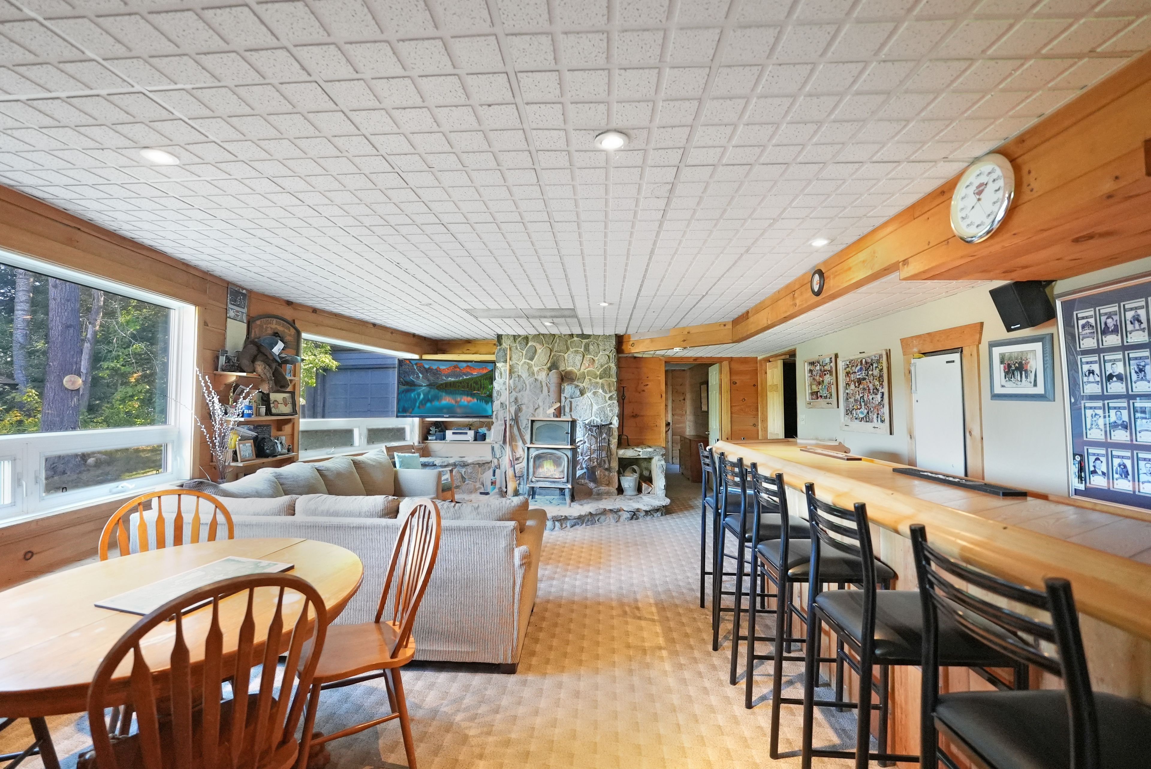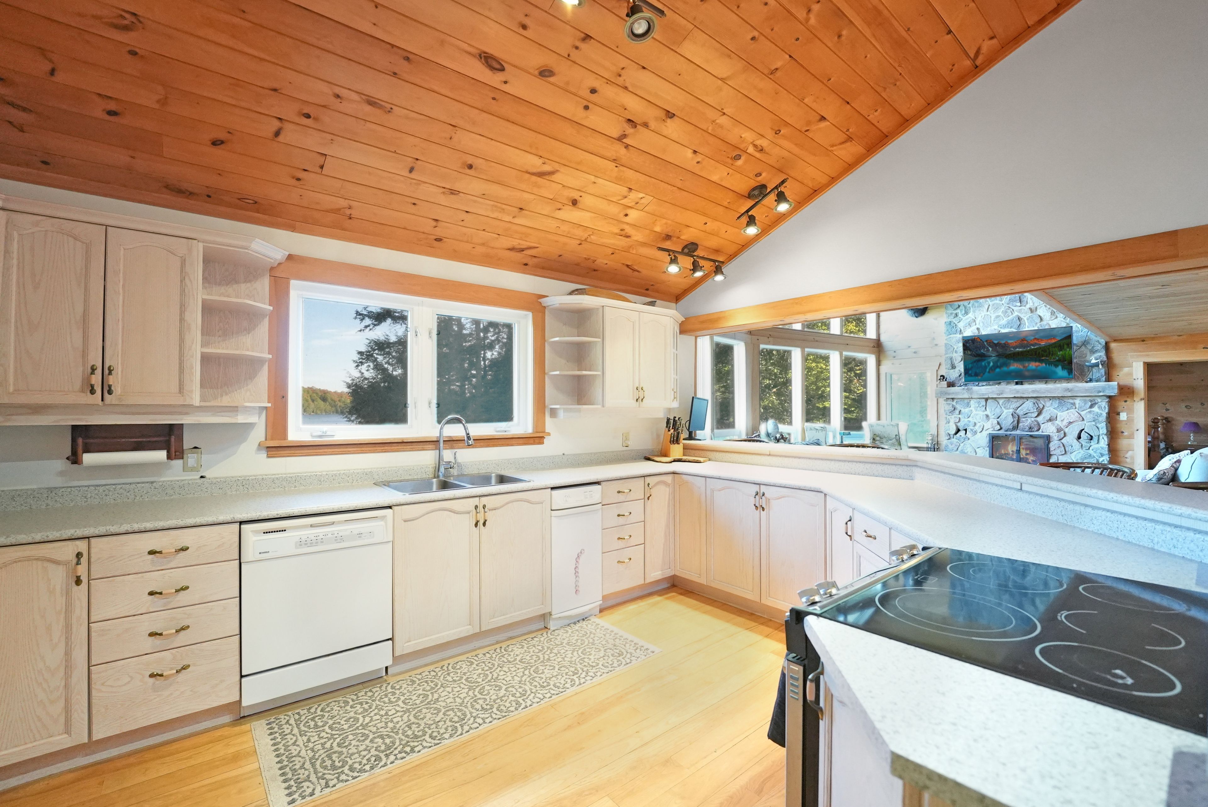 Private 4-bedroom cottage retreat with loft, waterfront & heated garage! Welcome to your dream cottage escape- a stunning, fully-equipped 4-bedroom getaway offering the perfect blend of rustic charm and comfort. Nestled on a private, gradual sloping lot with clean, deep water and a sandy beach area, this property is ideal for swimming, boating, and creating lifelong memories. Inside, you'll find three spacious levels of living space, including a cozy loft area, perfect for reading, relaxing, or extra guest space. The bright, open-concept living room features large windows that flood the space with natural light and a beautiful stone fireplace to gather around on cool evenings. Enjoy indoor-outdoor living in the expansive sunroom, perfect for dining or relaxing while surrounded by nature. The fully finished basement offers a large recreation room complete with a pool table and wet bar - an entertainers dream! =bonus features include a massive 32 x 32 heated garage with loft space above, ideal for storage, a workshop, or a place to park your toys! Whether you're seeking a peaceful family retreat or a year-round home/cottage, this property checks all the boxes!