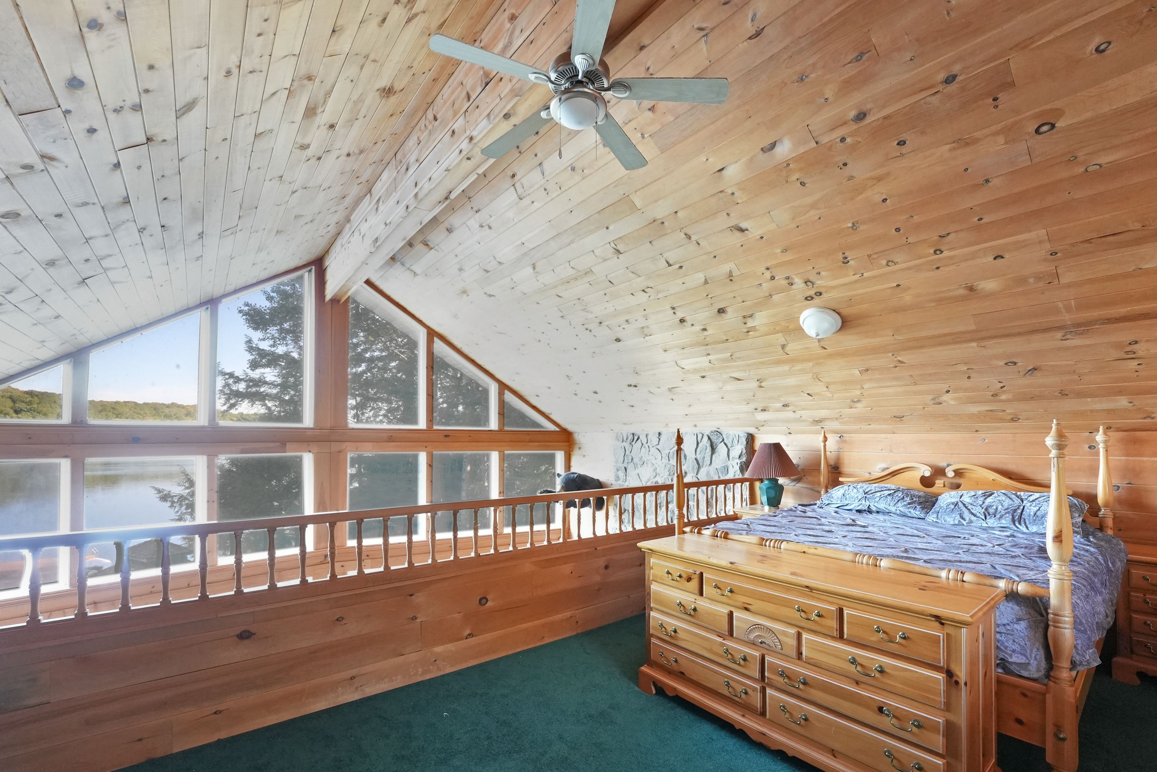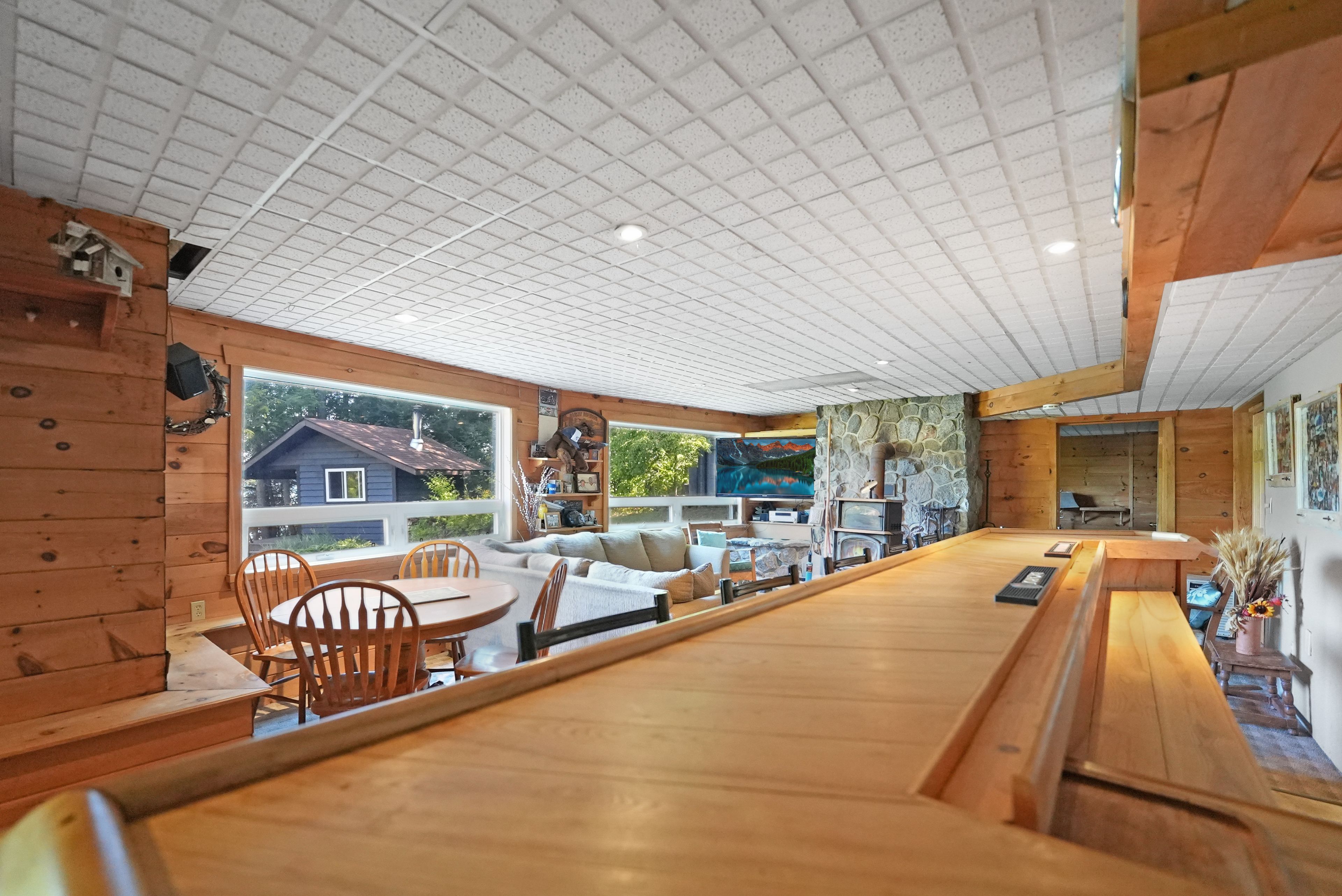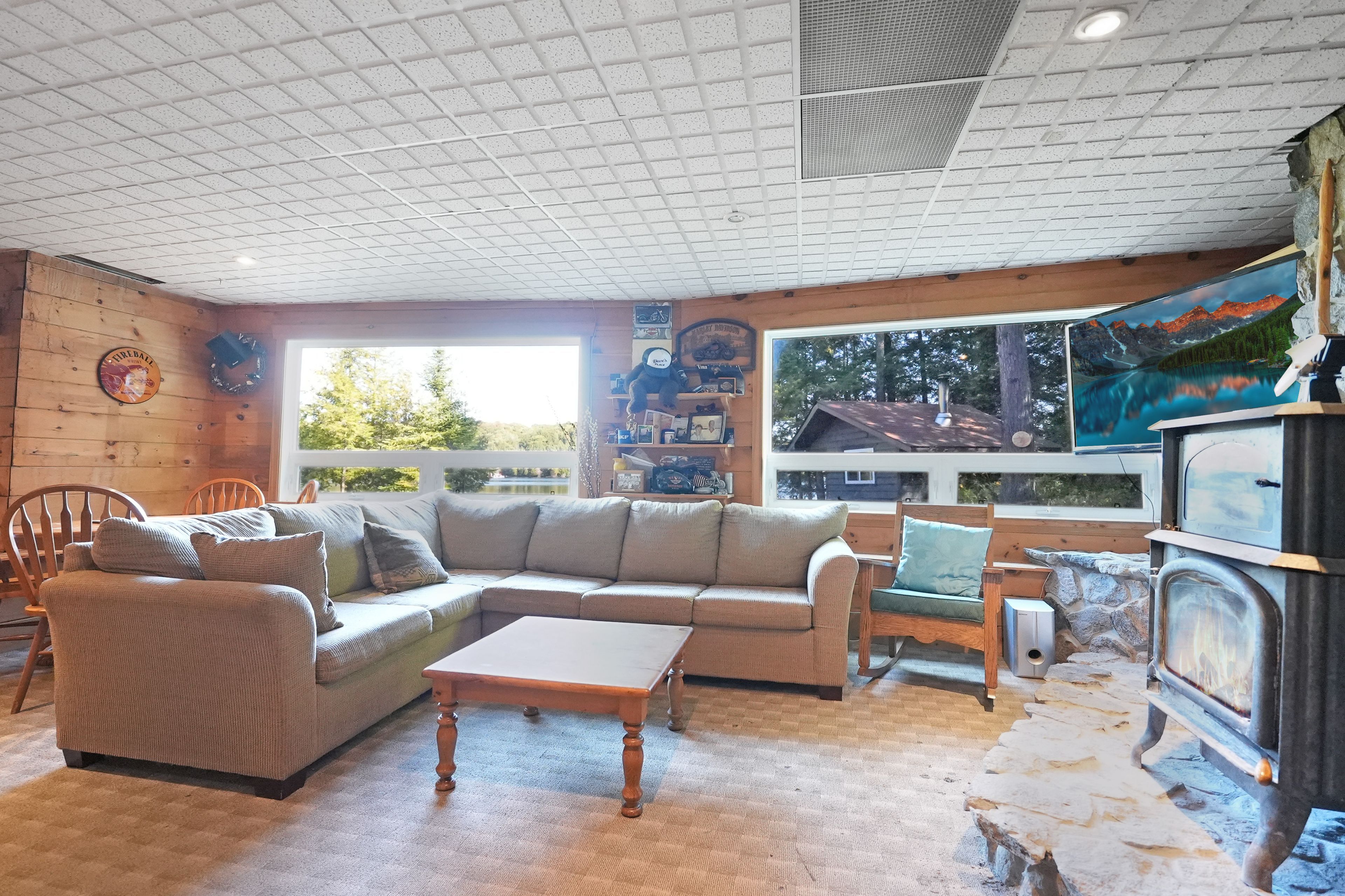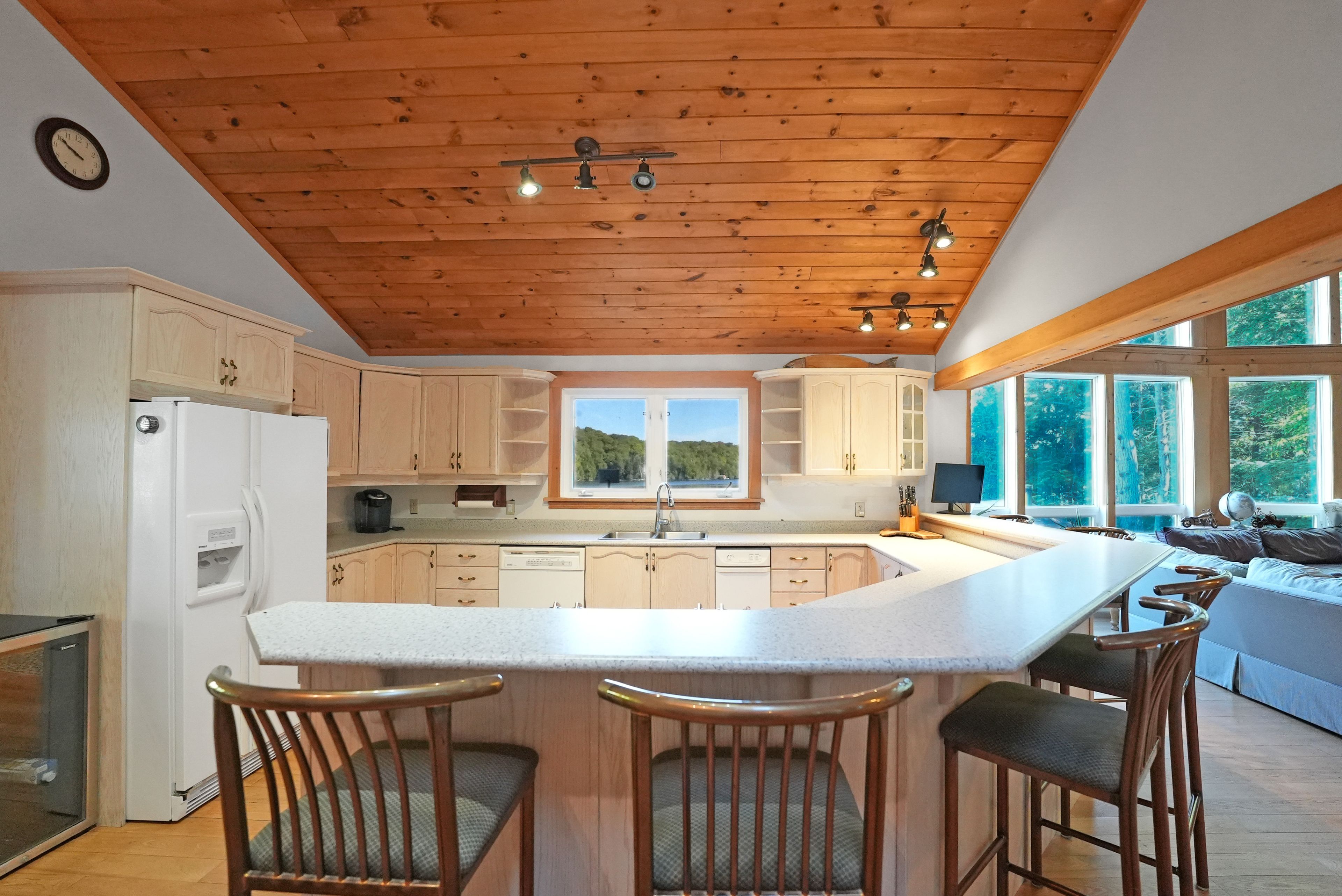 Private 4-bedroom cottage retreat with loft, waterfront & heated garage! Welcome to your dream cottage escape- a stunning, fully-equipped 4-bedroom getaway offering the perfect blend of rustic charm and comfort. Nestled on a private, gradual sloping lot with clean, deep water and a sandy beach area, this property is ideal for swimming, boating, and creating lifelong memories. Inside, you'll find three spacious levels of living space, including a cozy loft area, perfect for reading, relaxing, or extra guest space. The bright, open-concept living room features large windows that flood the space with natural light and a beautiful stone fireplace to gather around on cool evenings. Enjoy indoor-outdoor living in the expansive sunroom, perfect for dining or relaxing while surrounded by nature. The fully finished basement offers a large recreation room complete with a pool table and wet bar - an entertainers dream! =bonus features include a massive 32 x 32 heated garage with loft space above, ideal for storage, a workshop, or a place to park your toys! Whether you're seeking a peaceful family retreat or a year-round home/cottage, this property checks all the boxes!