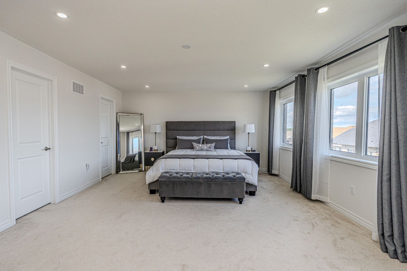 Elegant family home showcasing a designer kitchen, a spa-like primary suite, premium upgrades, & over 3,400 sq ft of style! Discover refined living in this exceptional home, perfectly situated in a desirable neighbourhood on a quiet court within walking distance of schools and parks. Just minutes from lake simcoe, big cedar golf and country club, and the vibrant amenities of innisfil beach road, this home offers an unparalleled lifestyle of convenience and luxury. The impressive exterior opens to a backyard with a rough-in bbq gas line, and ample green space ideal for relaxation and entertaining. A tandem 3-car garage with an ev charging port and extended driveway parking provides unmatched practicality. Inside, the main floor boasts white oak hardwood floors and a bright open-concept layout with a modern eat-in kitchen and living room with a gas fireplace, a walkout to the backyard, a formal dining room, and a versatile bedroom that easily converts to an office if needed. The designer kitchen elevates everyday living with quartz countertops and slab backsplash, a large island, a custom range hood, crown moulding, upgraded tile flooring, and soft-close cabinetry. A hardwood staircase with sleek black steel spindles adds timeless character and leads to 4 spacious upper-level bedrooms - including a primary suite with 2 walk-in closets and a spa-inspired ensuite featuring a quartz double vanity, a soaker tub, upgraded tiling, and a frameless steam shower with a quartz seat and digital controls. A second bedroom offers its own 4-piece ensuite, while the remaining bedrooms share a generous 5-piece bath. The basement with a bathroom rough-in presents endless opportunities for customization, and the home is further distinguished by pot lights throughout, a 200-amp panel, and an array of premium builder upgrades. Elevate your lifestyle with this extraordinary #hometostay, offering the ultimate combination of elegance, comfort, and everyday ease.