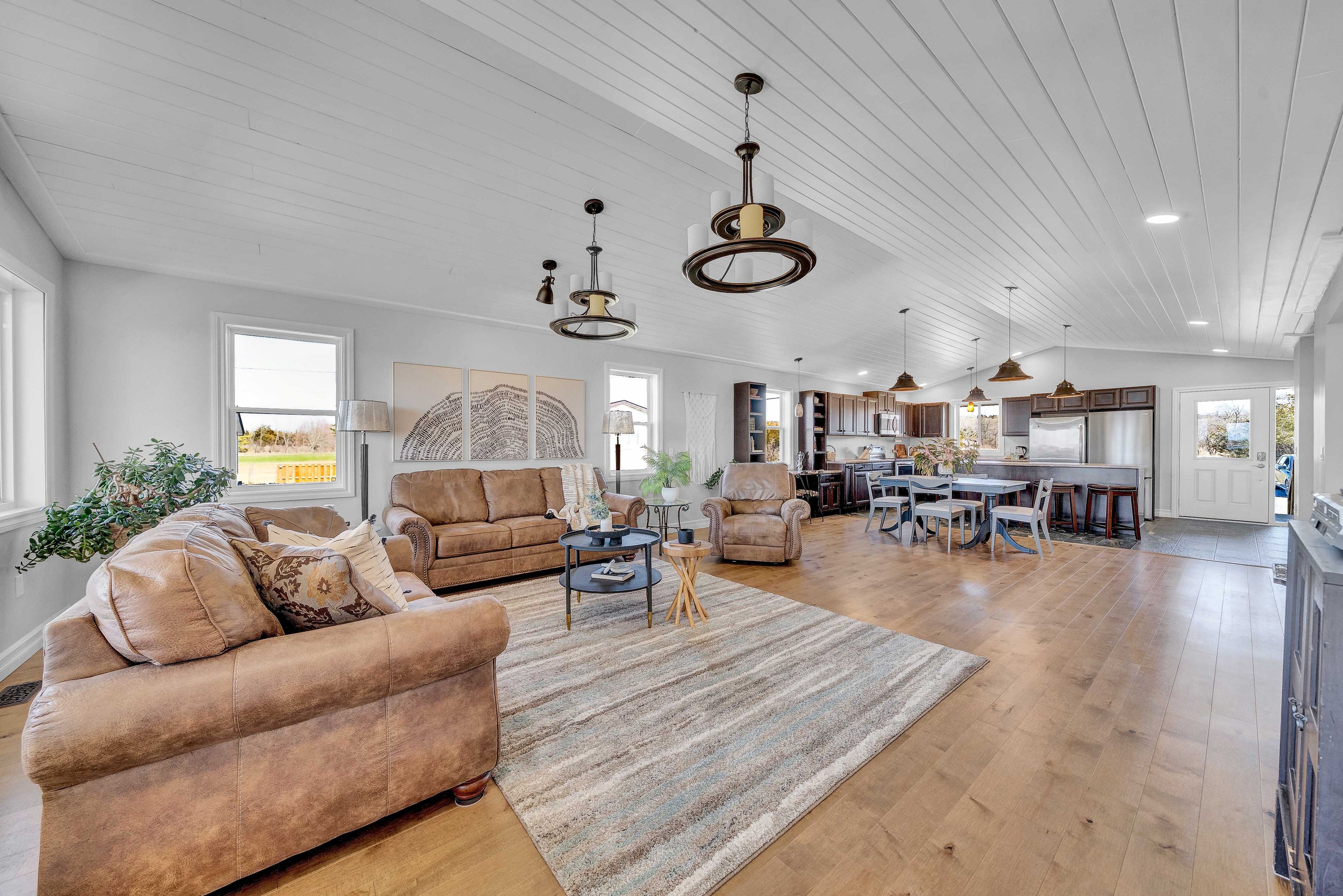Fall in love with this turn key prince edward county gem! Life at 1649 county road 15 provides the beautyof waterside living with stunning views and deeded water access as well as the financial benefit of anincome generating legal basement apartment. This professionally designed bungalow offers 2 bedroomswith den and 2 bathrooms plus laundry on the main floor and also boasts a legal 1 bed/1 bath lower levelapartment. Our top 6 things we love about this home are one: generous open concept design with tongueand groove vaulted ceilings. Two: custom kitchen with thoughtful pull outs and oversized island. Three:large covered back deck with panoramic water views of the beautiful bay of quinte. Four: flex room thatprovides options for a studio, home office, gym or playroom. Five: incredible primary suite with walk incloset and full spa bathroom with freestanding tub. Six: the income generating 2nd unit with privatedriveway and separate entry. Premium fixtures and fittings, and durable engineered hardwood androomshistoryporcelain tile floors promise years of worry free living. The cherry on top40 foot deeded water accessallowing you to enjoy a true waterfront lifestyle without the waterfront price.