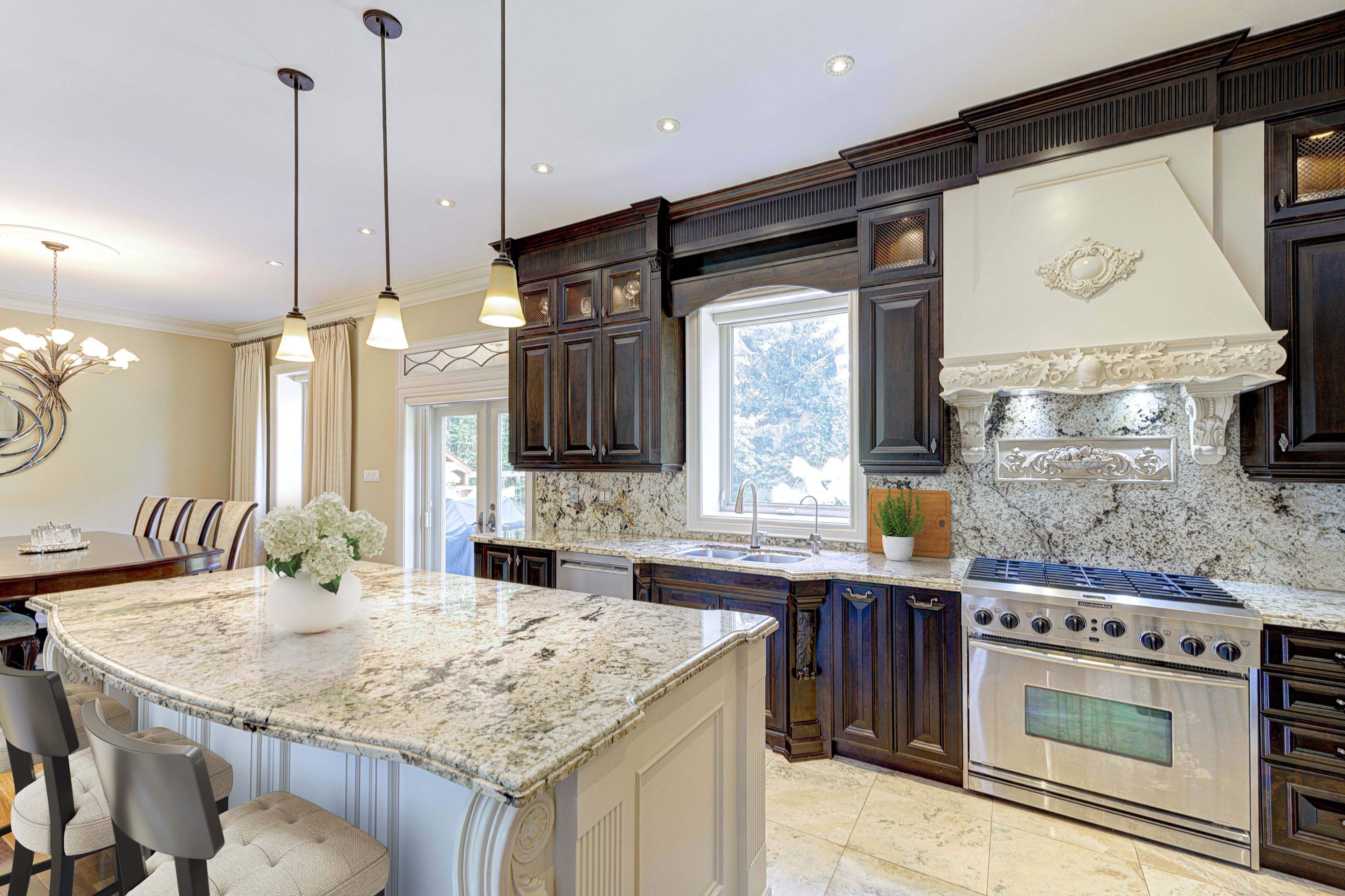 • Gourmet kitchen featuring solid maple cabinetry and a large center island.