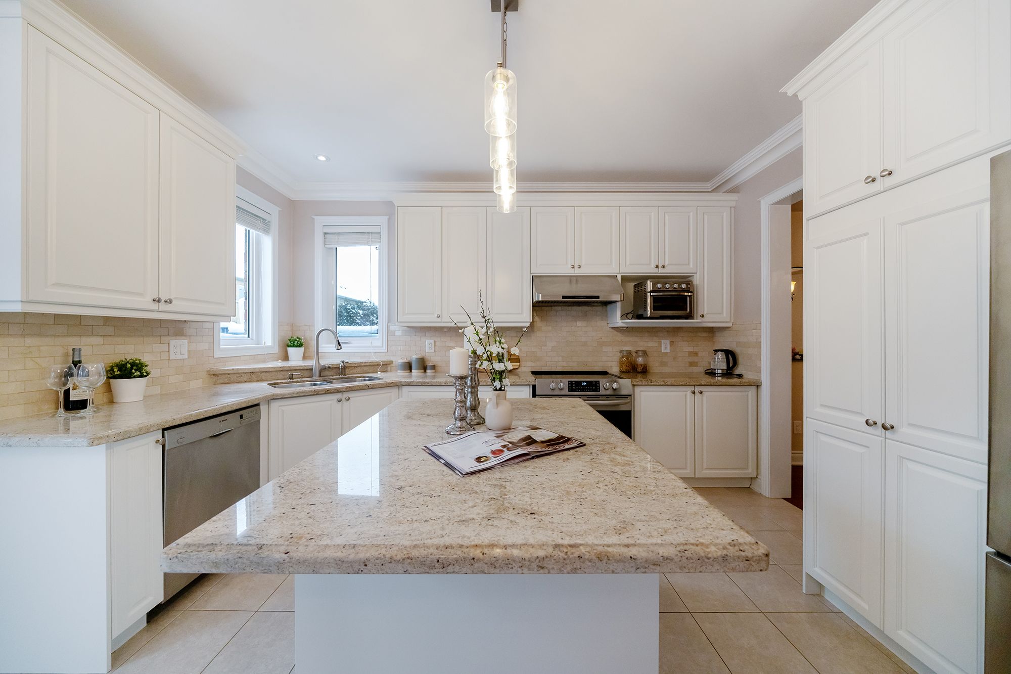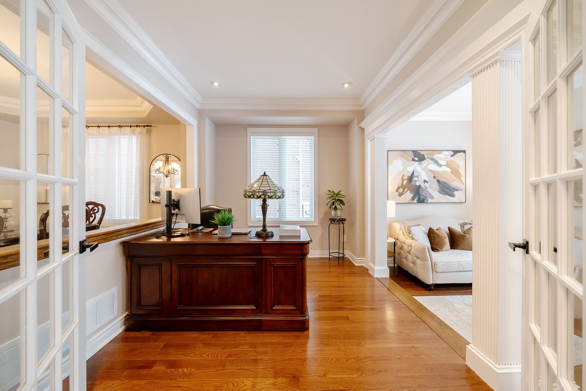 Stunning rosehaven-built freestone model located in the highly sought-after lakeshore woods community, offering an exceptional blend of luxury, space, & lifestyle steps from parks & minutes to lake ontario. A short six-minute drive to bronte harbour & vibrant bronte village with its boutique shops, restaurants, & ideal for commuters, with quick access to the qew/403. This elegant home boasts outstanding curb appeal with a stucco facade, stone skirting, copper-clad roof detail, palladian windows, & professional landscaping, including an updated (2023) patterned concrete walkway & double driveway with parking for 4 cars. The fully fenced backyard features a large deck with a gazebo & a stone lower patio, perfect for outdoor entertaining. Offering approximately 3,148 sq. Ft. Of refined living space plus a professionally finished basement (2023), the home includes 4 bedrooms, 4. 5 bathrooms, & numerous updates such as a new furnace & heat pump, custom palladian window blinds (2023), & refinished kitchen cabinetry (2025). The interior highlights 9 & 10-foot ceilings, hardwood floors, decorative columns, & an impressive oak staircase on the main floor, & deep crown mouldings throughout. The functional layout features a private living room, a formal dining room with a tray ceiling, an expansive family room with a gas fireplace, a bright eat-in kitchen with white cabinetry, under-cabinet lighting, an island, granite countertops, stainless steel appliances, & a walkout to the backyard. A main-floor library, powder room, & laundry with inside garage access add convenience. Upstairs offers 4 spacious bedrooms & 3 full bathrooms, including a luxurious primary suite with a 5-piece ensuite featuring a soaker tub & glass shower. The finished lower level (2023) includes a massive recreation room, wet bar with fridge & dishwasher, open-concept office area, & a full bathroom-perfect for entertaining, extended family, or work-from-home flexibility.