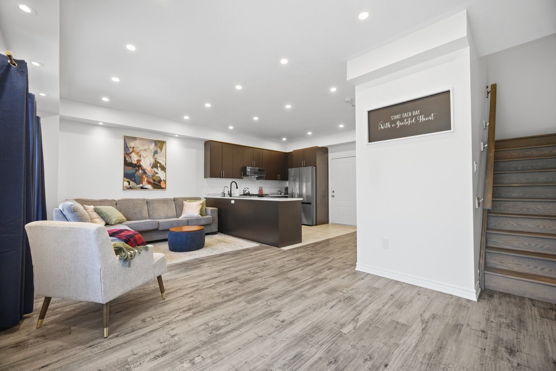 Welcome to 165 berkshire, a beautiful townhome tucked away on a quiet, secluded street in the charming village of arthur. The main floor offers a modern open-concept design with stylish finishes, a convenient powder room, and a bright eat-in kitchen featuring stainless steel appliances, including a natural gas stove. (all appliances june 2022). Vinyl flooring runs throughout the home, complemented by pot lights on both levels for a warm, modern feel. A water purifier system adds extra everyday convenience. Upstairs, you'll find 3 generously sized bedrooms, including an oversized primary suite with a walk-in closet and 4-piece ensuite bath, creating the perfect retreat to relax and unwind. The full unspoiled basement includes a rough-in for a future bathroom, offering endless potential for added living space, a rec room, or guest suite. Additional updates include a new a/c unit replaced in 2024, giving peace of mind for years to come. Enjoy the charm of small-town living in arthur with all amenities nearby and an easy scenic drive to the gta, kitchener-waterloo, and guelph.