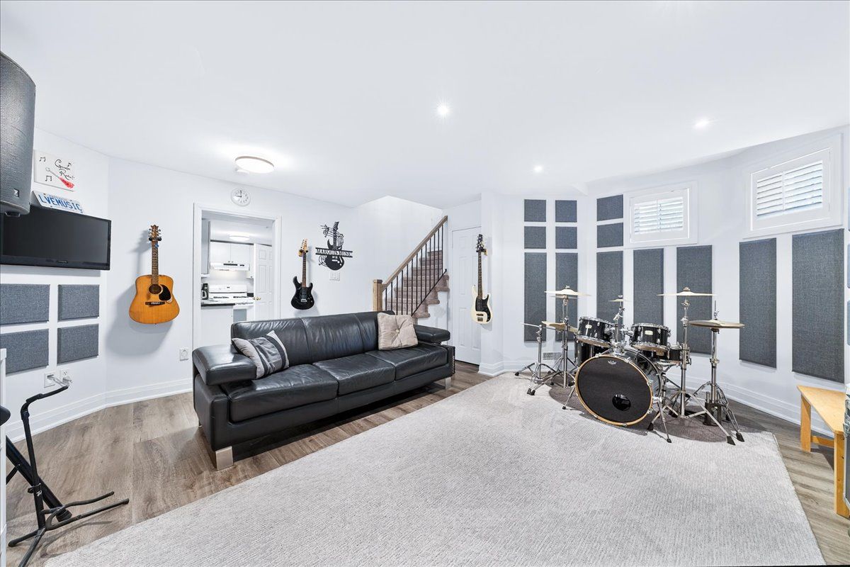 • Bright, builder-finished basement with above-grade windows and functional layout.