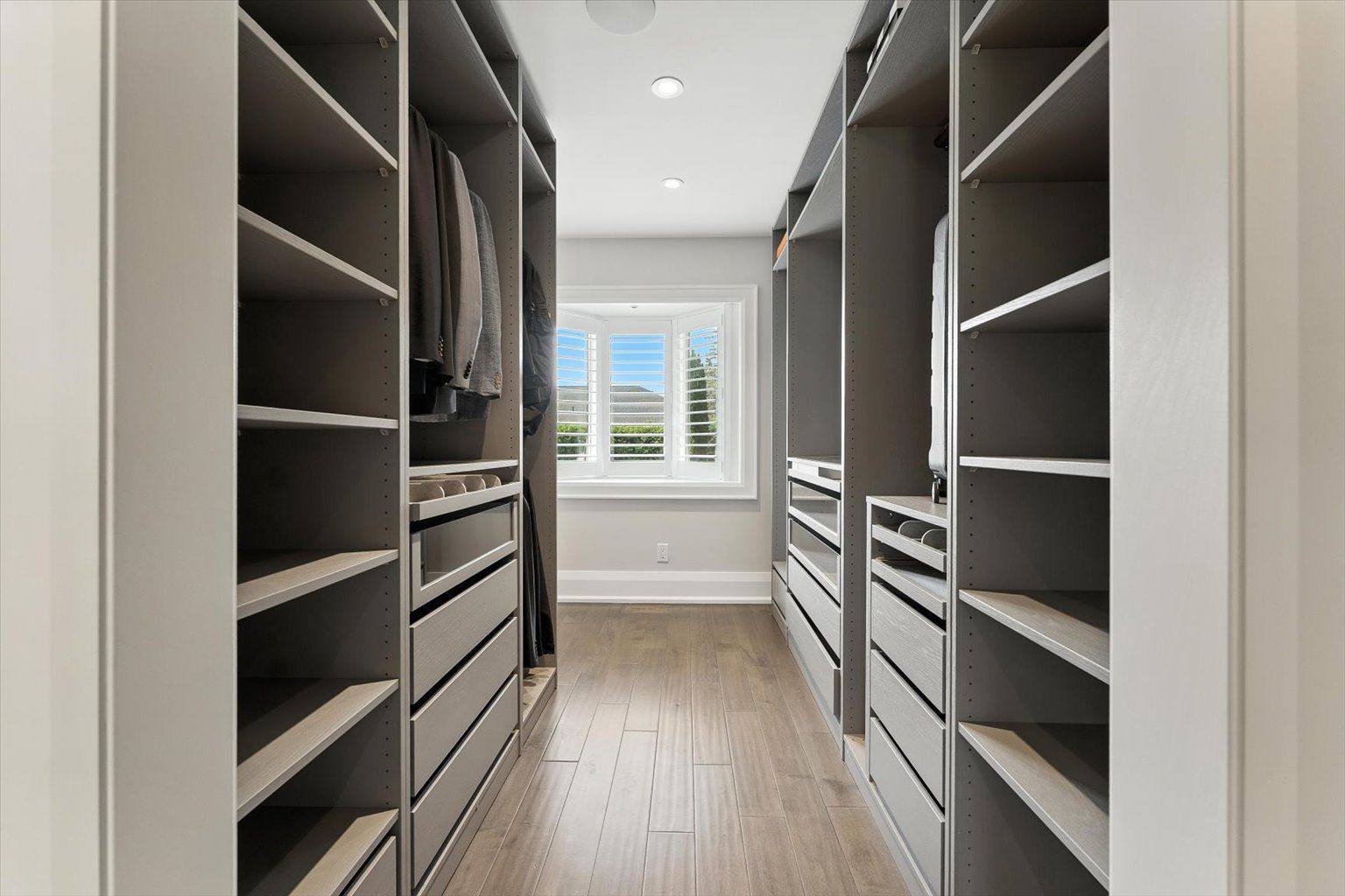 • Spacious primary bedroom with custom walk-in closet and heated floors.