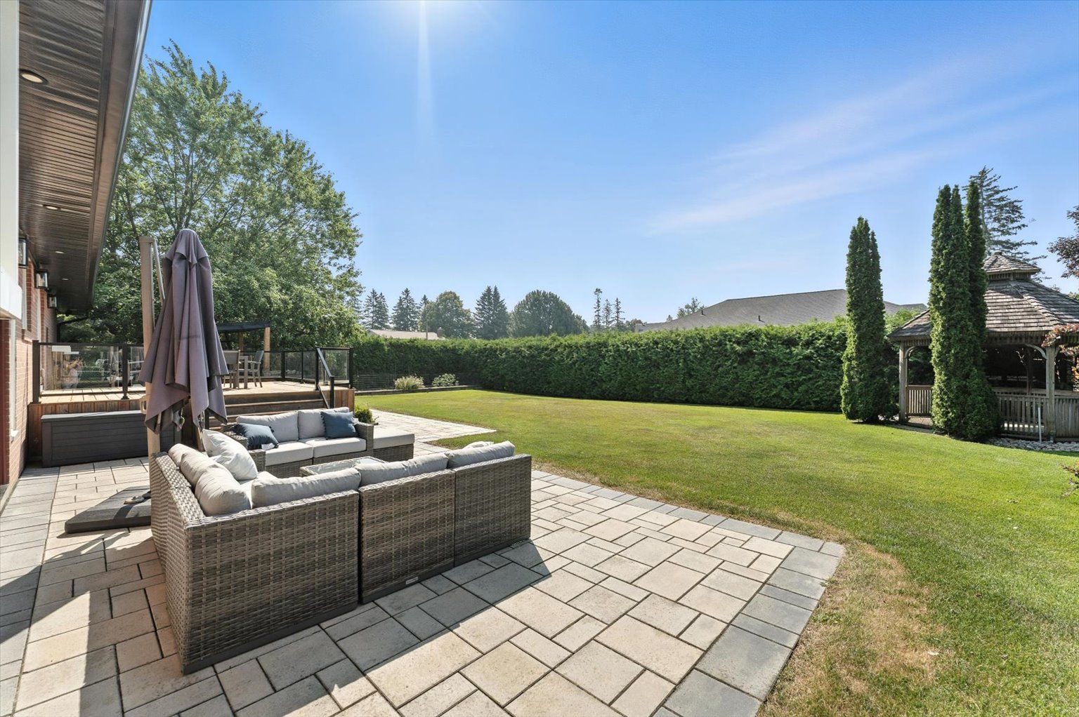 • Private backyard with a large cedar deck, gazebo, and beautiful landscaping.