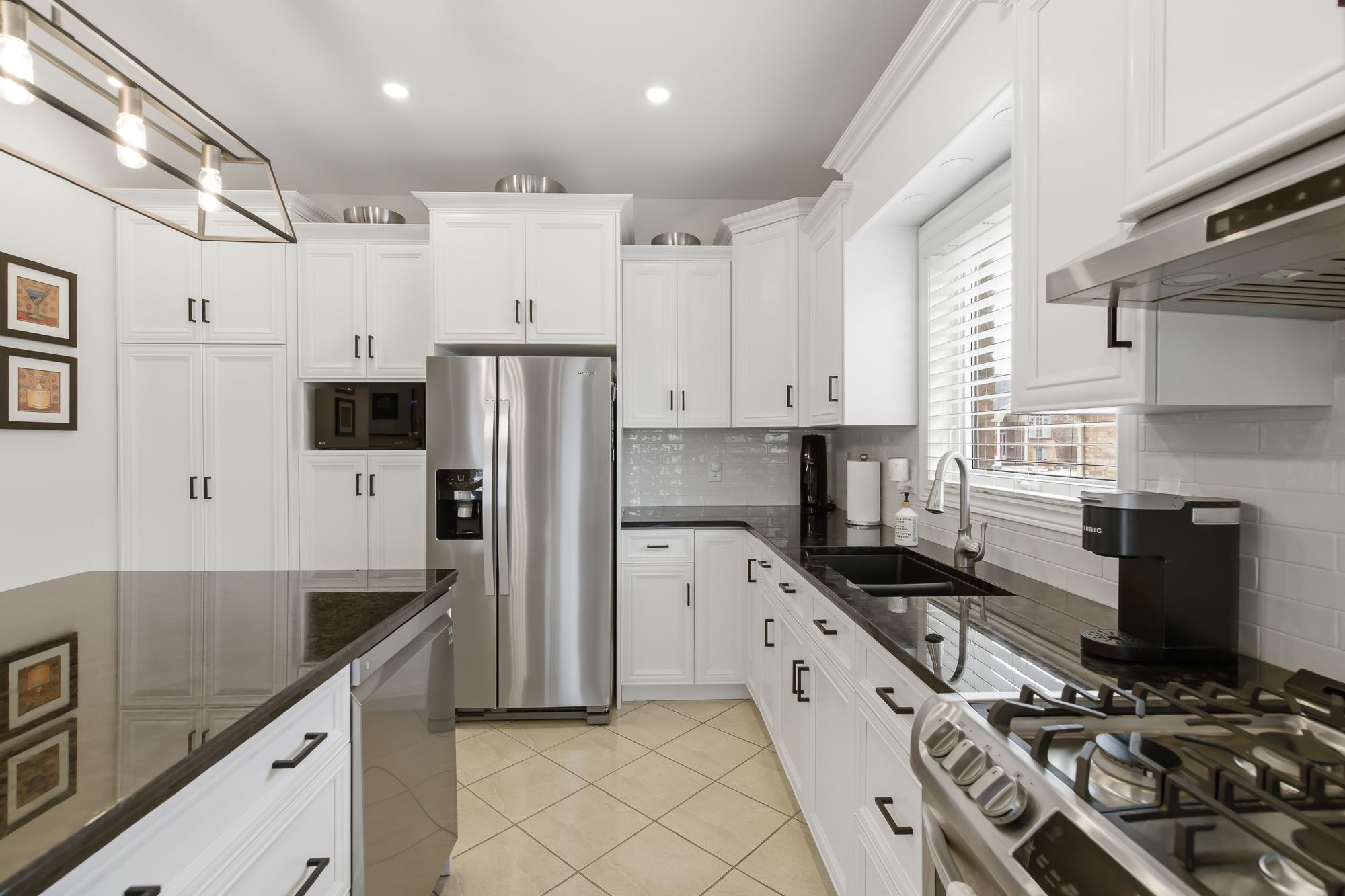 This exceptional 2024 square foot bungalow, custom built by local builder fernando homes in 2004, has been meticulously maintained and upgraded by the current owners since 2011. Pride of ownership exudes from the showpiece landscaping and throughout this 3 bedroom home with 9 foot ceilings throughout the main floor. The main floor living room is ideal for entertaining and quiet lounging by the gas fireplace. The well appointed island kitchen includes granite counters, tile backsplash, stainless steel appliances and a beverage counter with bar fridge. Stepping out from the dinette you'll find a covered porch with composite deck, conveniently located hot tub with chemical & equipment cabinet, gazebo with gas bbq centre and extensive landscaping crafted professionally managed with low maintenance in mind. The master bedroom enjoys a fully renovated 4 piece ensuite bathroom with large format tile, glass enclosed shower and a floating vanity with double sinks. The lower level includes a spacious open landing room, large recroom/home gym, 3 piece bath as well as a dedicated room with large windows for your future finishing needs. The large utility room provides ample storage space.