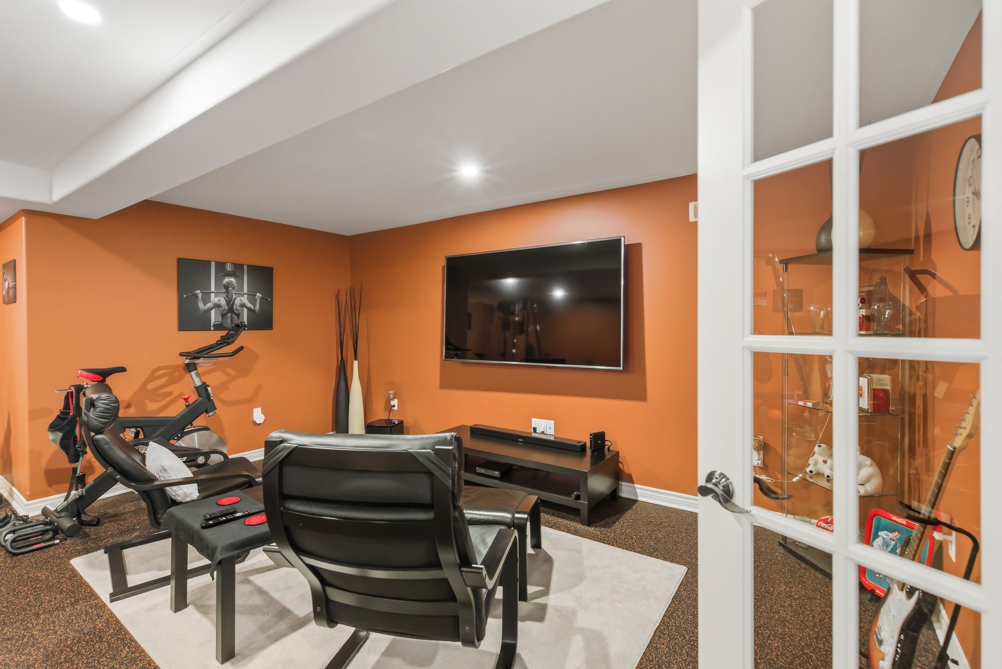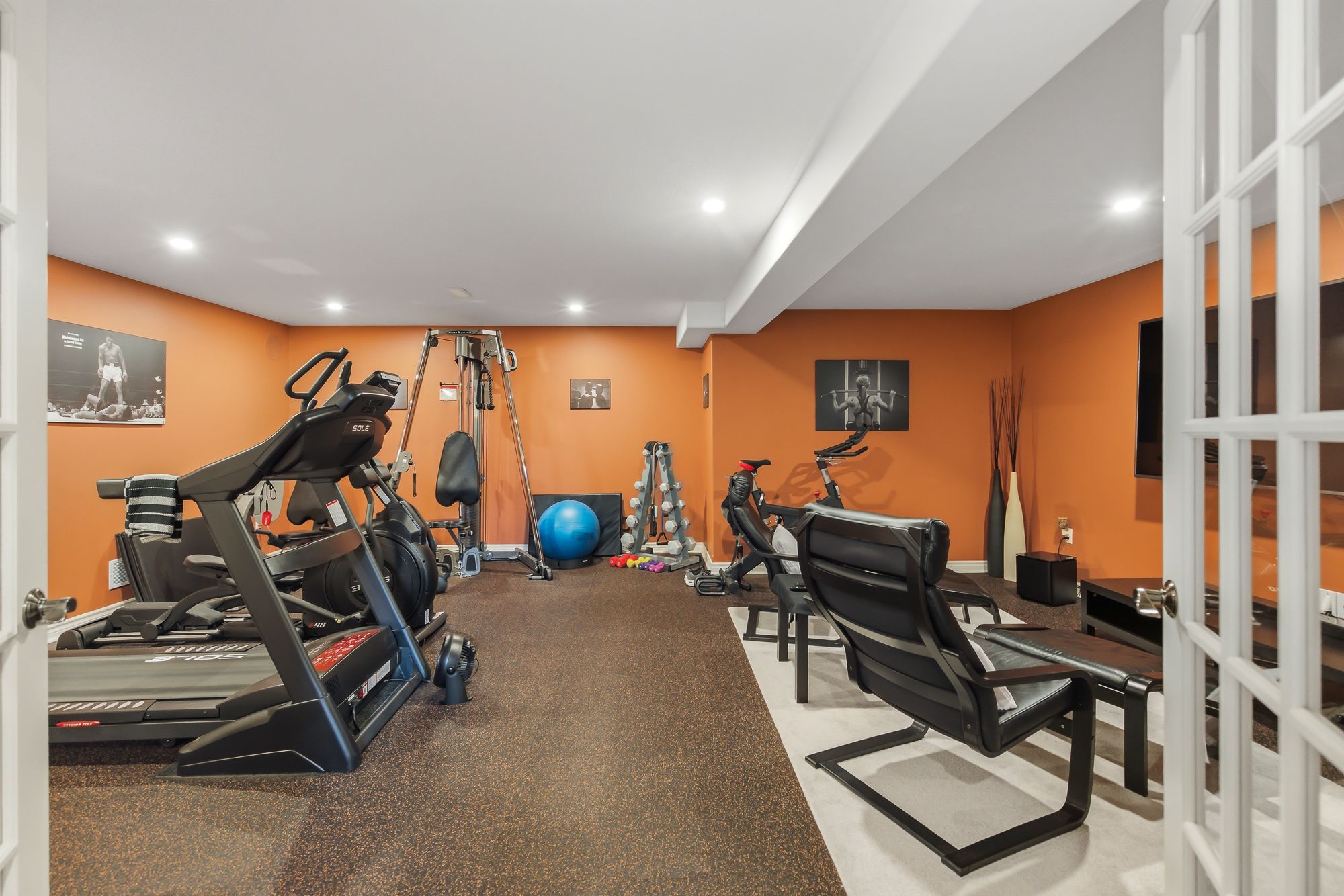 • Lower level offers a rec room, gym space, and room for future finishes.