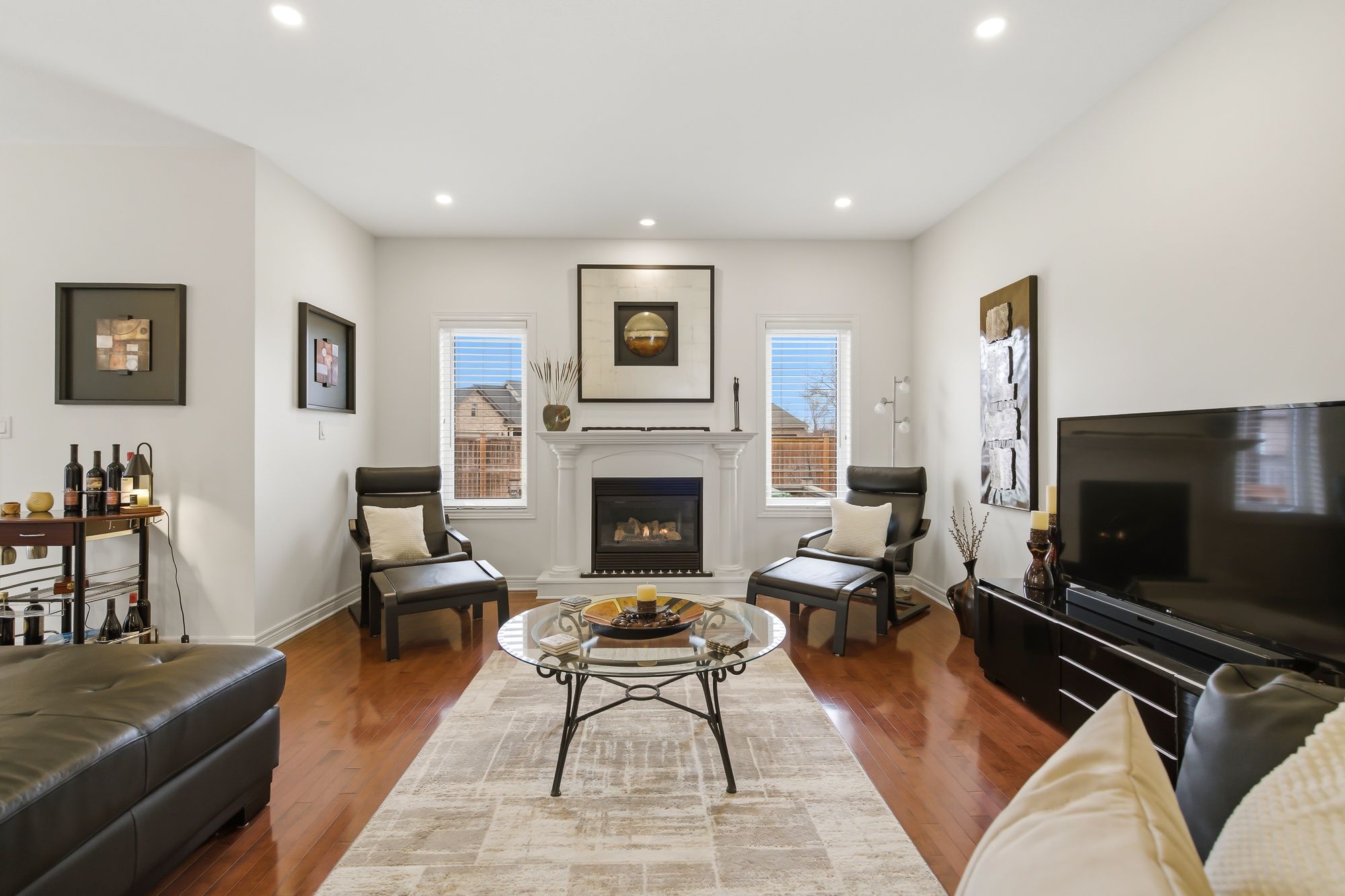 • Bright living room featuring a cozy gas fireplace, perfect for relaxation.