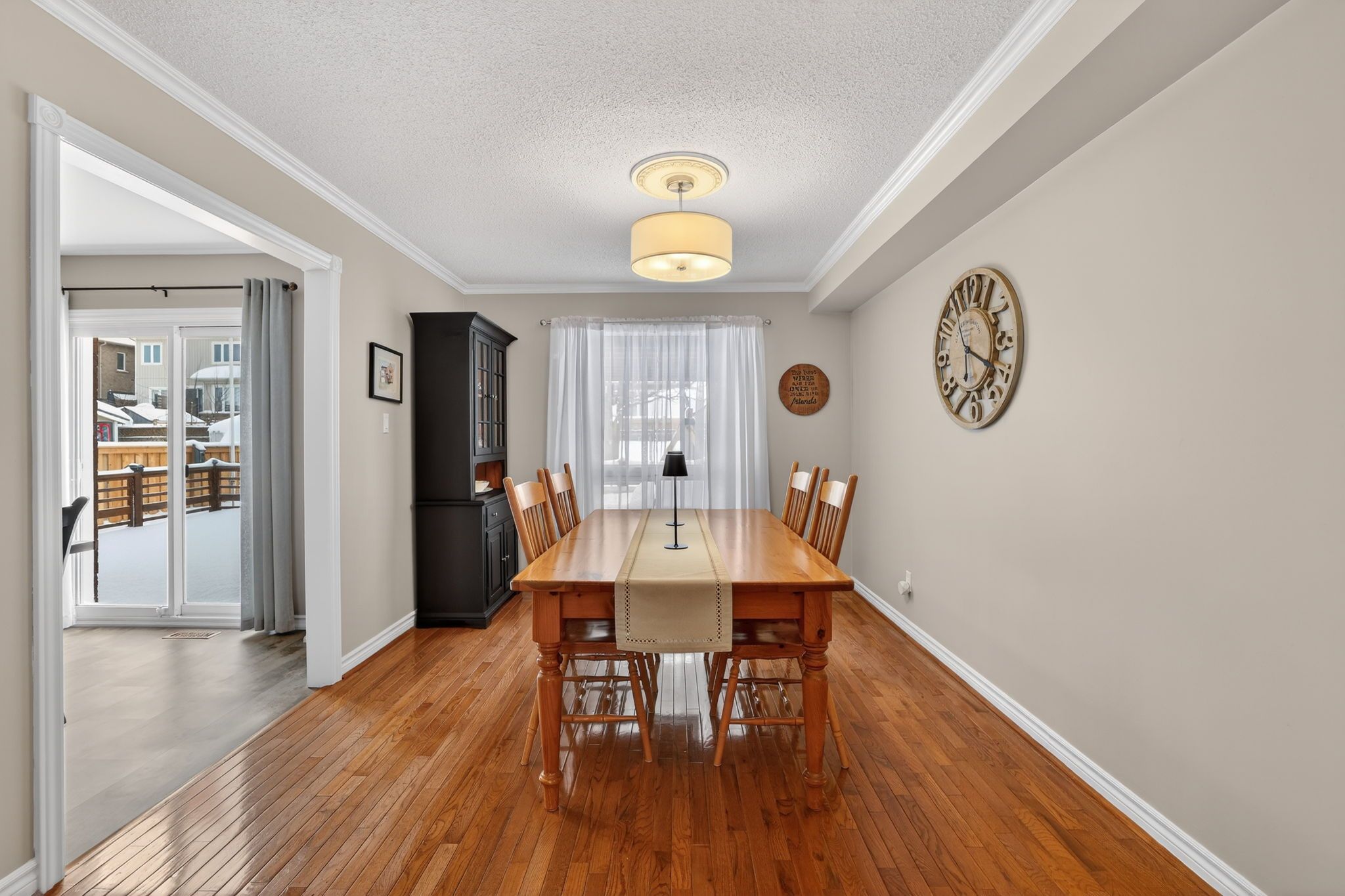 Welcome to 165 courtney crescent, a beautifully appointed detached residence nestled in one of orangeville's most sought after communities. Ideally located near fantastic schools, local trails, shopping, and numerous amenities, this home offers the perfect balance of comfort and convenience. Lovingly maintained by its original owners, the property reflects exceptional pride of ownership and showcases numerous quality updates throughout. The heart of the home is the recently renovated eat-in kitchen (2023), thoughtfully designed with quartz countertops, a stylish backsplash, stainless steel appliances, pot lighting, and a walkout to the backyard deck - ideal for both everyday living and entertaining. The adjoining living and dining rooms feature gleaming hardwood floors and elegant crown moulding, creating a warm and timeless atmosphere. A functional mudroom with direct garage access and a convenient two-piece powder room complete the main level. Upstairs, you'll find three generously sized bedrooms, providing comfortable accommodations for the whole family. The primary suite offering a walk-in closet and a private four-piece ensuite. The fully finished basement extends the living space and boasts a large recreation area with cozy broadloom and an open concept layout. It also has an additional fourth bedroom providing flexibility for guests, extended family, or a dedicated home office. Additional updates include a newer roof (2021) and garage door (2019), providing added peace of mind for years to come. Outdoors, the expansive backyard offers exceptional privacy and features a covered deck - perfect for hosting gatherings or enjoying quiet evenings with friends and family. This is a wonderful opportunity to own a truly move in ready home in a thriving neighbourhood. Schedule your private viewing today!