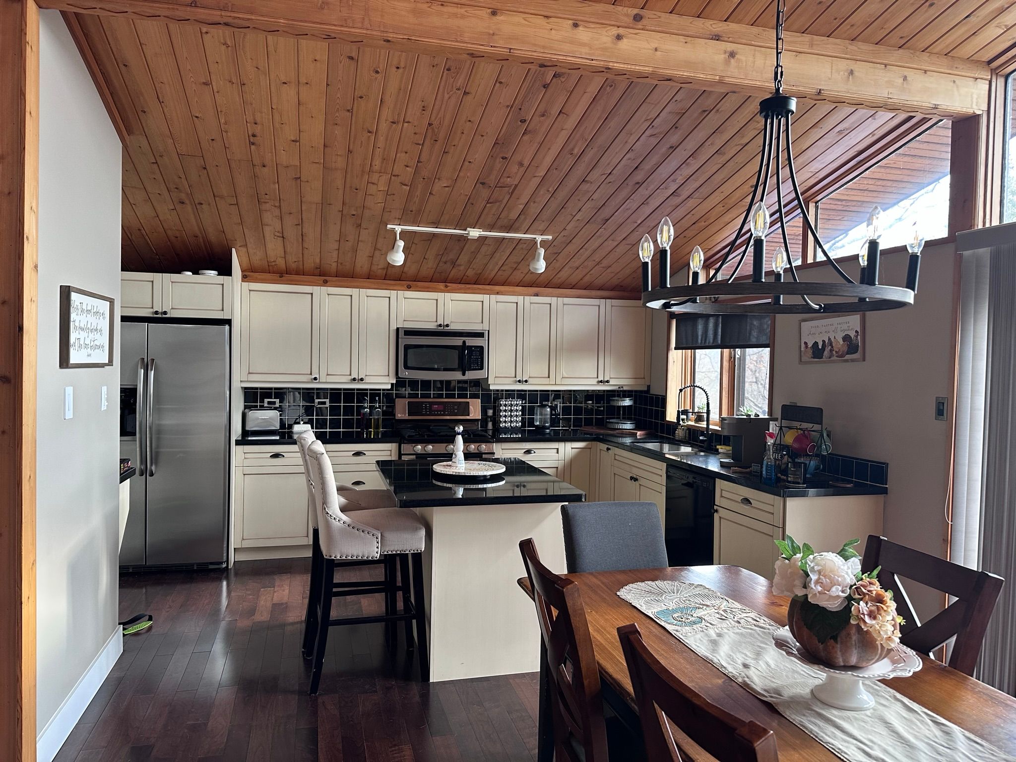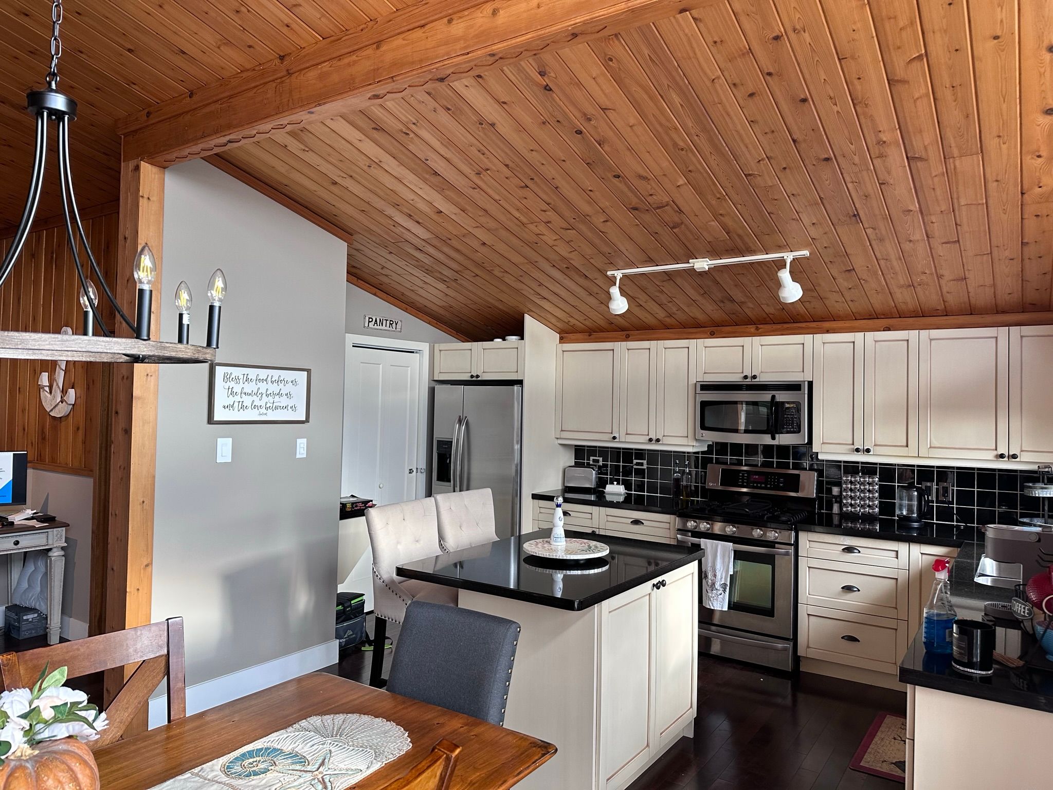 • Open concept design with vaulted ceilings makes the space feel airy.