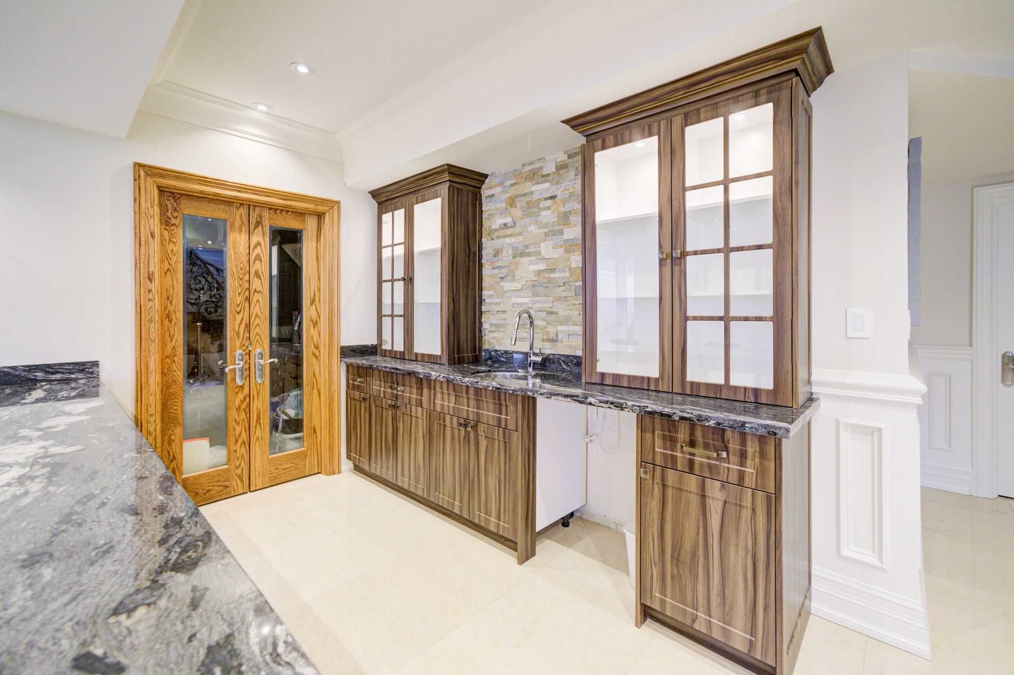 • Custom-built home with high ceilings and elegant hardwood and marble floors.