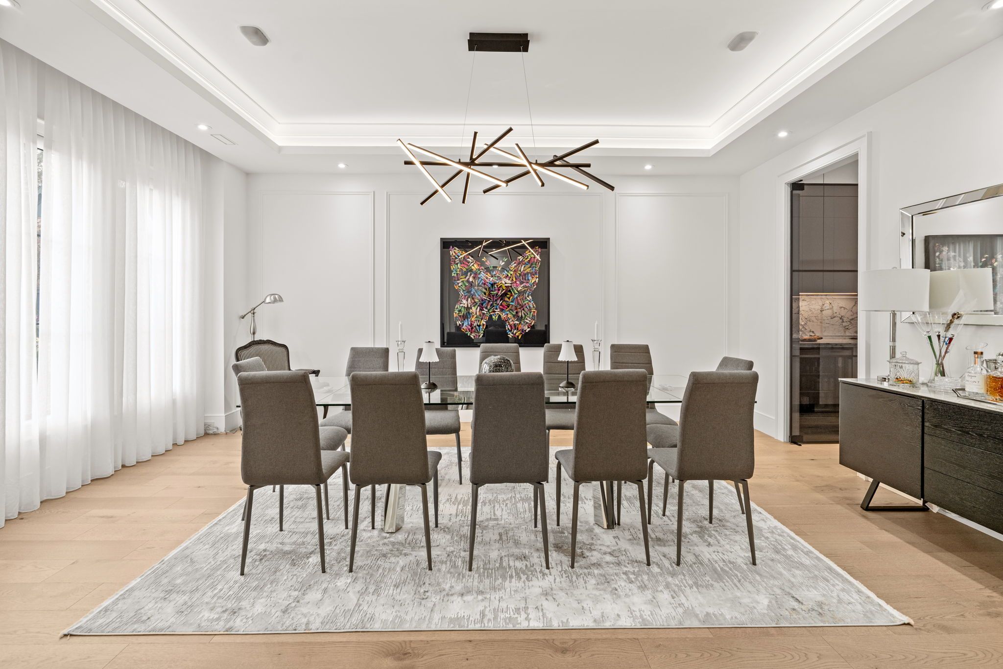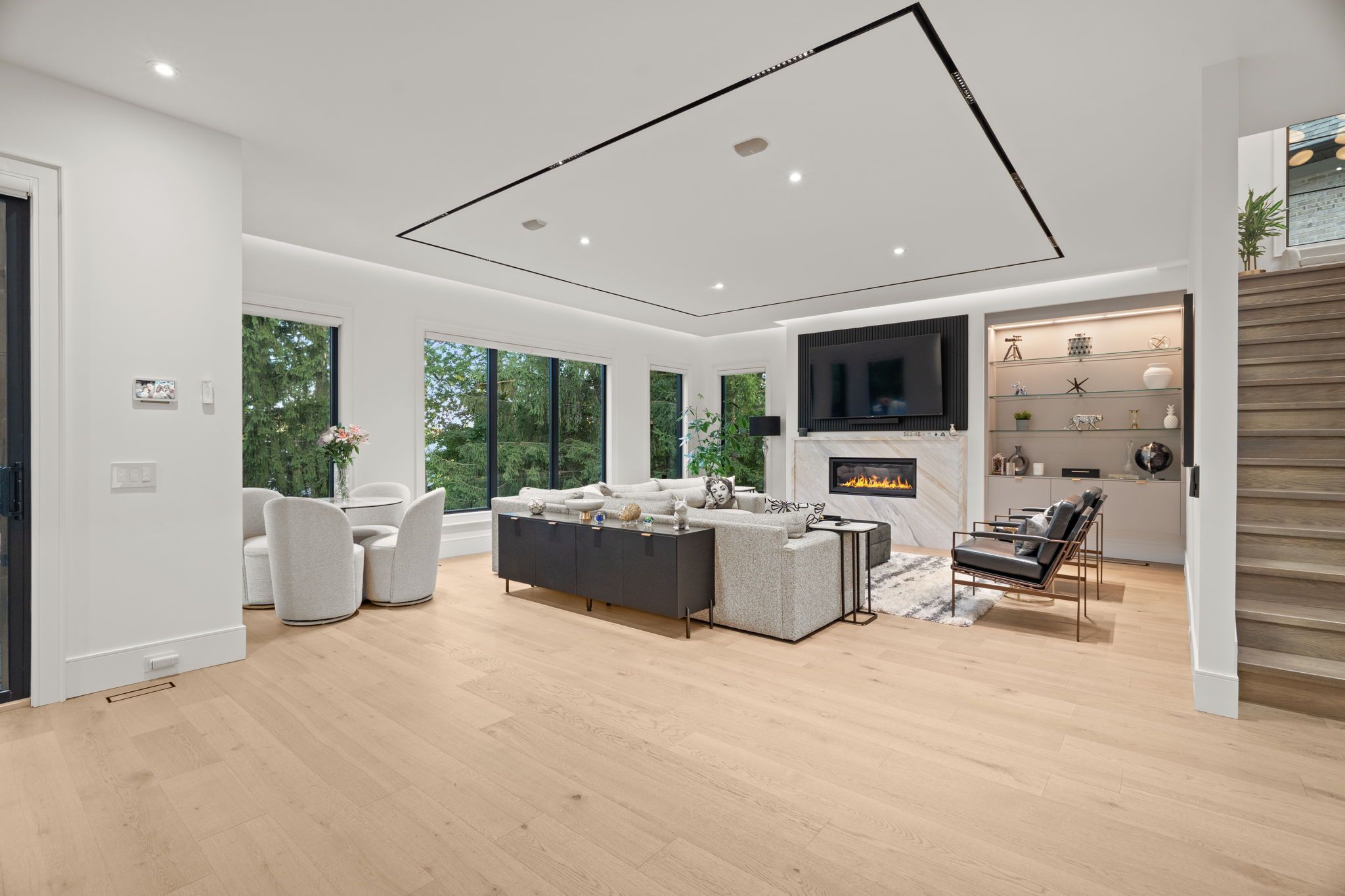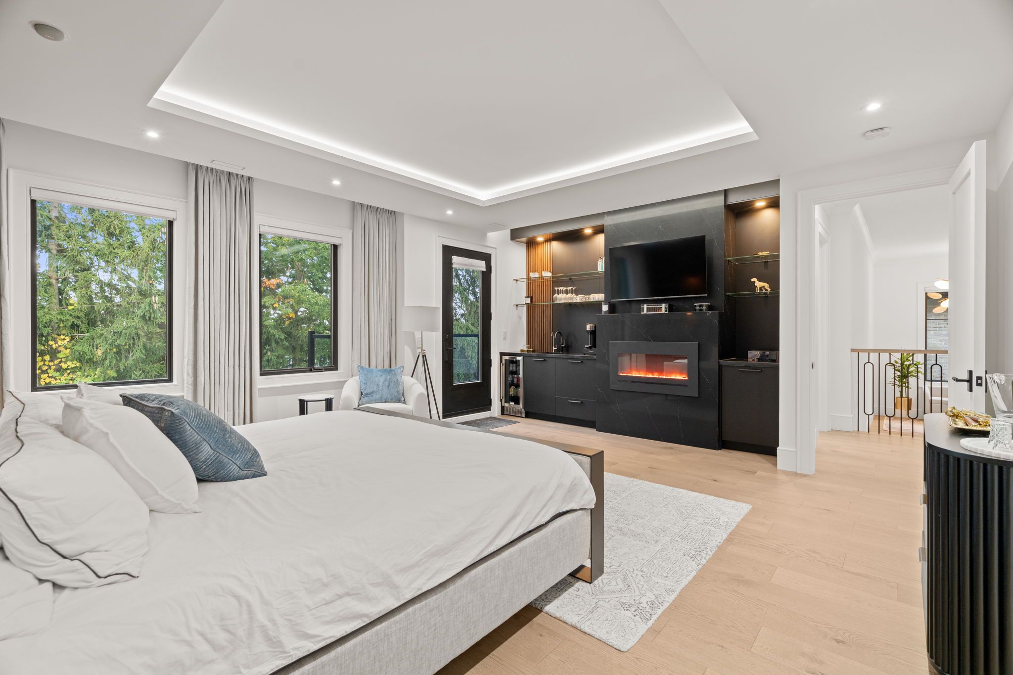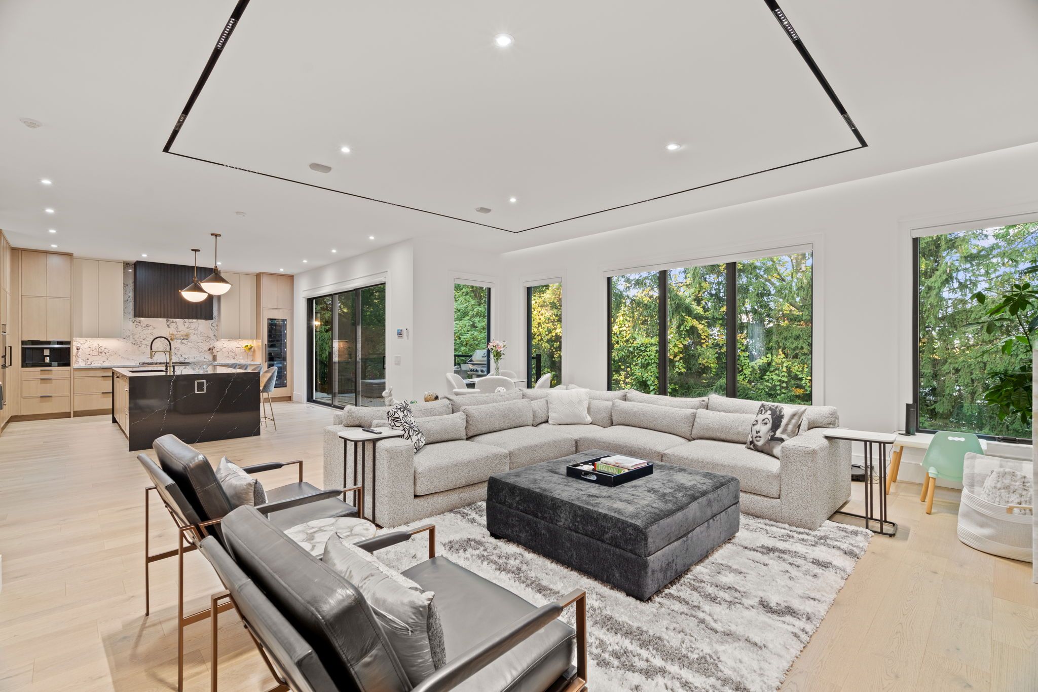 Newly built modern residence in the heart of south leaside offering nearly 6,500 sq. Ft. Of living space! Exceptional designer-curated finishes and smart home technology throughout. Designed for the modern family and built to impress, this magazine-worthy residence perfectly blends luxury, functionality, and versatility. Oversized principal rooms, two private home offices, and a full legal in-law suite with income potential make it ideal for multigenerational living or a flexible live-work lifestyle. Showcasing engineered white oak floors, soaring ceilings, and expansive windows with motorized blinds, every detail reflects thoughtful design and quality craftsmanship. The custom kitchen is a true centerpiece - featuring a panelled fridge, trash compactor, waterfall island with hidden storage, and full-height cabinetry - flowing seamlessly into the family room with a marble gas fireplace and walkout to the backyard. Step lighting, integrated speakers, and sleek modern finishes complete the main level's sophisticated aesthetic. Upstairs, four oversized bedrooms include a magazine-worthy primary suite with a slatted wood feature wall access to his & hers wics, cove-lit ceiling, fireplace in stone surround, fully equipped bar, walkout to a private balcony (hot tub-ready), and a spa-inspired ensuite with steam shower, freestanding tub, heated floors, and double vanities. Secondary bedrooms are equally impressive, and a dedicated laundry room with dual washer/dryers enhances everyday ease. Upstairs office may be converted to a 5th bedroom. The lower level extends the living experience with a gym, sauna, recreation lounge, and wet bar equipped with a dishwasher and bar fridge - plus a soundproofed legal in-law suite with its own entrance, kitchen, 3-piece bath & laundry. Located in the coveted bessborough/rolph school district, this home delivers a rare combination of sophistication, and future income potential in one of toronto's most sought-after neighbourhoods.