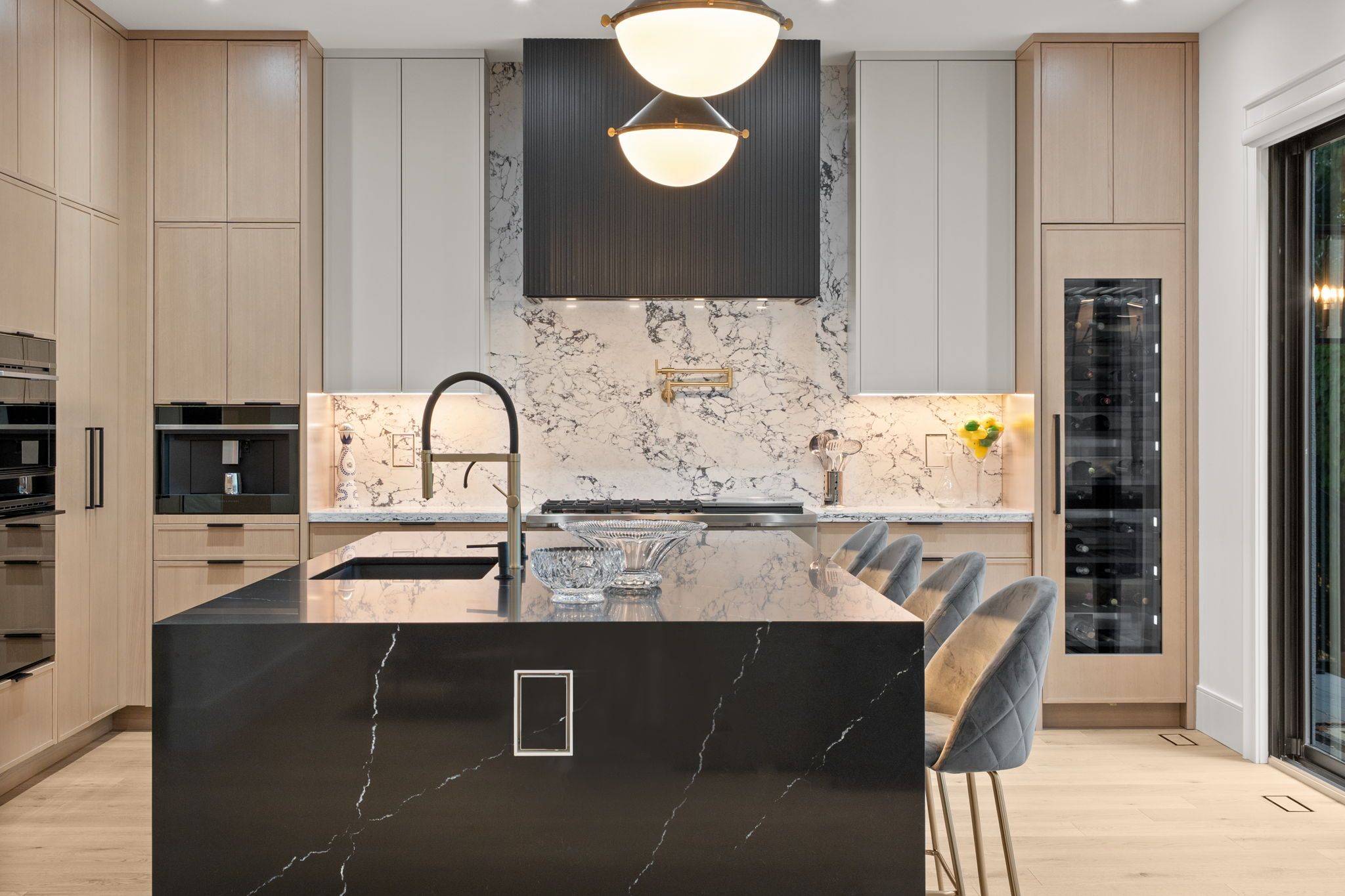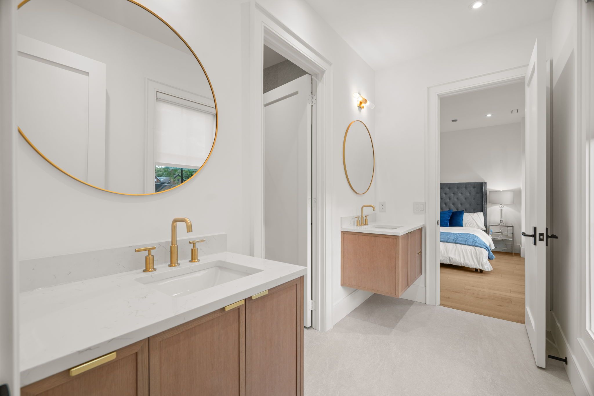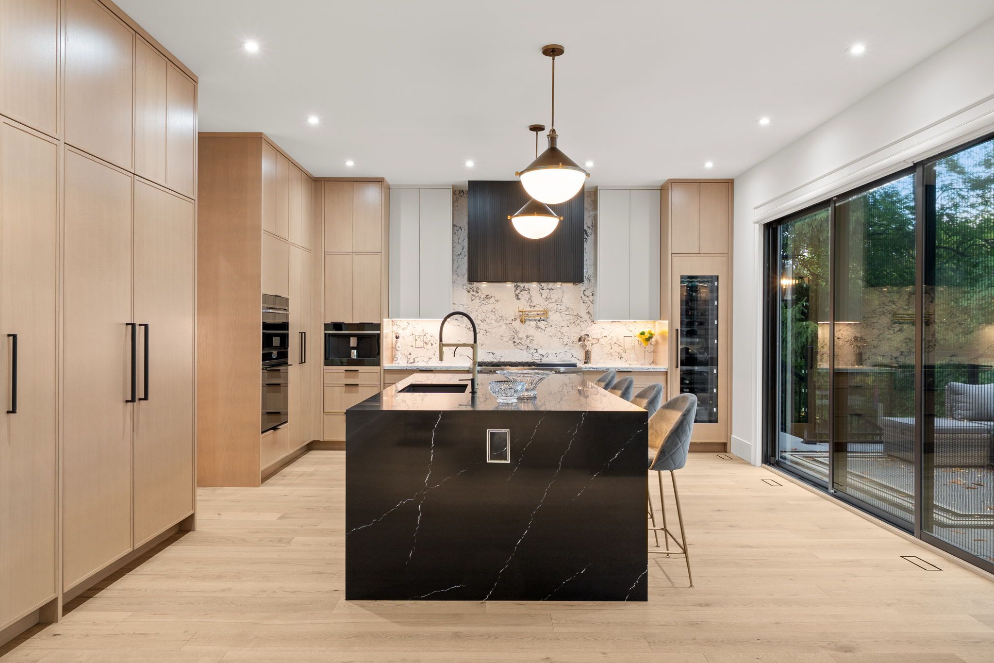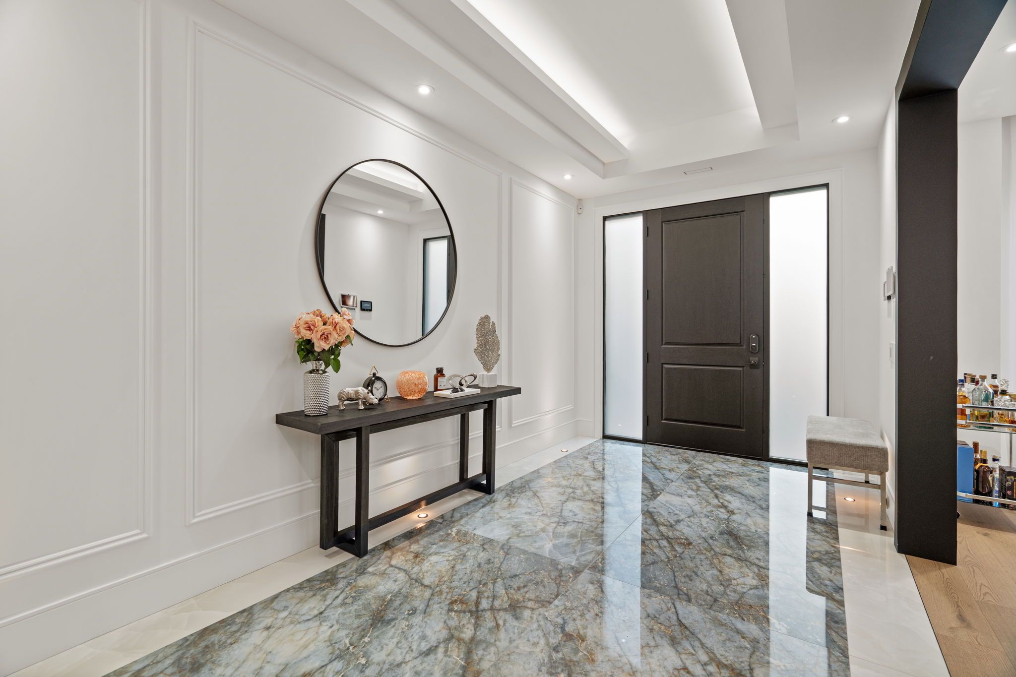 Newly built modern residence in the heart of south leaside offering nearly 6,500 sq. Ft. Of living space! Exceptional designer-curated finishes and smart home technology throughout. Designed for the modern family and built to impress, this magazine-worthy residence perfectly blends luxury, functionality, and versatility. Oversized principal rooms, two private home offices, and a full legal in-law suite with income potential make it ideal for multigenerational living or a flexible live-work lifestyle. Showcasing engineered white oak floors, soaring ceilings, and expansive windows with motorized blinds, every detail reflects thoughtful design and quality craftsmanship. The custom kitchen is a true centerpiece - featuring a panelled fridge, trash compactor, waterfall island with hidden storage, and full-height cabinetry - flowing seamlessly into the family room with a marble gas fireplace and walkout to the backyard. Step lighting, integrated speakers, and sleek modern finishes complete the main level's sophisticated aesthetic. Upstairs, four oversized bedrooms include a magazine-worthy primary suite with a slatted wood feature wall access to his & hers wics, cove-lit ceiling, fireplace in stone surround, fully equipped bar, walkout to a private balcony (hot tub-ready), and a spa-inspired ensuite with steam shower, freestanding tub, heated floors, and double vanities. Secondary bedrooms are equally impressive, and a dedicated laundry room with dual washer/dryers enhances everyday ease. Upstairs office may be converted to a 5th bedroom. The lower level extends the living experience with a gym, sauna, recreation lounge, and wet bar equipped with a dishwasher and bar fridge - plus a soundproofed legal in-law suite with its own entrance, kitchen, 3-piece bath & laundry. Located in the coveted bessborough/rolph school district, this home delivers a rare combination of sophistication, and future income potential in one of toronto's most sought-after neighbourhoods.