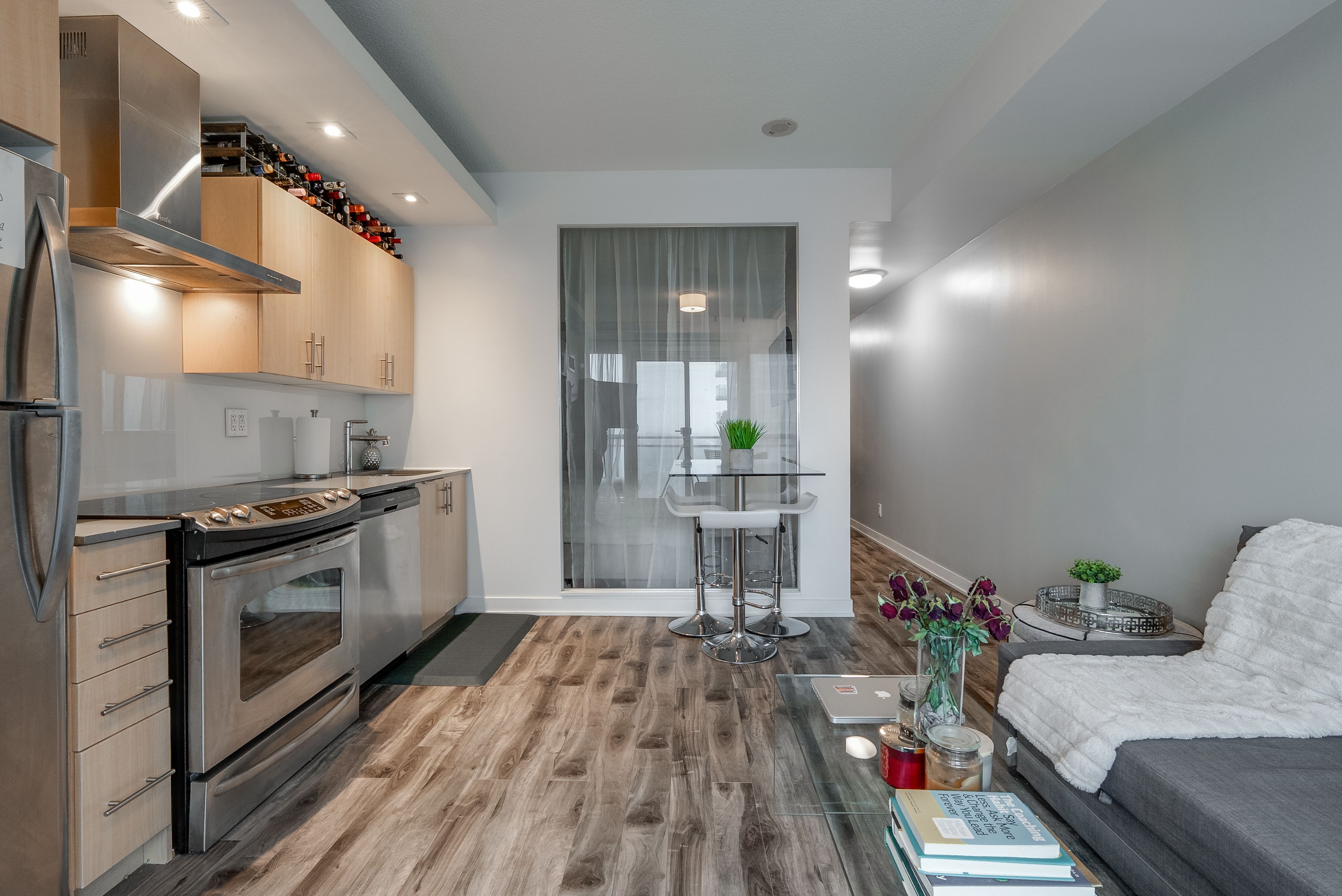 Welcome to the beautiful california condos, a highly sought-after residence in an unbeatable location at lakeshore & park lawn. This full-size 1-bedroom, 1-bathroom suite offers modern comfort paired with resort-style luxury living. Step inside to find soaring high ceilings, a bright and functional layout, and a spacious bedroom featuring a large closet. The sleek kitchen is designed to impress with granite countertops and ample cabinetry, perfect for cooking and entertaining. The open-concept living space provides a comfortable setting to relax or host guests. Enjoy exclusive access to the building's renowned sky club amenities, including: indoor & outdoor swimming pools, hot tub & sauna, two fully equipped gyms, squash & volleyball courts, private theatre room, games room, party room, stunning rooftop patios with breathtaking views, experience true luxury living with 24-hour concierge service and security for your peace of mind. Unmatched convenience: located just minutes from mimico go station, with easy access to the gardiner expressway, qew, and hwy 427. Everything you need is at your doorstep - parks, waterfront trails, shopping, dining, and transit. This is your opportunity to live in one of the area's most in-demand condo communities. Unit can be leased with or without furnishings.