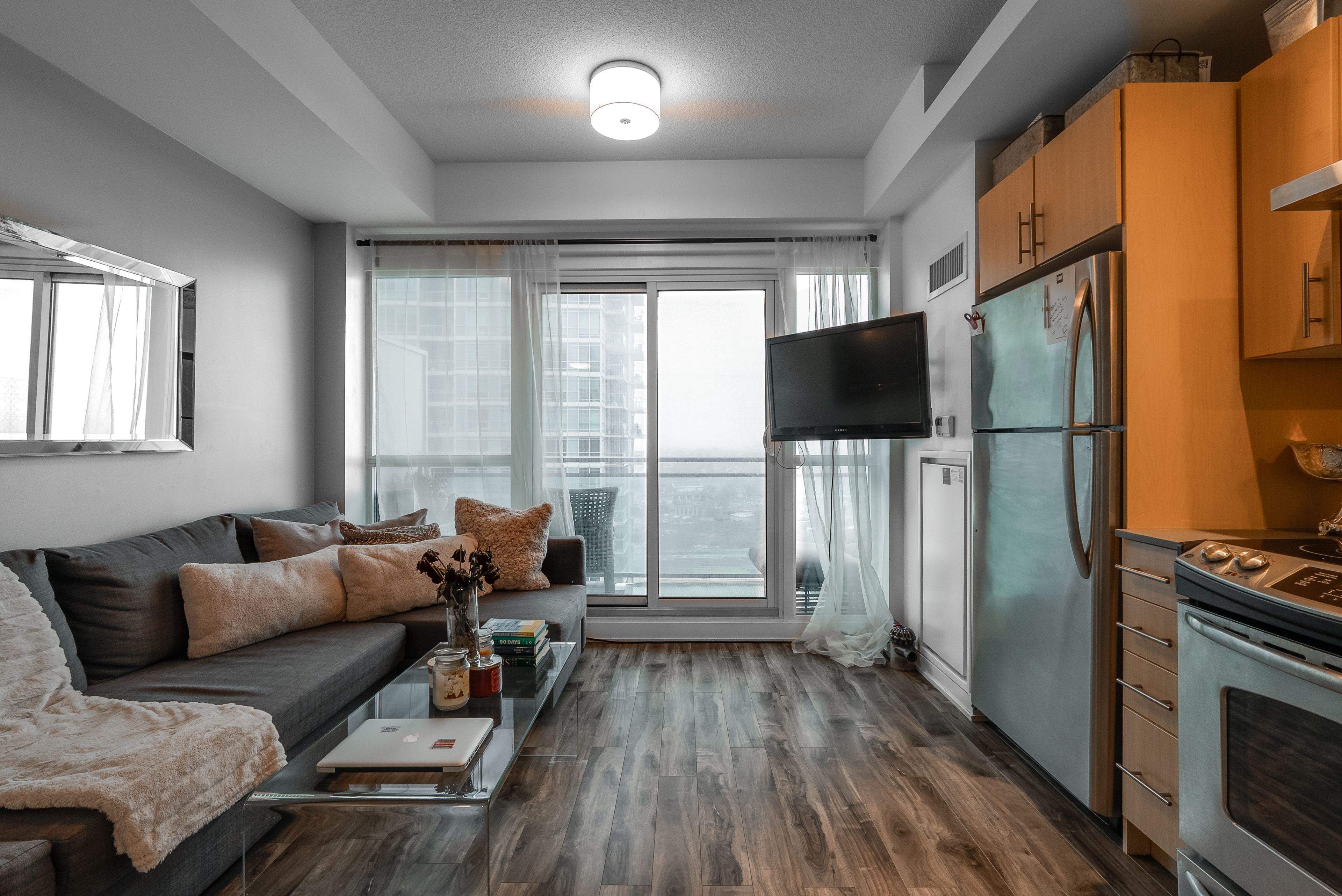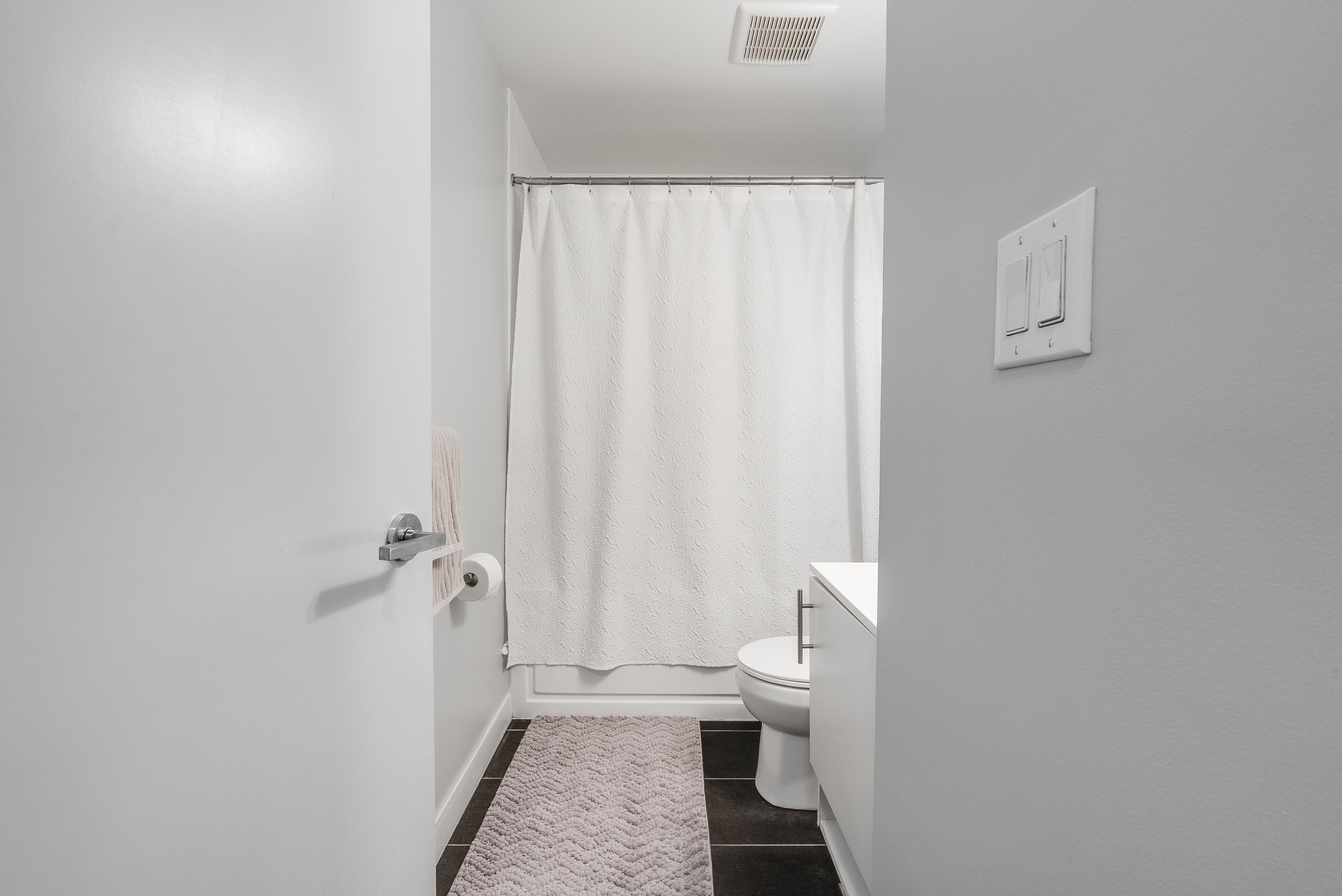 • Modern 1-bedroom suite with high ceilings and functional layout.