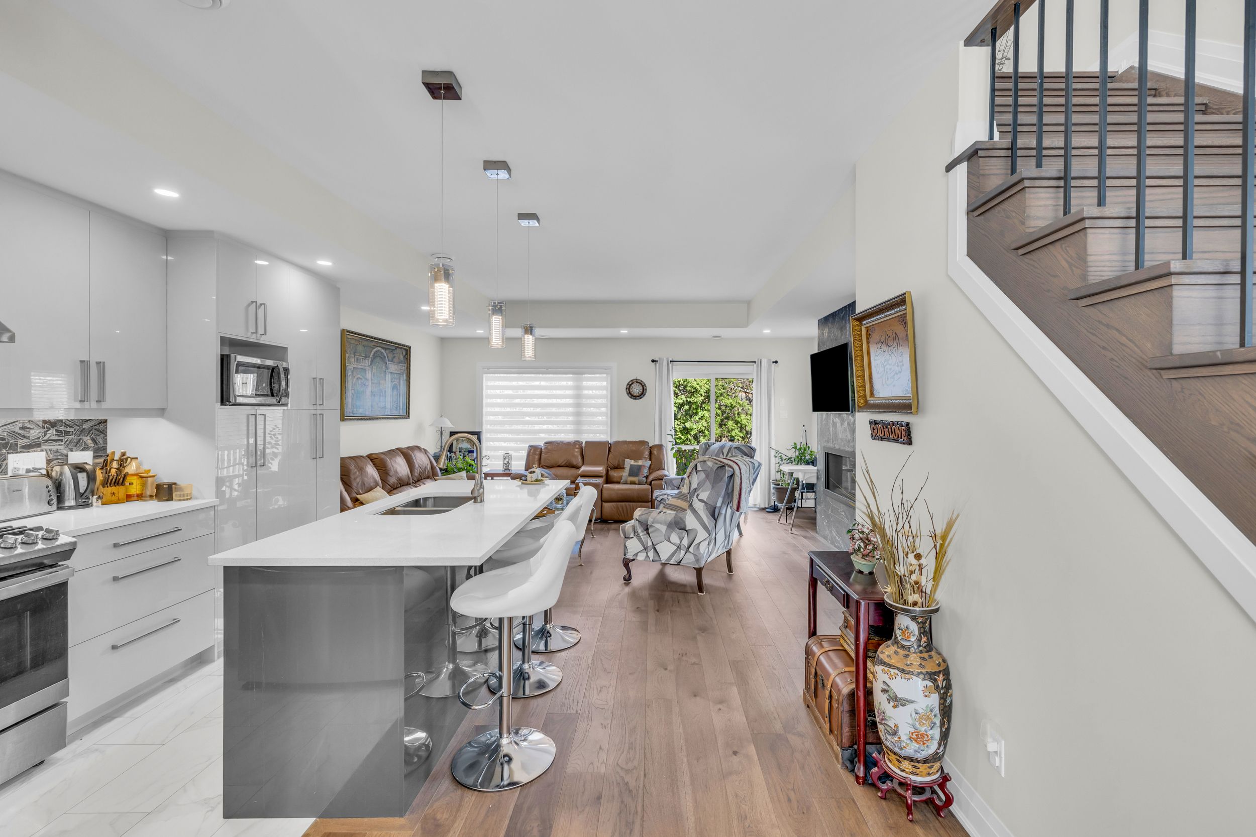 Don't miss this rare opportunity! This stunning freehold semi-detached home, built in 2022, is ideally situated in one of ottawa's most desirable central locations just steps from beechwood avenue and minutes from downtown, the university of ottawa, and the byward market. Designed for modern living, this custom home features an open-concept layout with engineered hardwood floors and soaring 9-foot ceilings on both the main and lower levels. Step into a striking foyer with porcelain flooring and a convenient 3 piece bathroom room. Enjoy a stunning formal dining room with a huge window. The gourmet kitchen is a true showstopper, boasting sleek white cabinetry, a quartz island with breakfast bar, granite backsplash, stainless steel appliances, and an open view to the inviting living room with a fireplace and full-height granite surround. Upstairs, a beautiful hardwood staircase with elegant spindles leads to three spacious bedrooms, including a luxurious primary suite with a walk-in closet and spa-like ensuite bathroom. The fully finished basement offers radiant heated floors, a full bathroom, and direct access from the garage ideal as additional living space or a potential in-law suite. Outside, the professionally landscaped yard features low-maintenance interlock stone and river rock, enhancing both curb appeal and functionality. Enjoy easy access to the rideau river, richelieu park, ottawa's extensive bike path network, the ncc river house, rockcliffe lookout, and the pond a city-maintained swimming lake. Close to public transit, top-rated schools, hospitals, shopping, and more. With interest rates continuing to decline, now is the perfect time to buy before prices rise. This home offers the ultimate blend of urban lifestyle, income potential, and unbeatable location. The area of the main and second floors is more than 1,500 sq. Ft., with an additional 300+ sq. Ft. In the finished basement, totaling over 1,800 sq. Ft. Of living space.